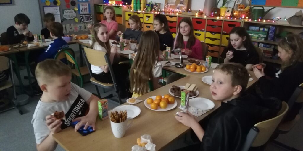Wieczór wróżb dopełniły tańce i słodki poczęstunek.