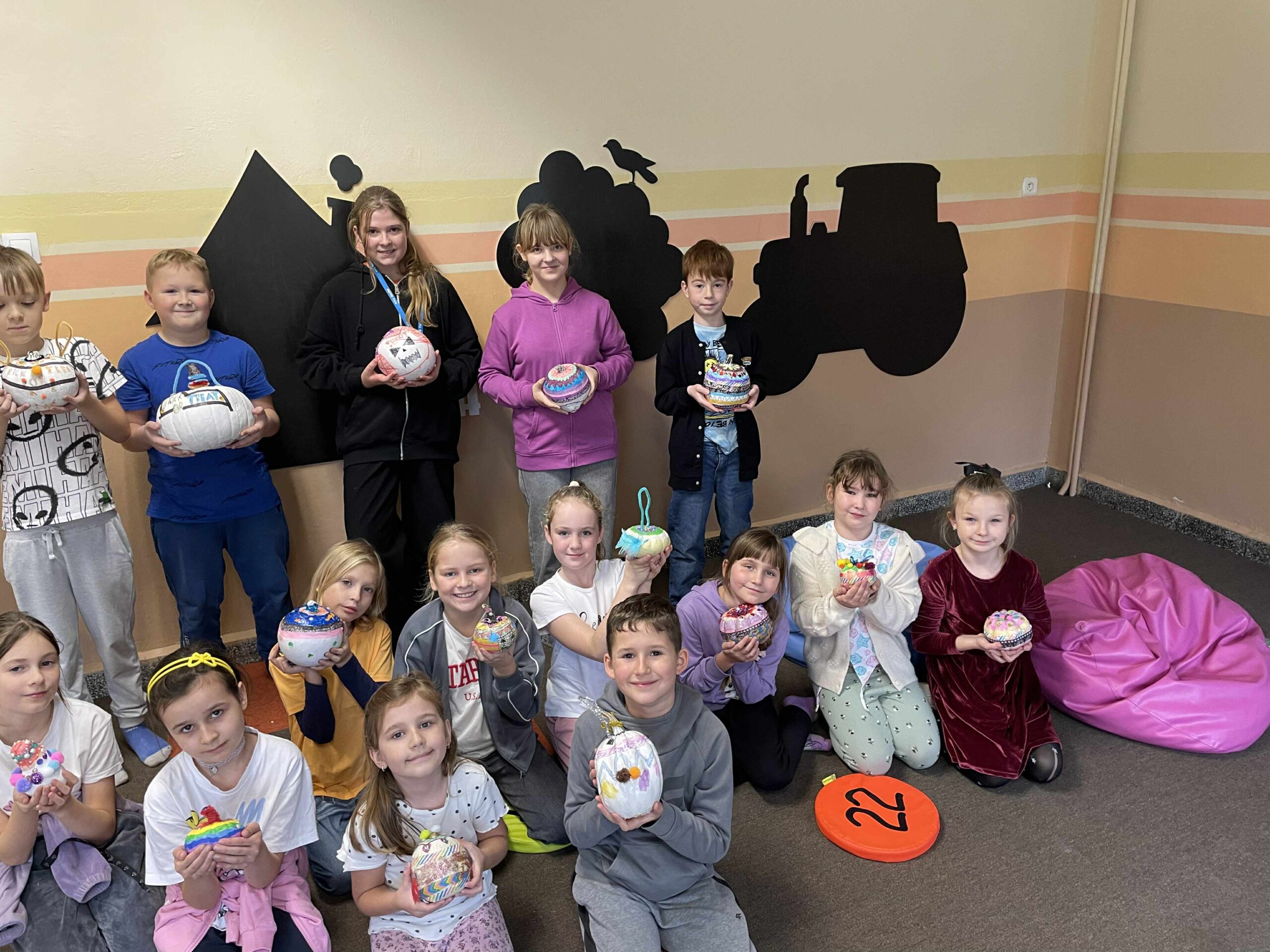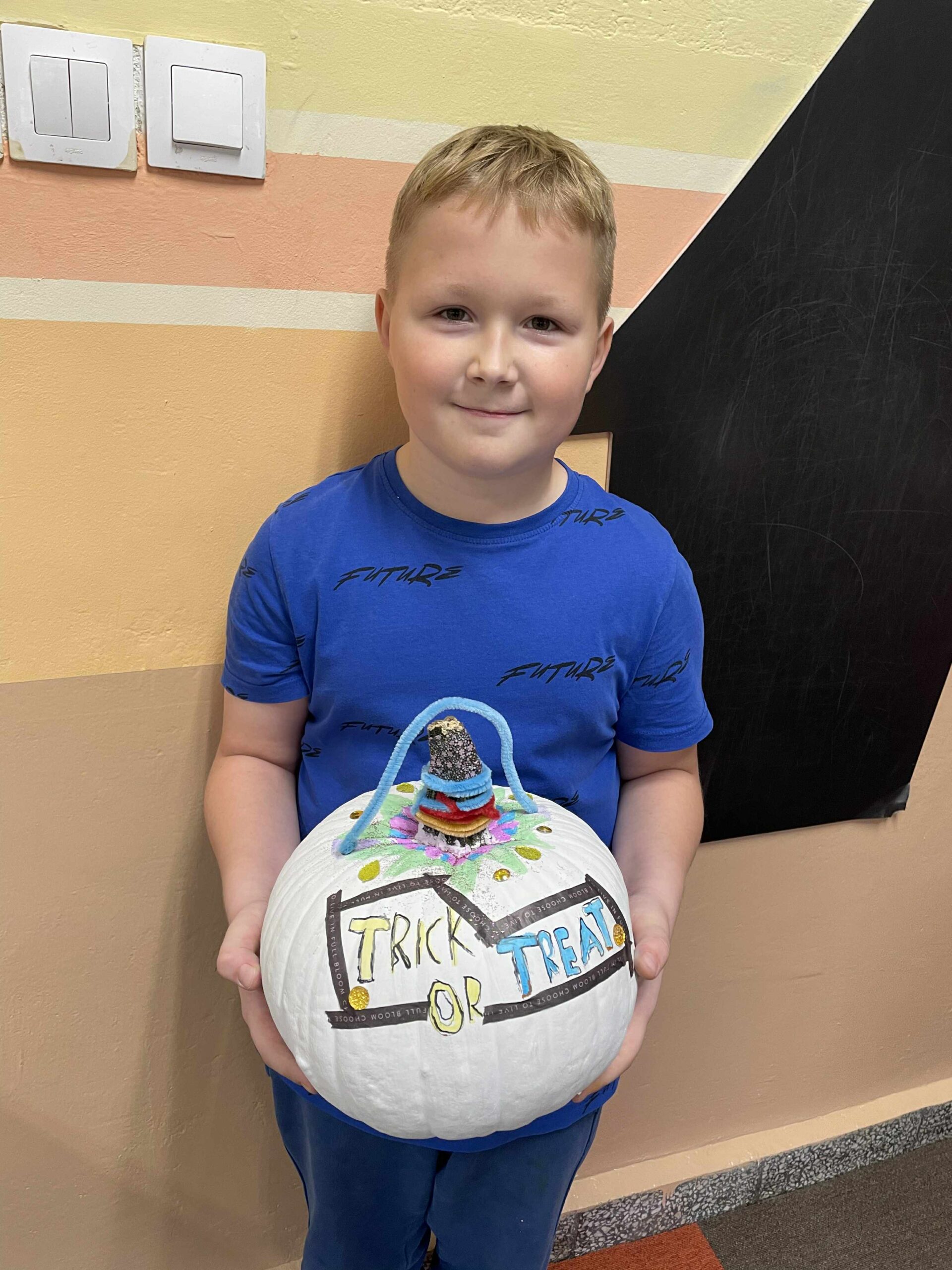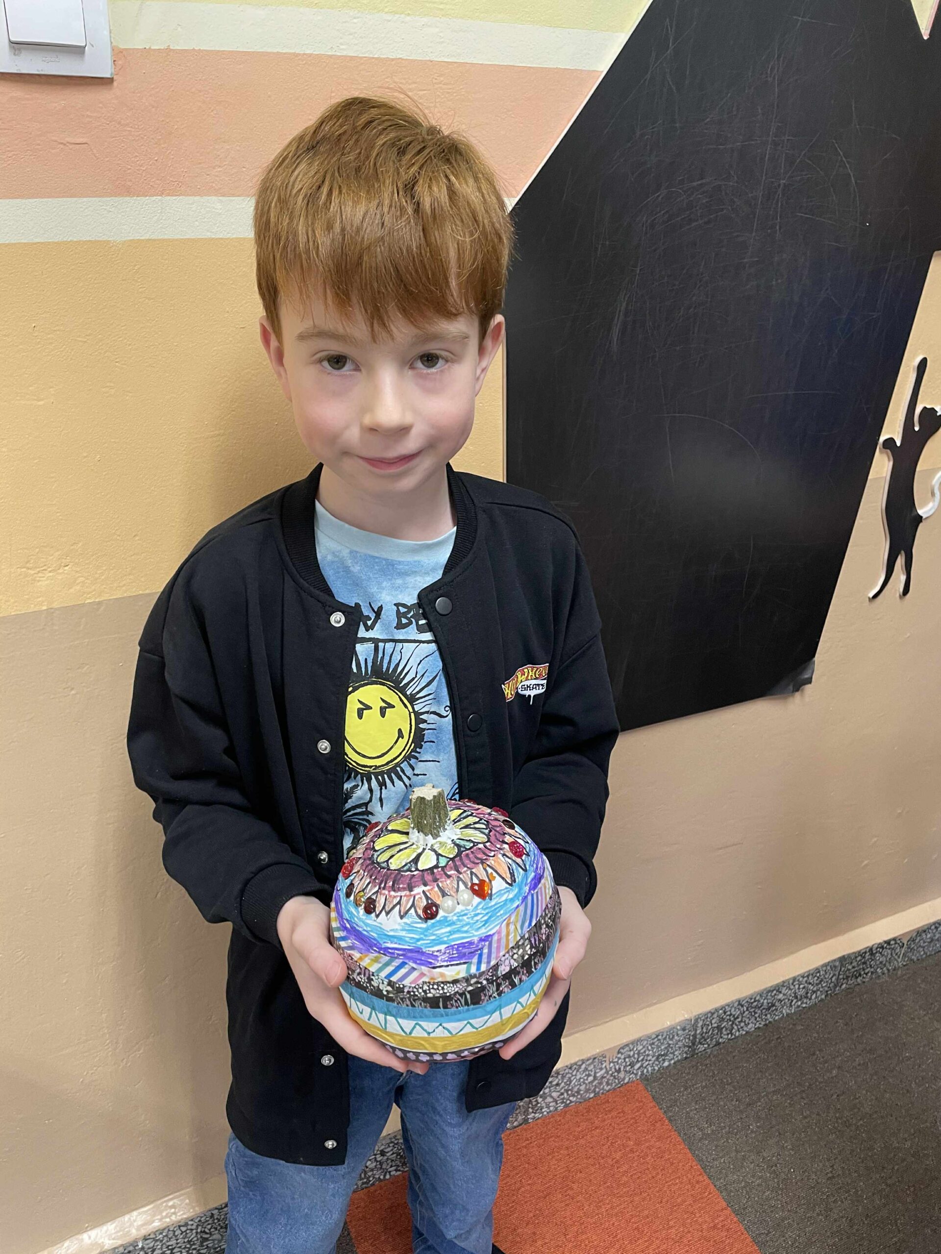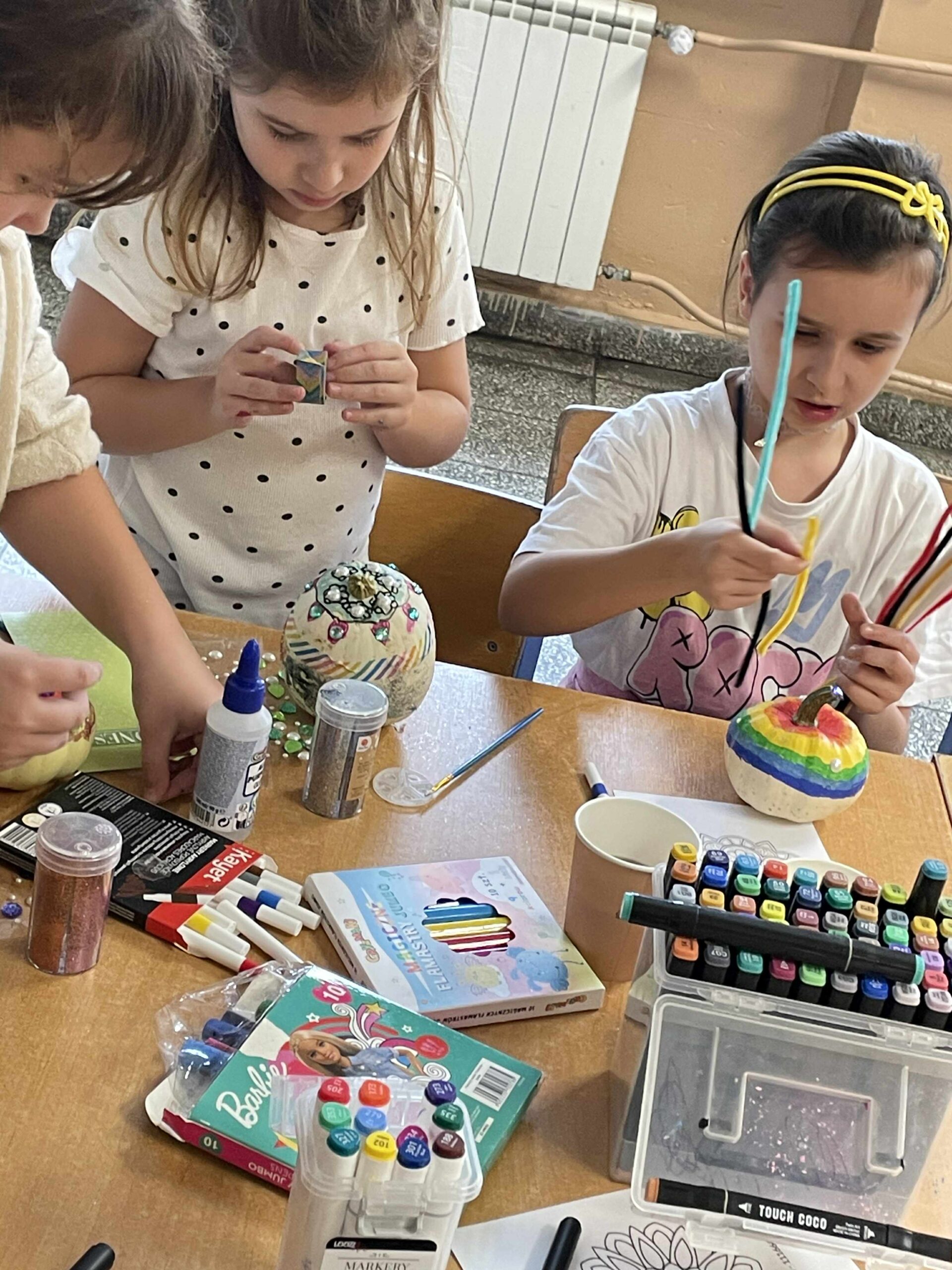Podczas zajęć uczniowie ozdabiali białe dynie kolorowymi mandalami, skupiając się na kształtach, barwach i własnych emocjach. W tle towarzyszyła im spokojna, relaksacyjna muzyka, a w przerwach mogli rozgrzać się aromatyczną herbatą malinową.