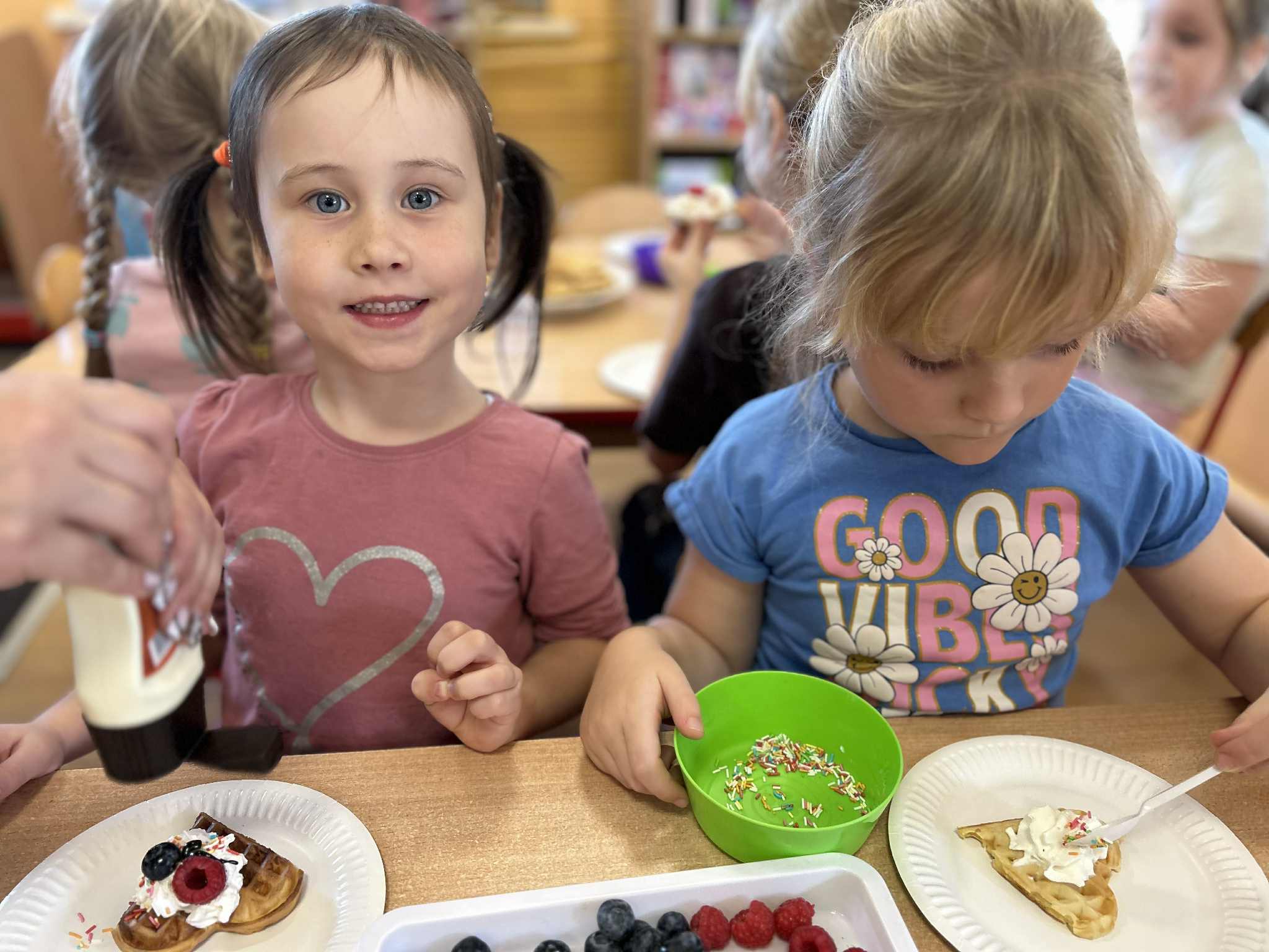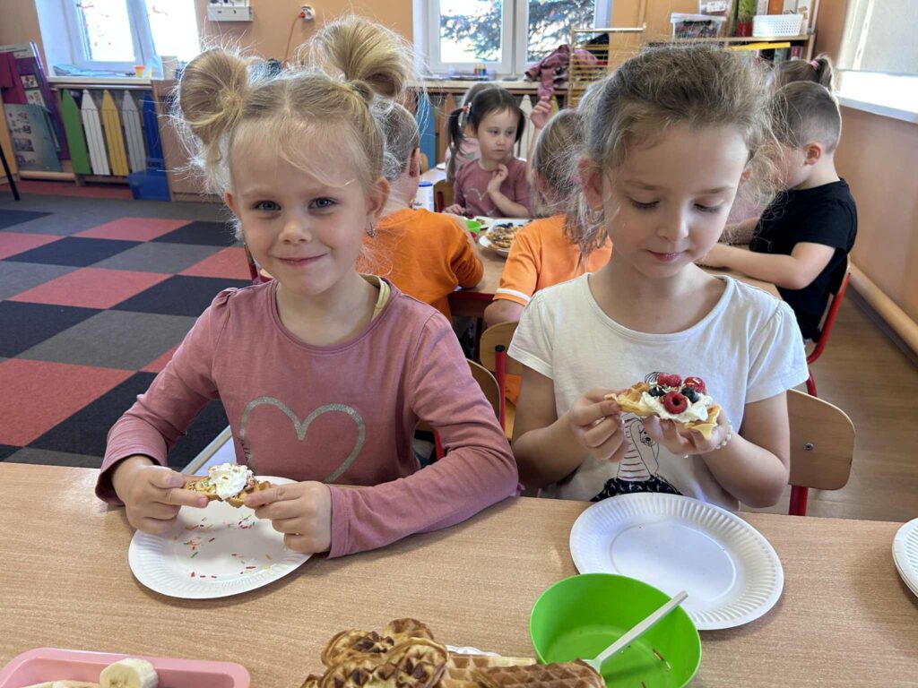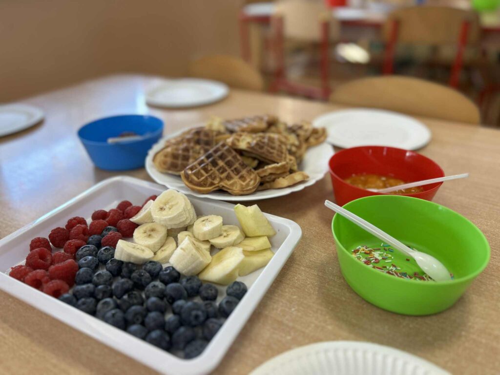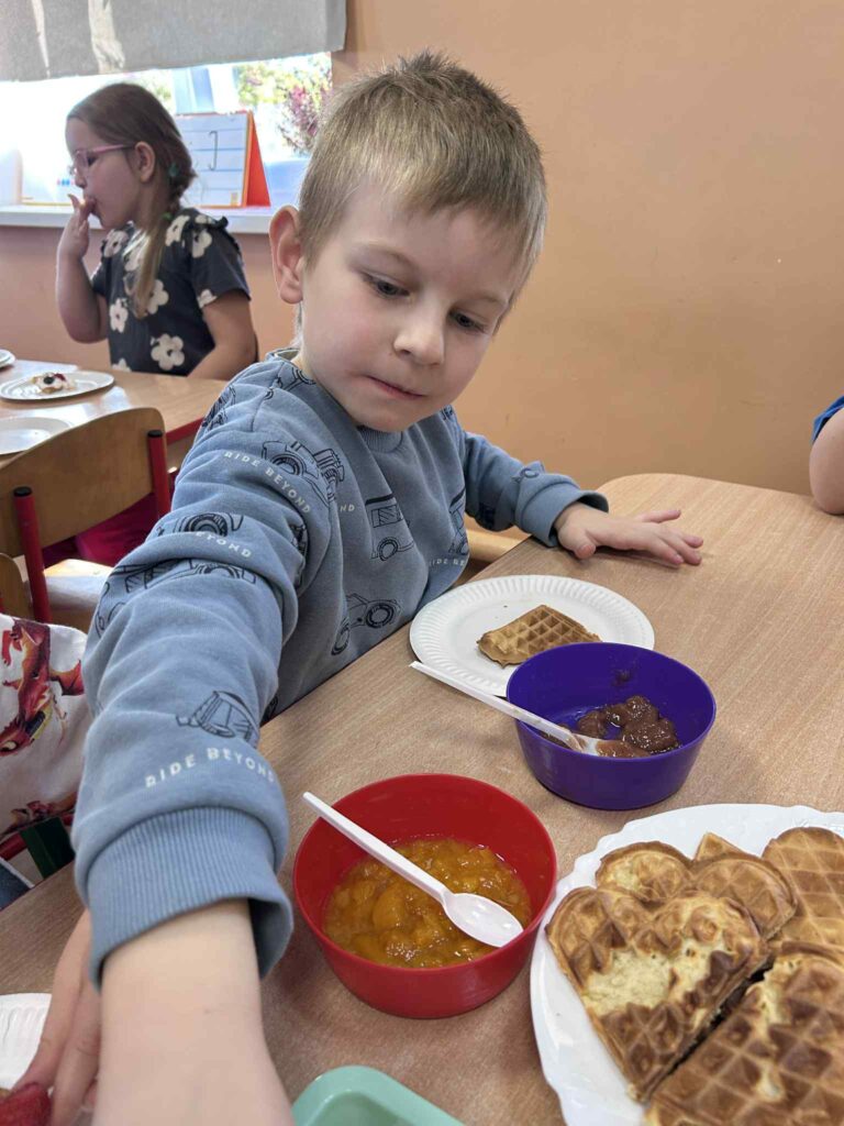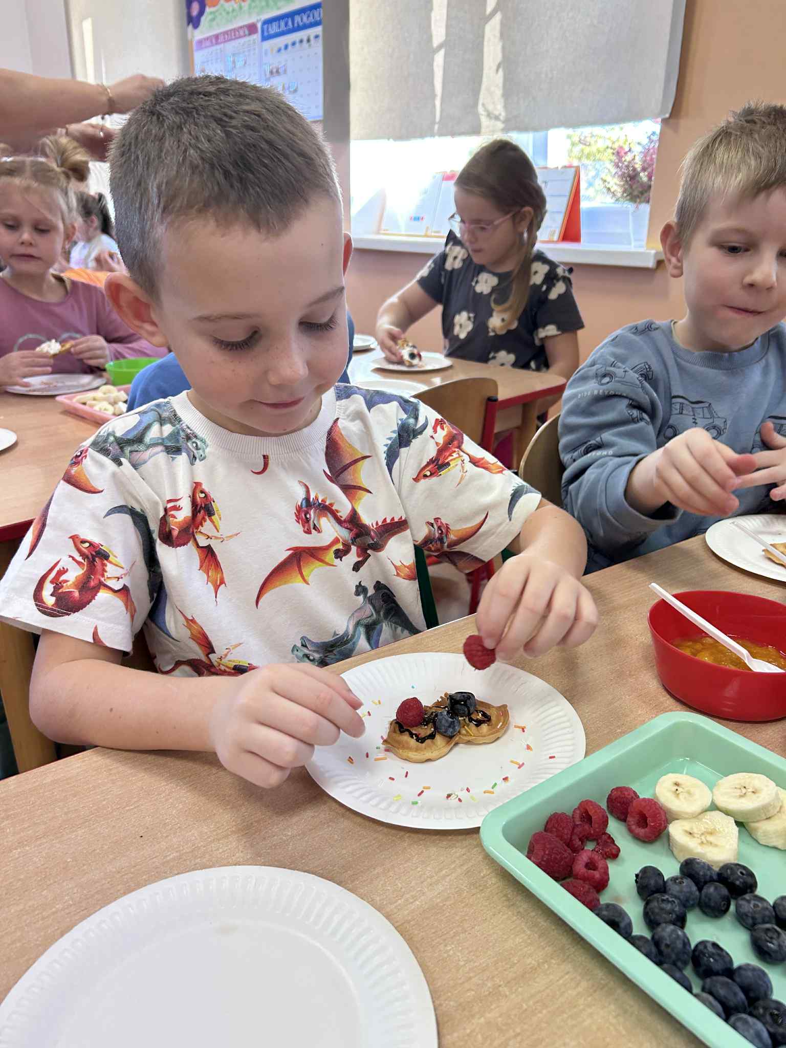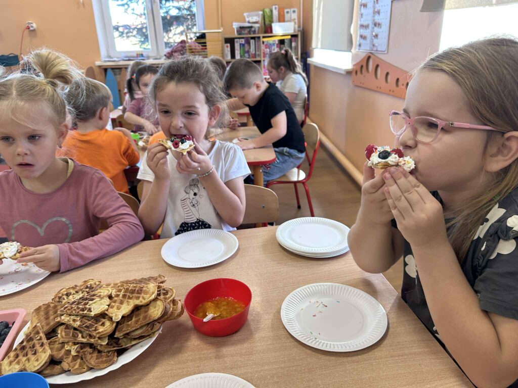 Nie zabrakło owoców, bitej śmietany i kolorowych dodatków. Dzieci mogły samodzielnie zdecydować, jak ozdobią swojego gofra – dzięki temu każdy był wyjątkowy i smakował doskonale!