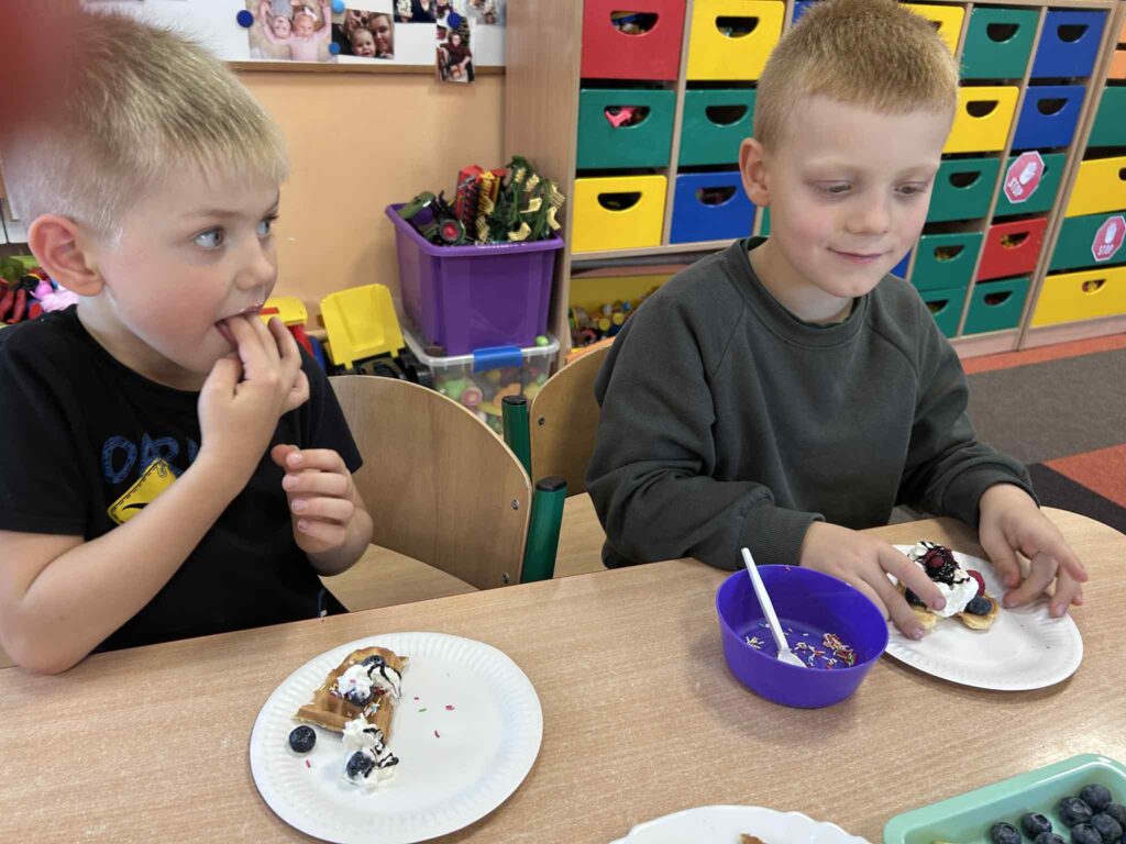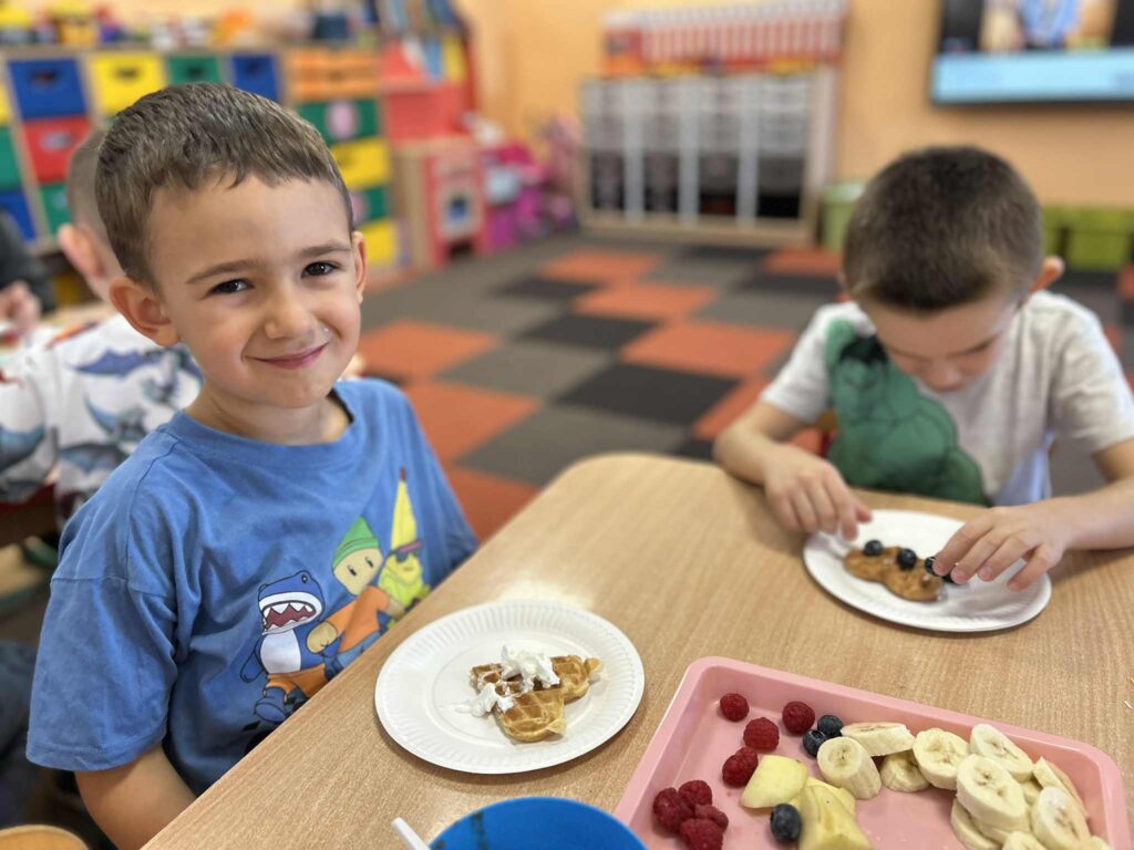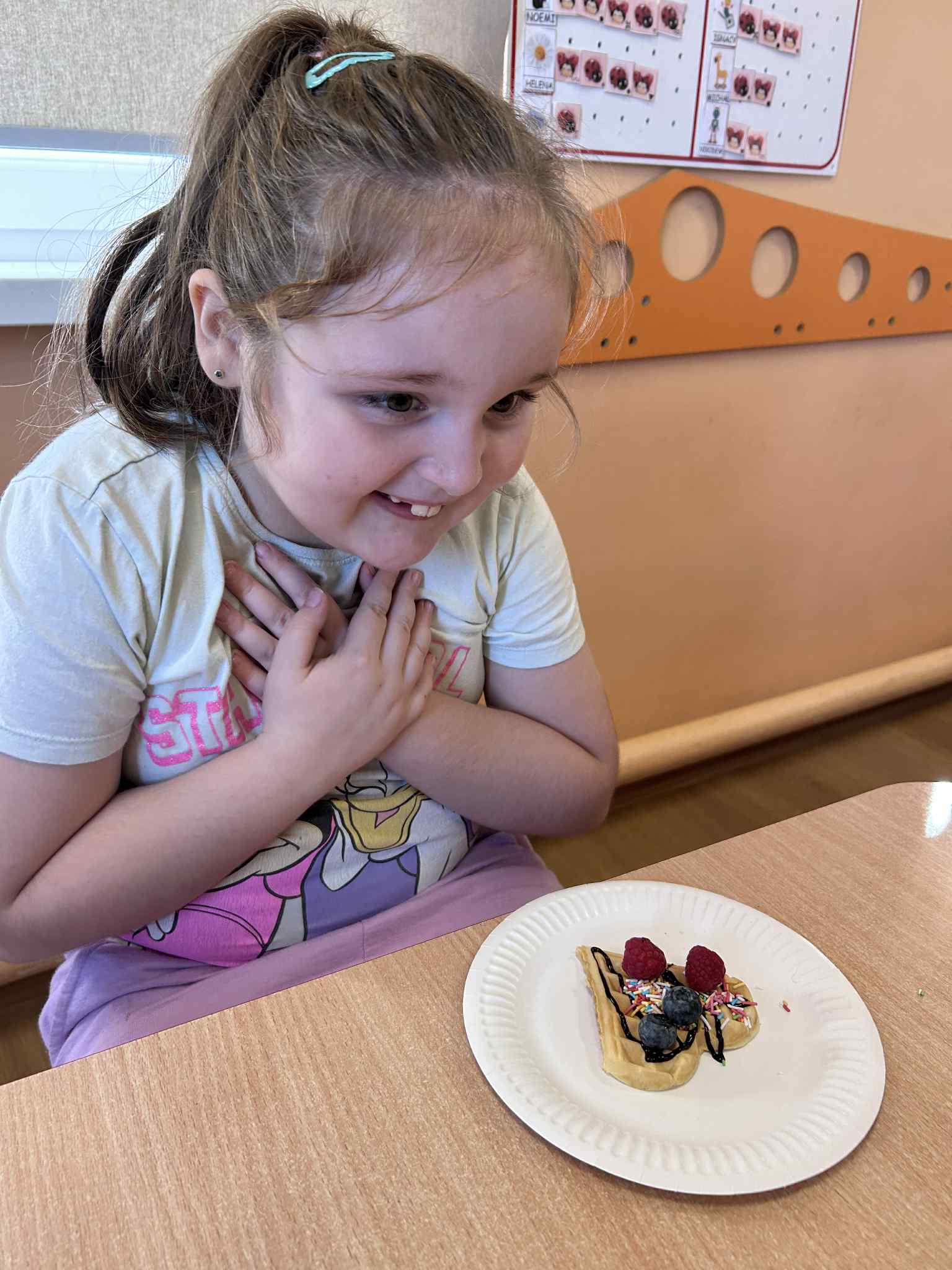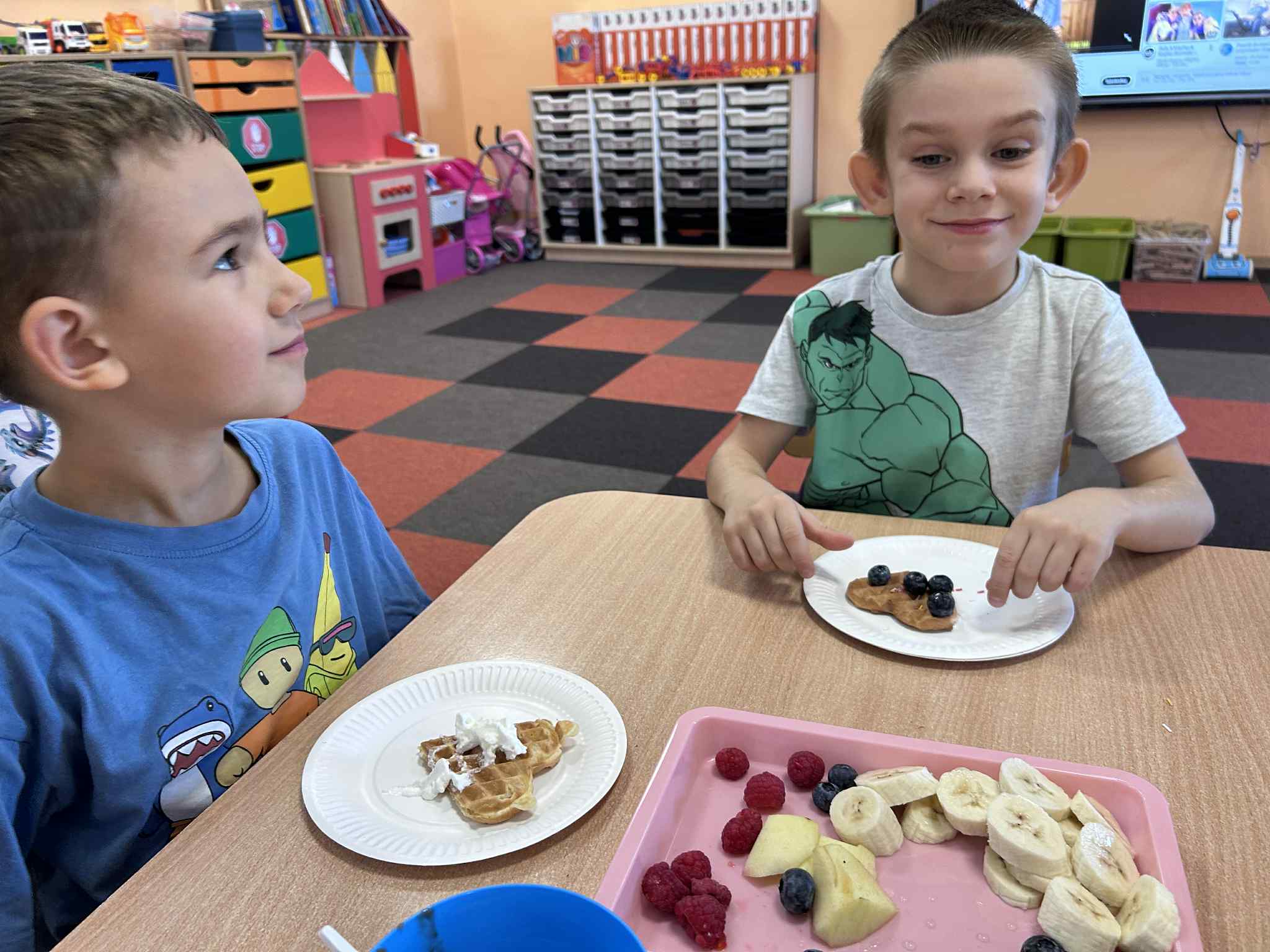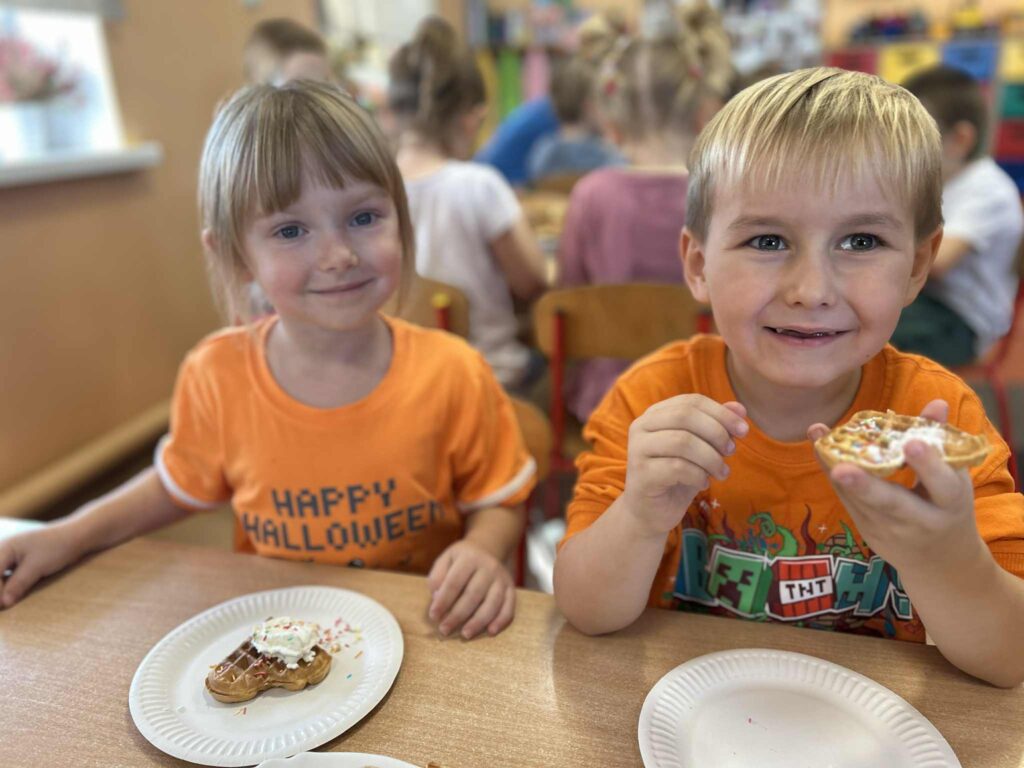 Nie zabrakło owoców, bitej śmietany i kolorowych dodatków. Dzieci mogły samodzielnie zdecydować, jak ozdobią swojego gofra – dzięki temu każdy był wyjątkowy i smakował doskonale!