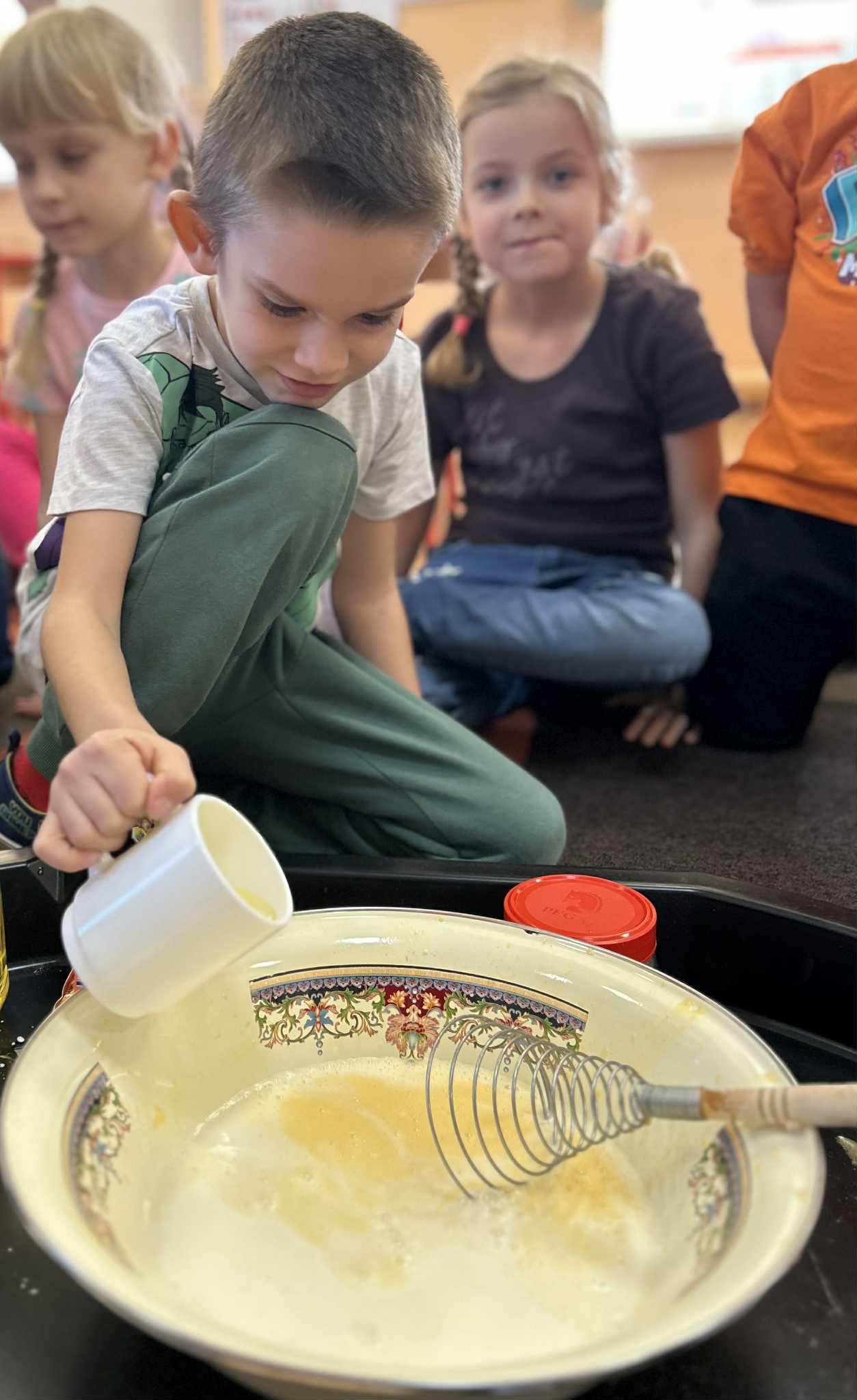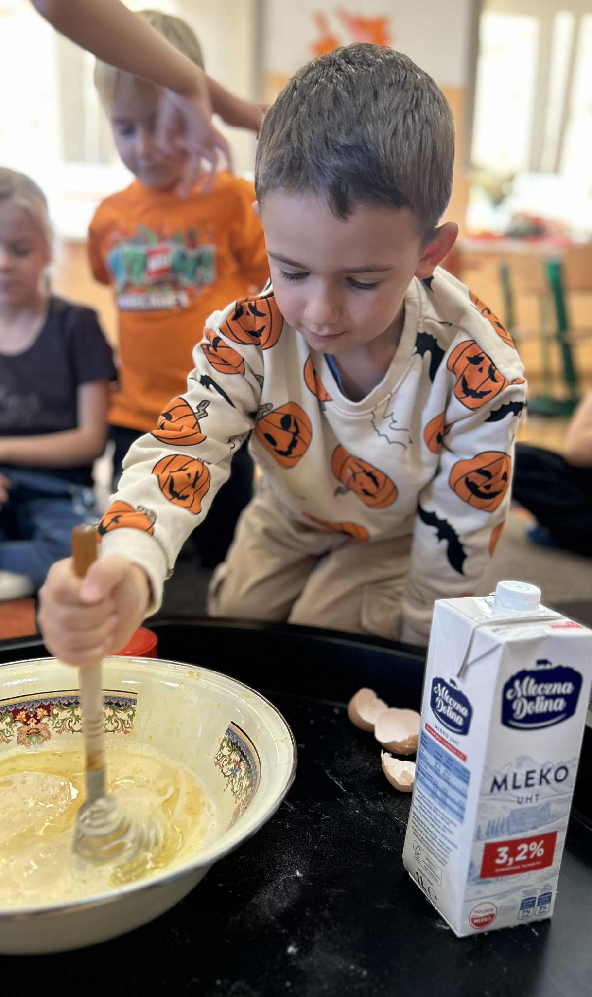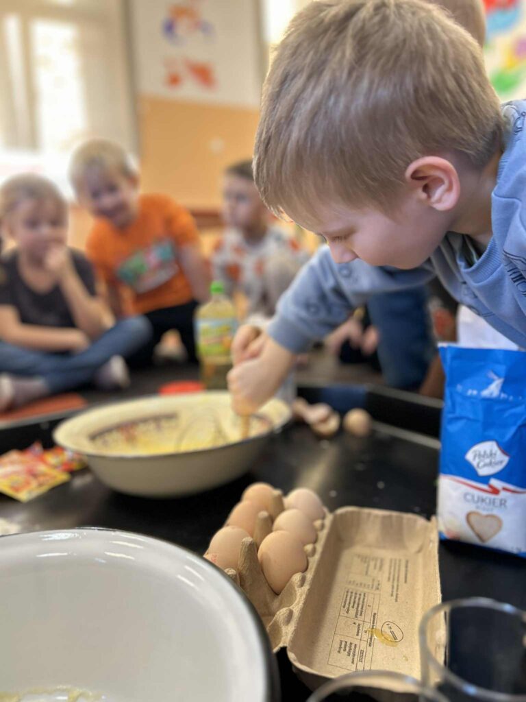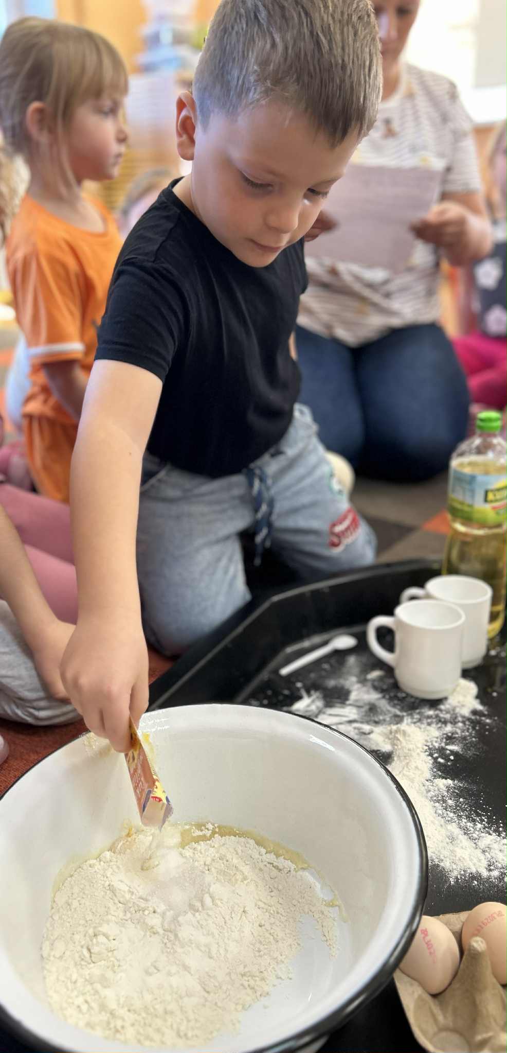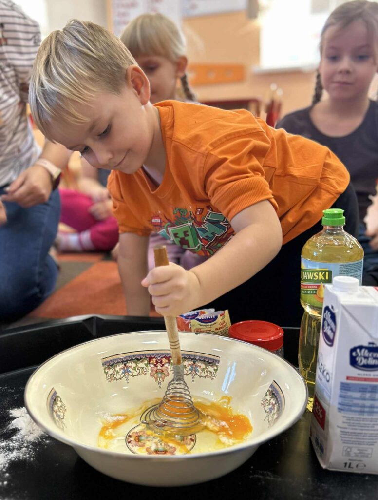 Podczas zajęć dzieci nie tylko świetnie się bawiły, ale również rozwijały umiejętności samodzielności, współpracy i cierpliwości. To była prawdziwa uczta dla zmysłów – zapach, smak i radość towarzyszyły nam przez cały dzień.