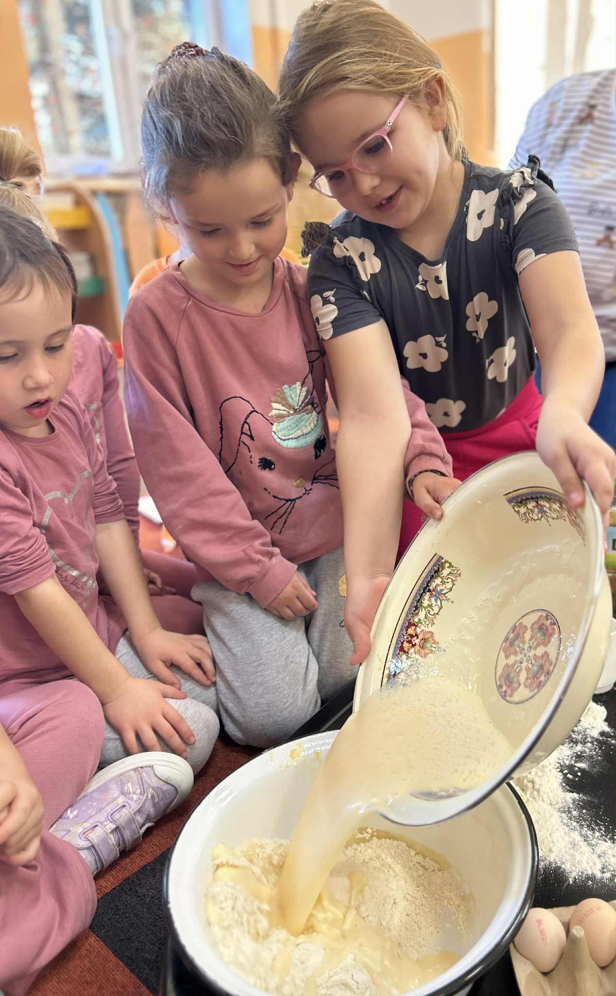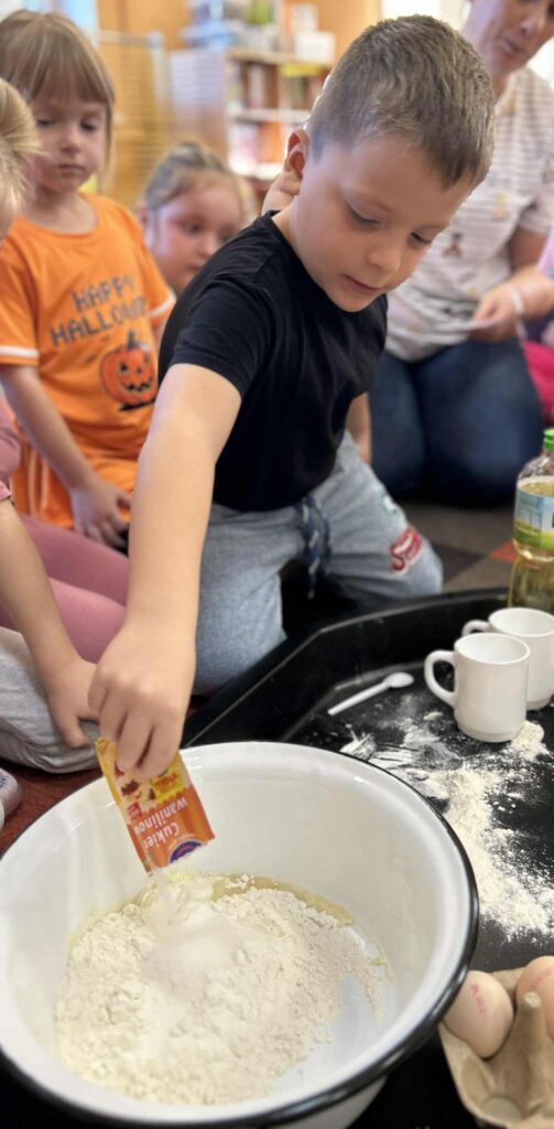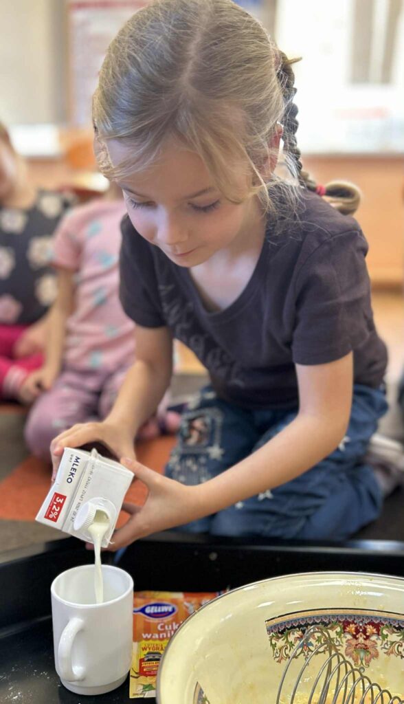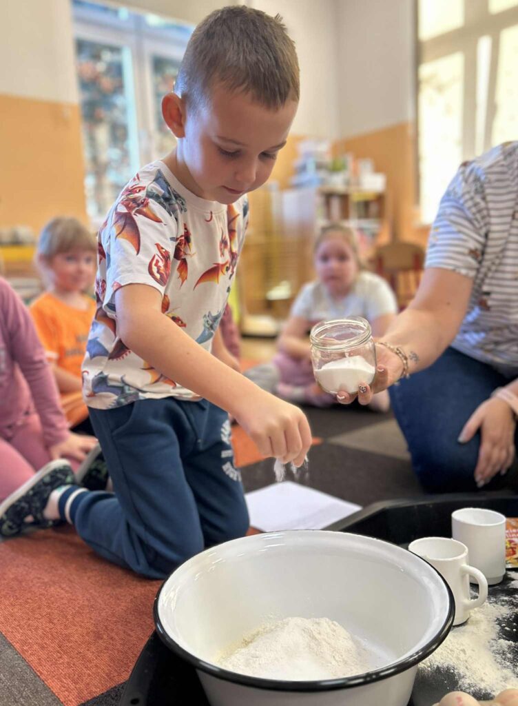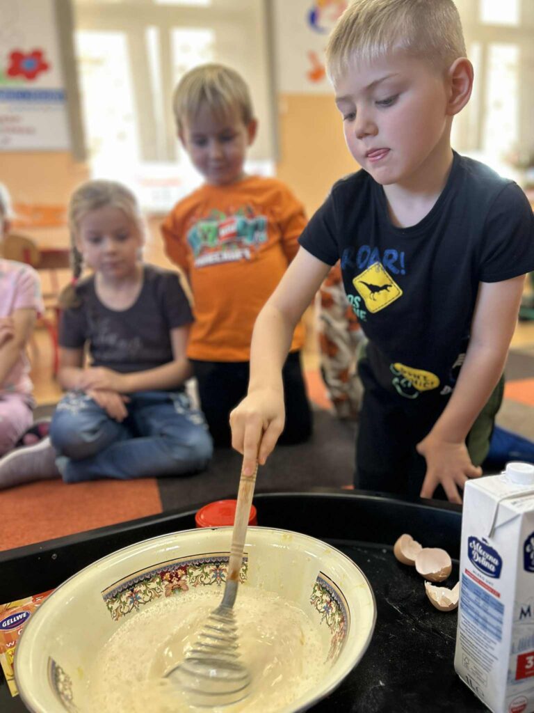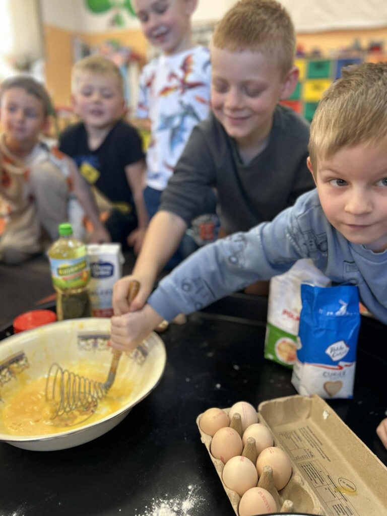 Podczas zajęć dzieci nie tylko świetnie się bawiły, ale również rozwijały umiejętności samodzielności, współpracy i cierpliwości. To była prawdziwa uczta dla zmysłów – zapach, smak i radość towarzyszyły nam przez cały dzień.