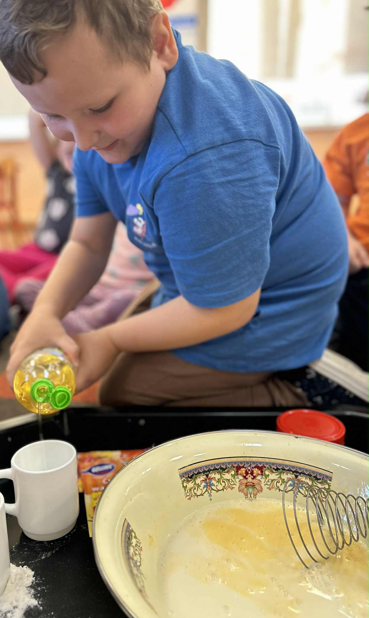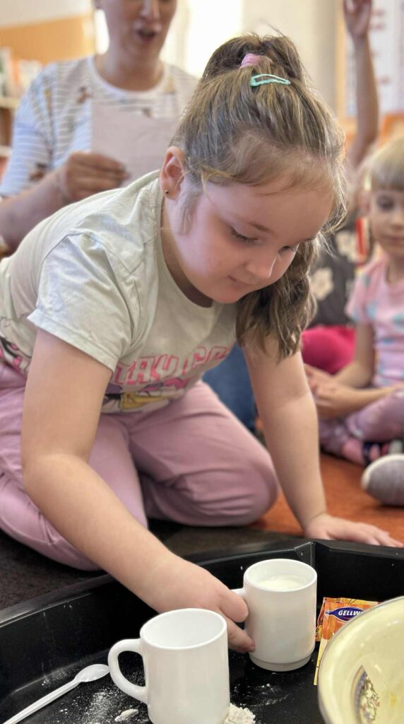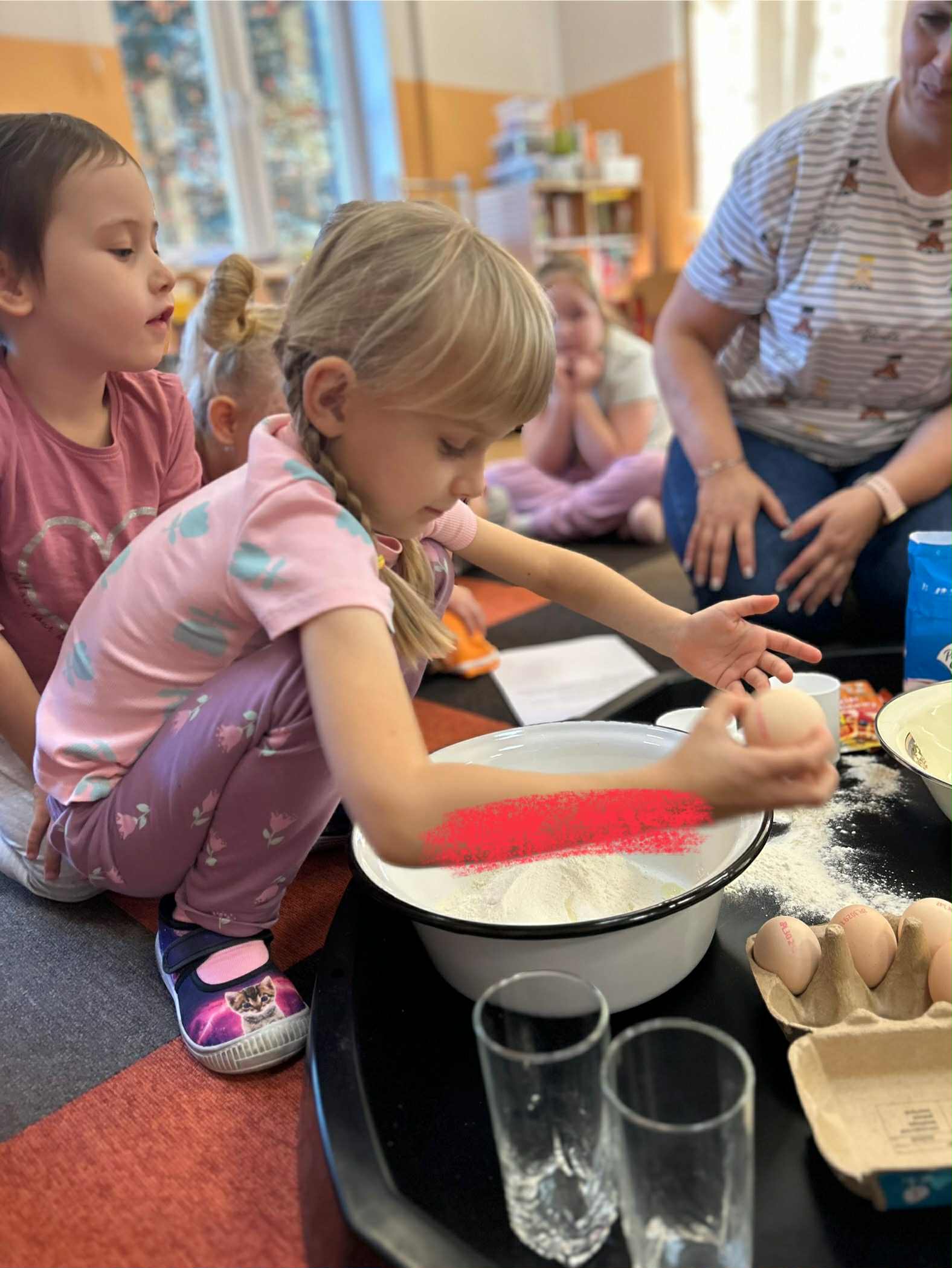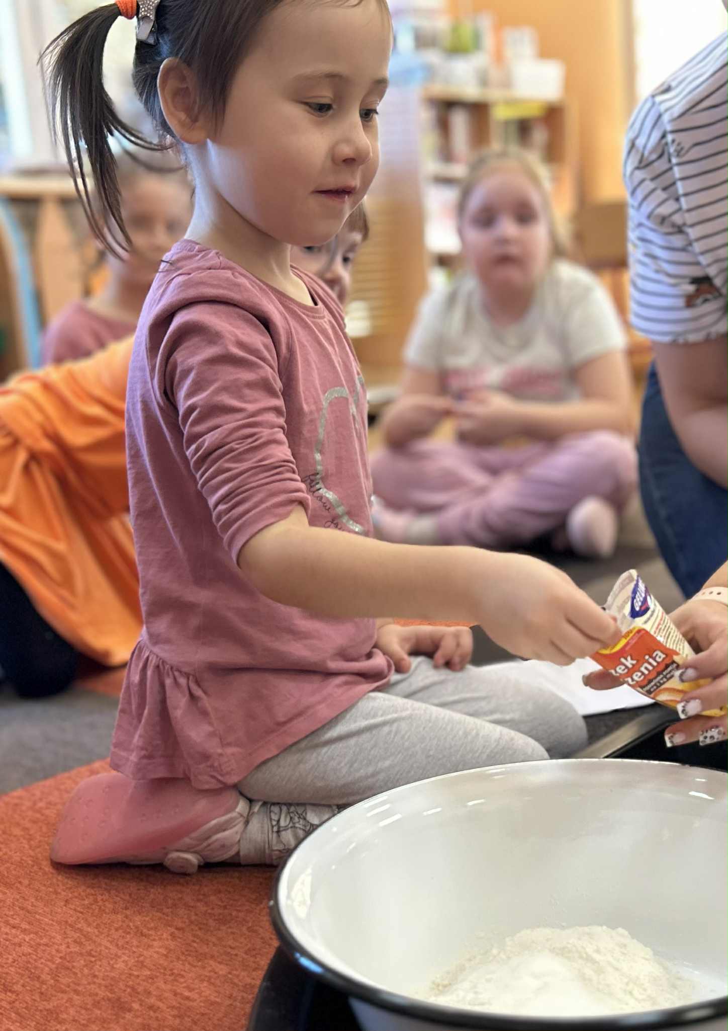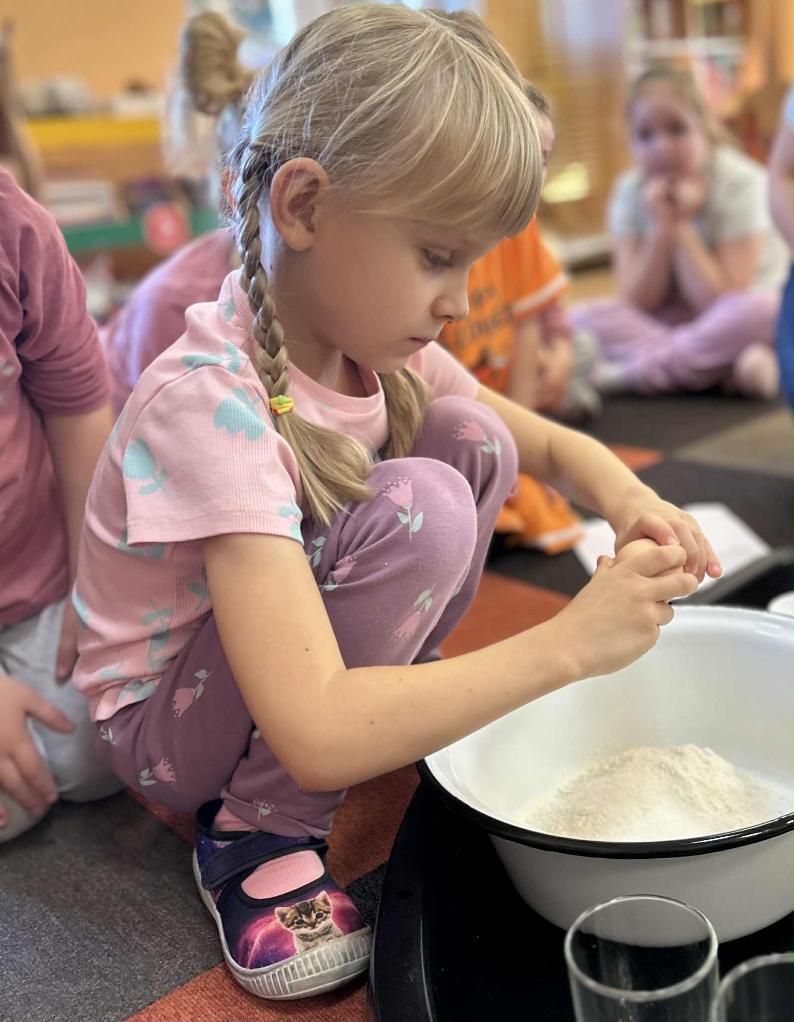 Podczas zajęć dzieci nie tylko świetnie się bawiły, ale również rozwijały umiejętności samodzielności, współpracy i cierpliwości. To była prawdziwa uczta dla zmysłów – zapach, smak i radość towarzyszyły nam przez cały dzień.