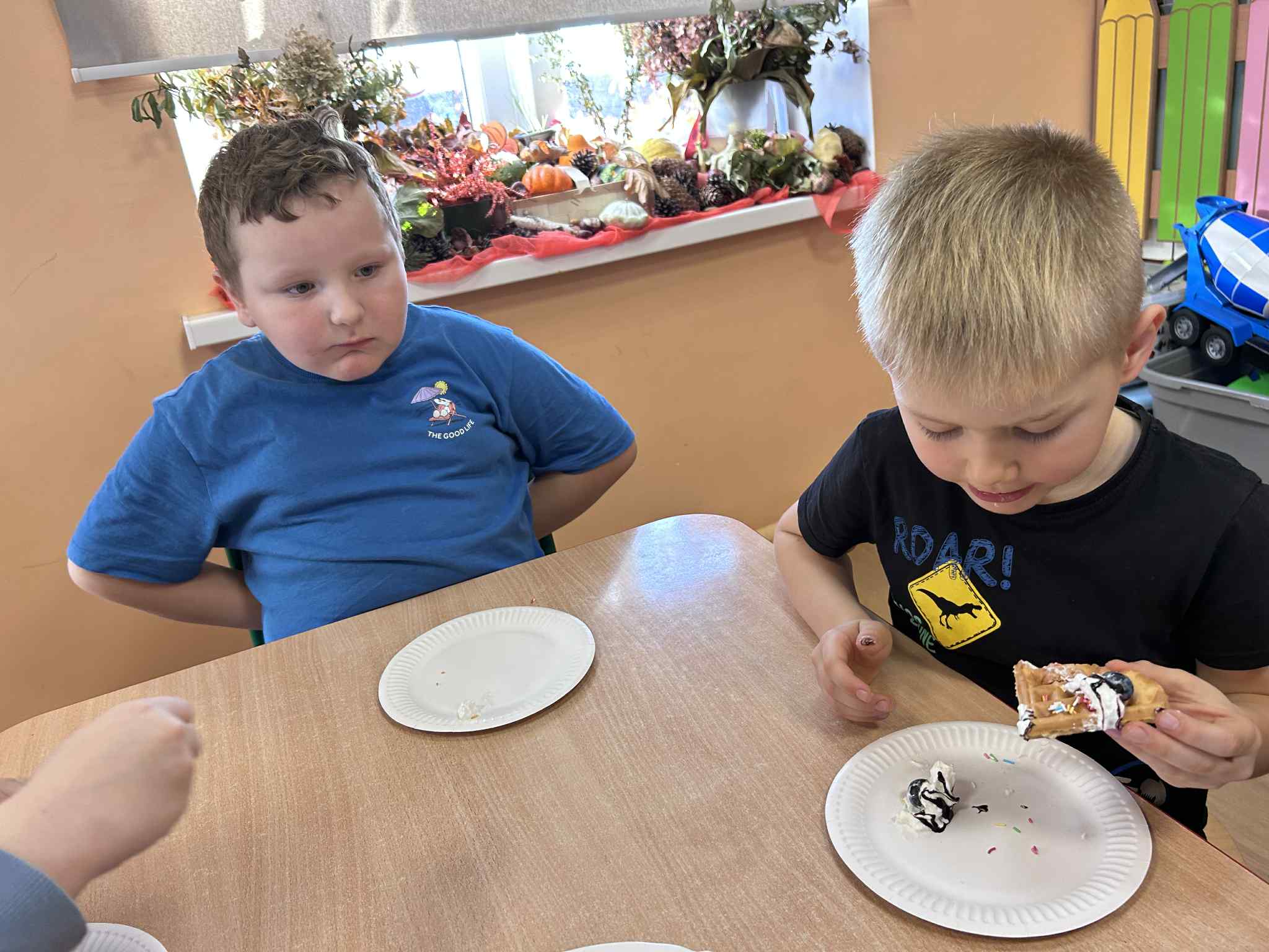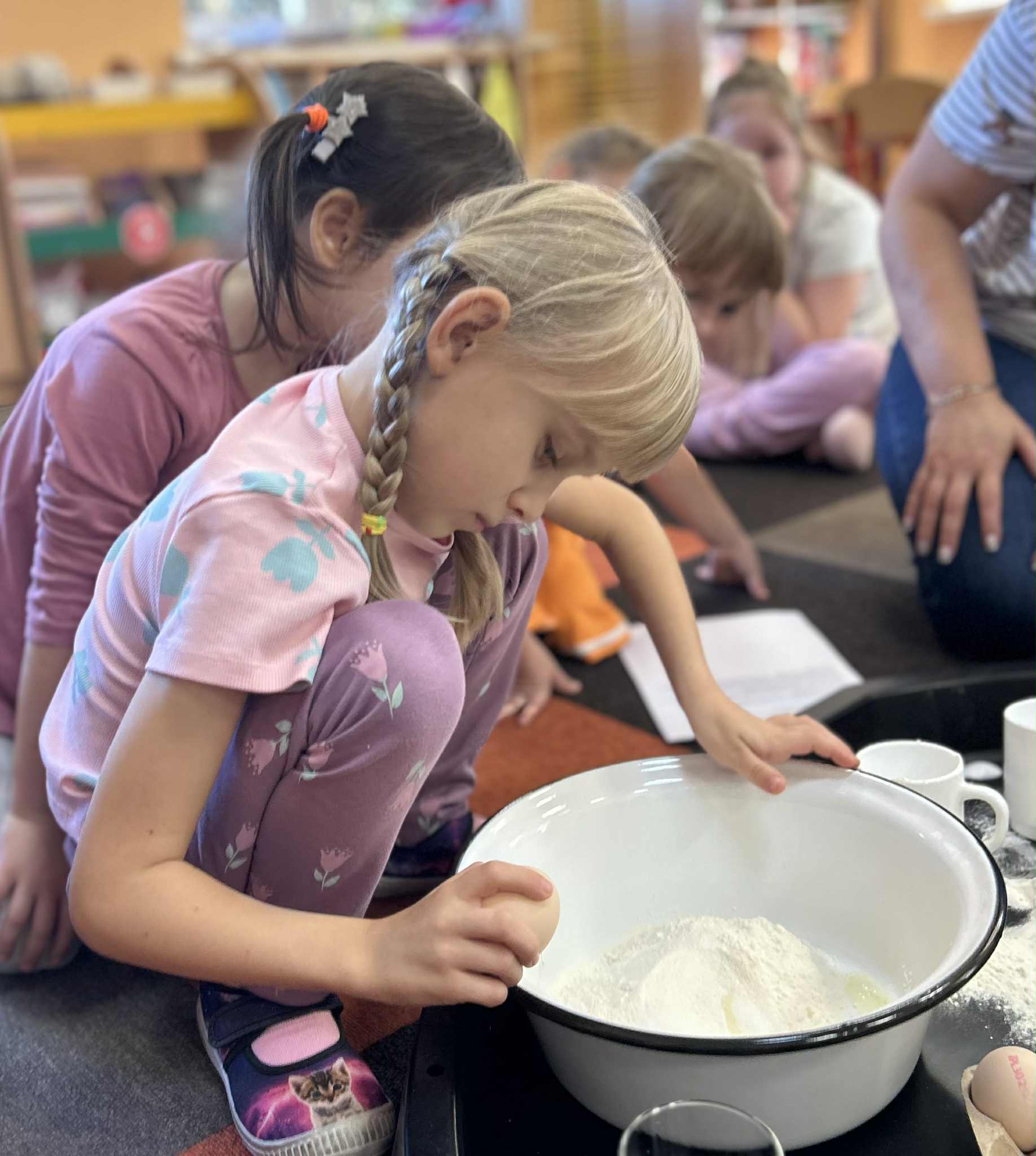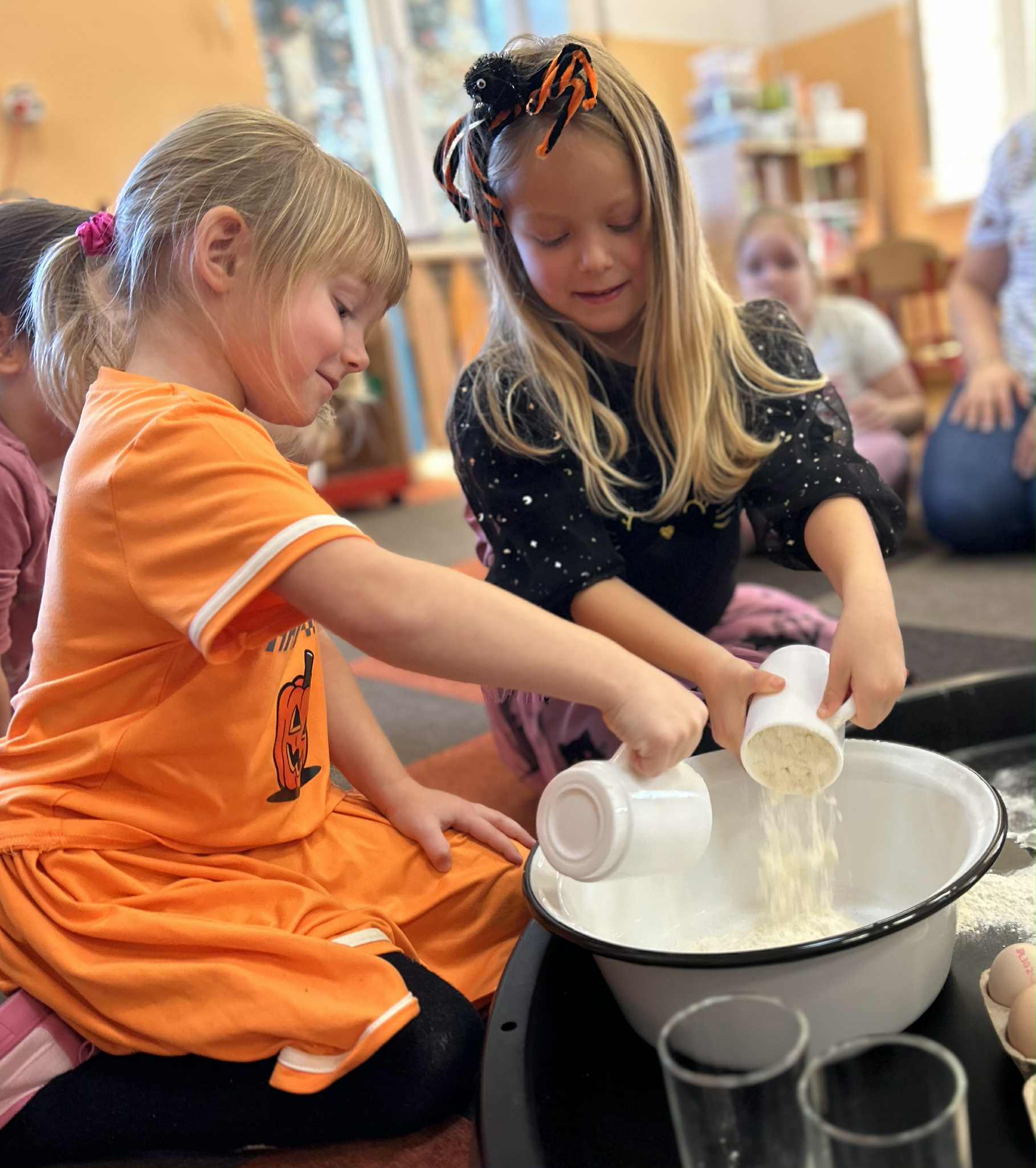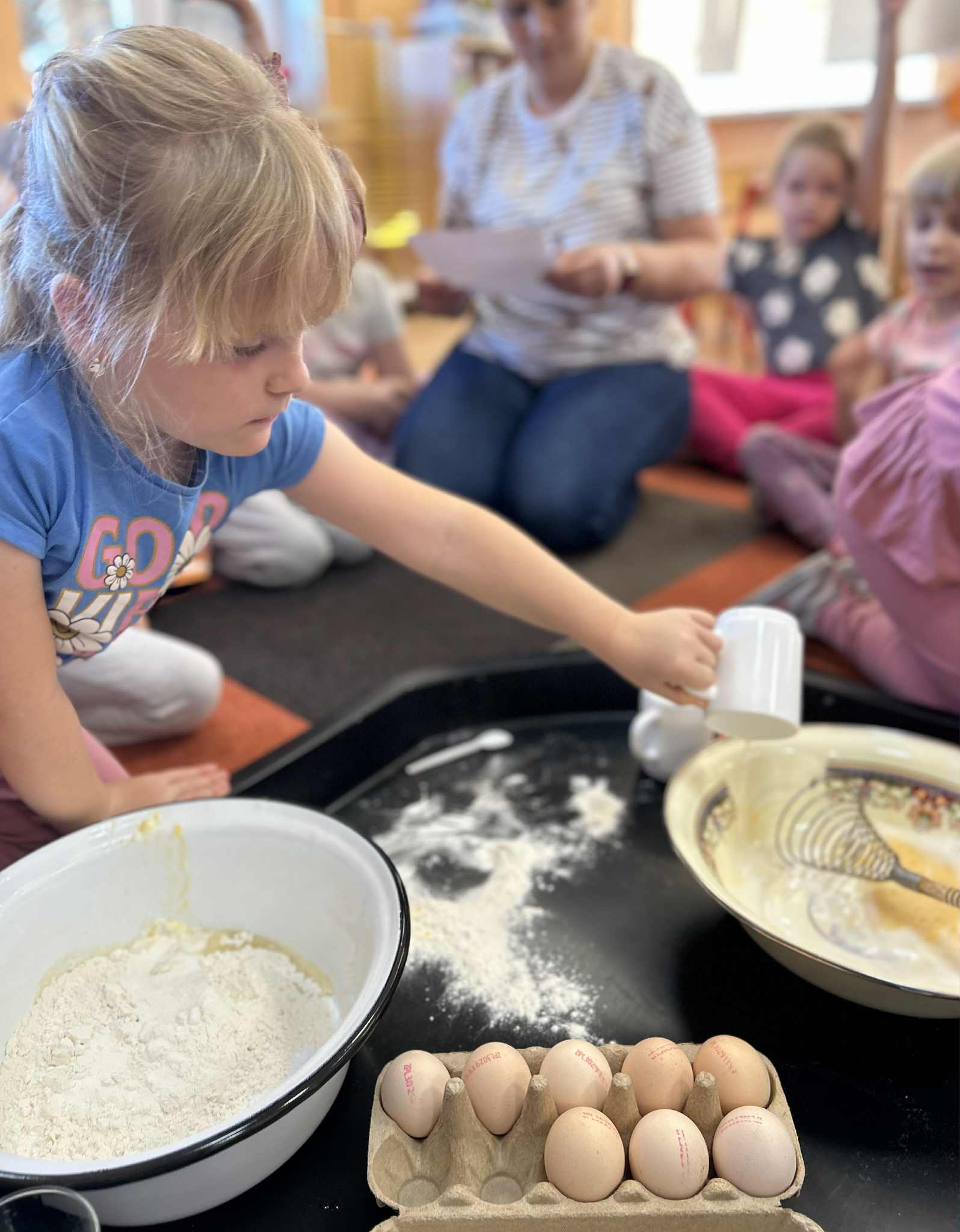 Podczas zajęć dzieci nie tylko świetnie się bawiły, ale również rozwijały umiejętności samodzielności, współpracy i cierpliwości. To była prawdziwa uczta dla zmysłów – zapach, smak i radość towarzyszyły nam przez cały dzień.