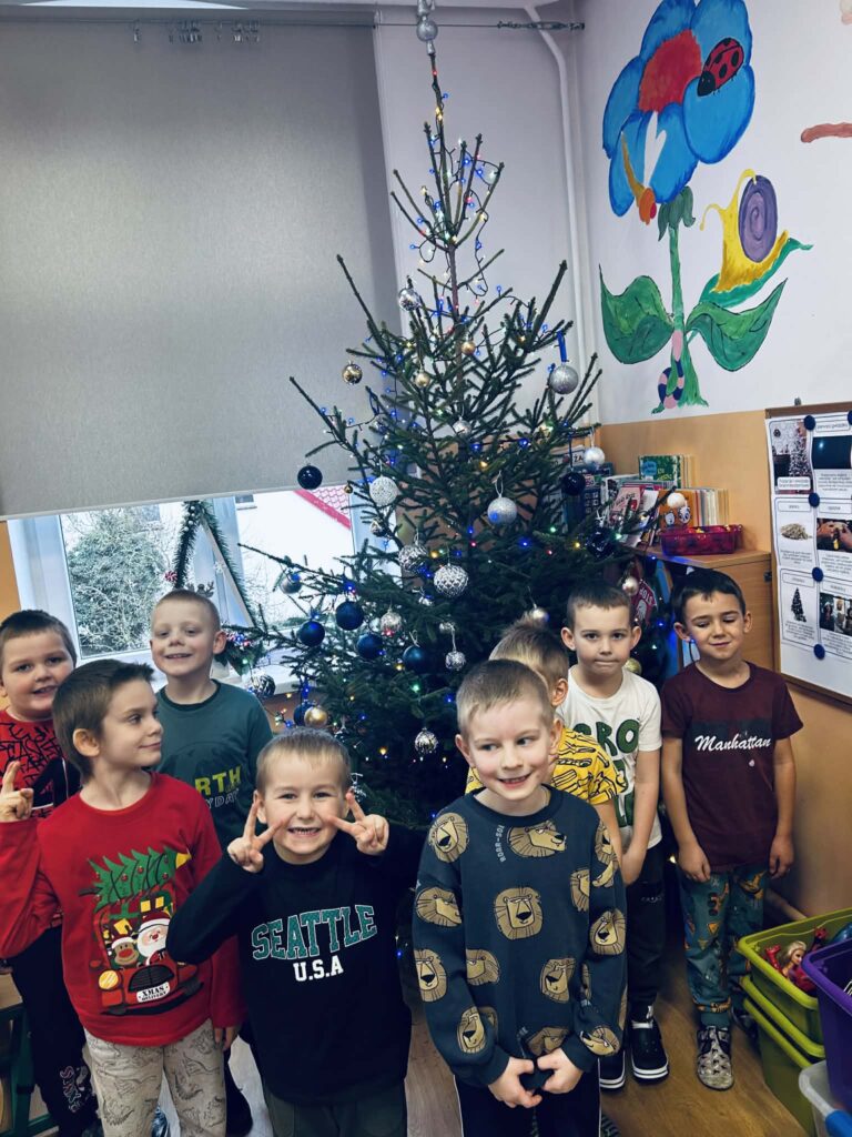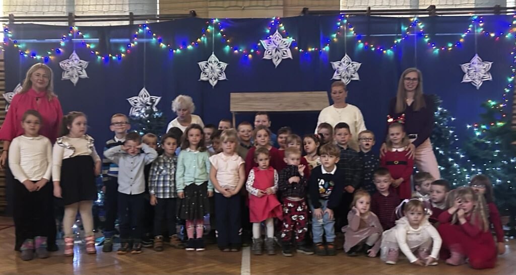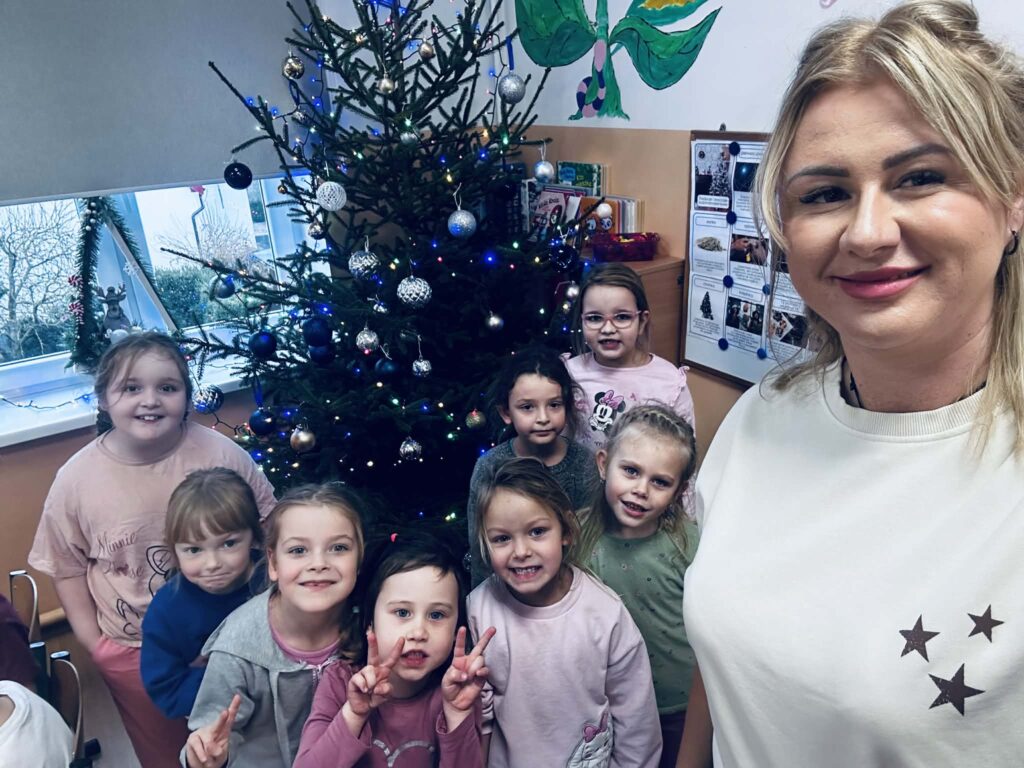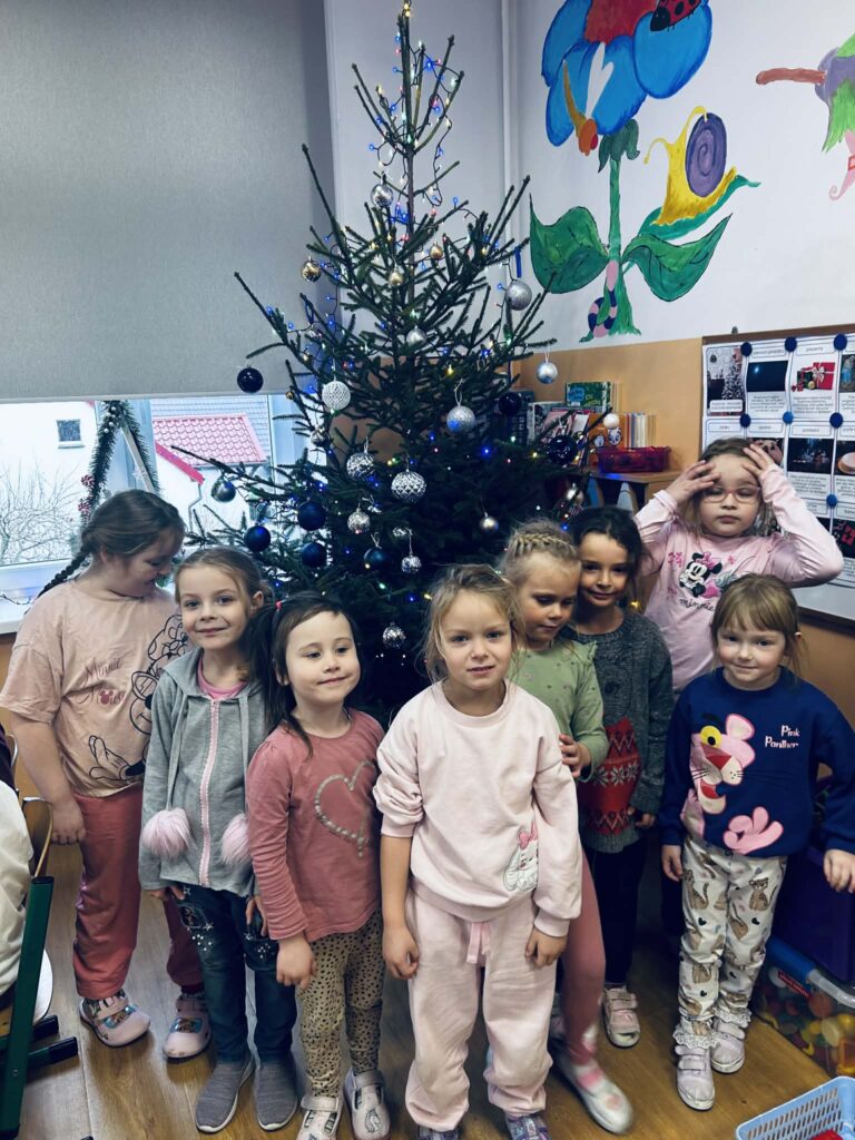 Świąteczny czas w przedszkolu był pełen radości i ciepłej atmosfery. Dzieci z zaangażowaniem wykonywały prace plastyczne o tematyce bożonarodzeniowej, rozwijając swoją kreatywność. Odbyła się również świąteczna sesja zdjęciowa oraz spotkanie z rodzicami. Wspólnie przeżywaliśmy wigilię grupową, dzieląc się życzeniami i śpiewając kolędy. Zwieńczeniem tego wyjątkowego okresu były szkolne jasełka oraz koncert kolęd, które wprowadziły wszystkich w prawdziwie świąteczny nastrój.