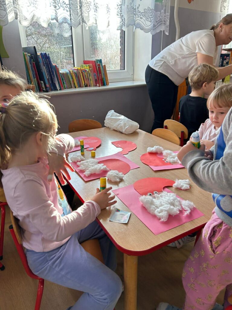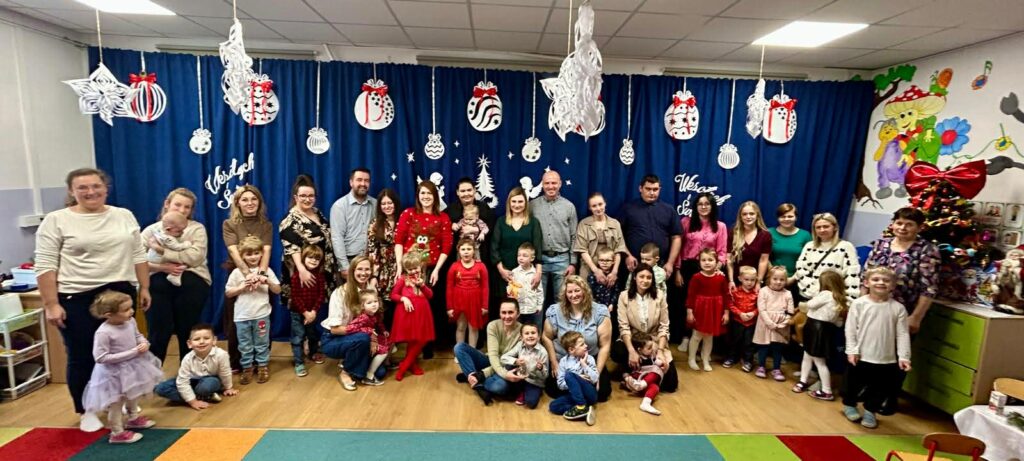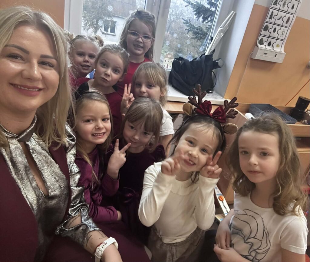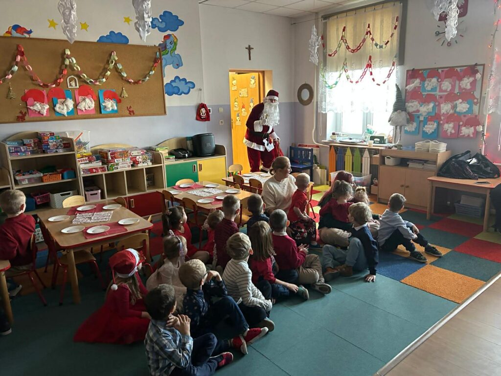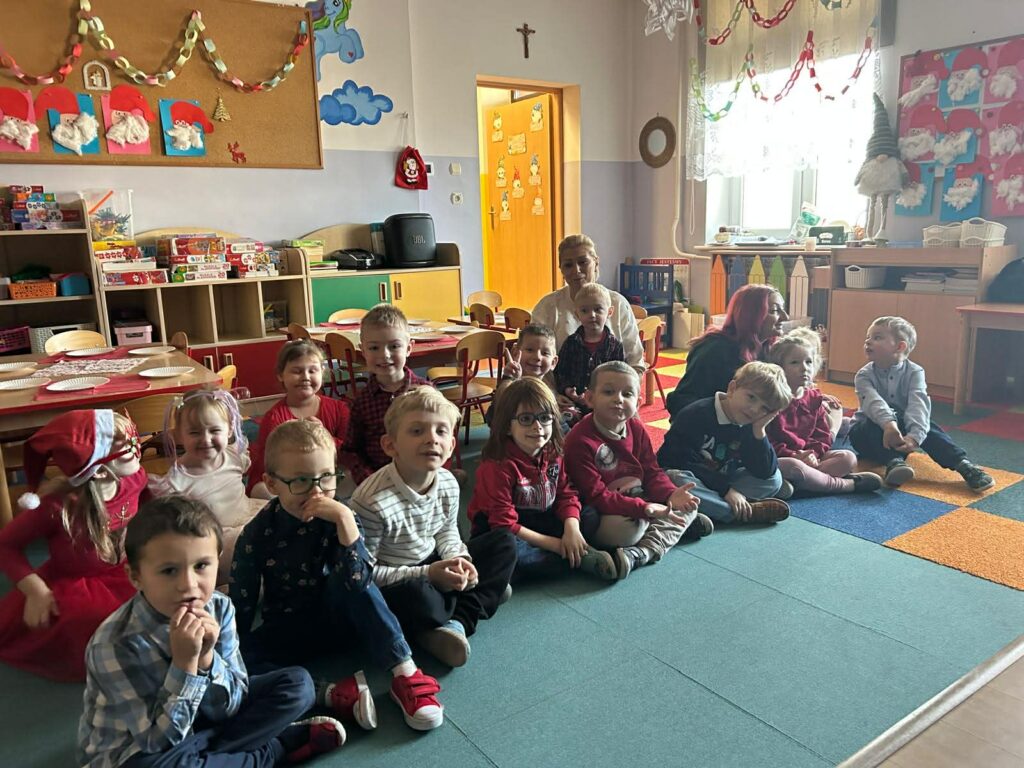 Świąteczny czas w przedszkolu był pełen radości i ciepłej atmosfery. Dzieci z zaangażowaniem wykonywały prace plastyczne o tematyce bożonarodzeniowej, rozwijając swoją kreatywność. Odbyła się również świąteczna sesja zdjęciowa oraz spotkanie z rodzicami. Wspólnie przeżywaliśmy wigilię grupową, dzieląc się życzeniami i śpiewając kolędy. Zwieńczeniem tego wyjątkowego okresu były szkolne jasełka oraz koncert kolęd, które wprowadziły wszystkich w prawdziwie świąteczny nastrój.