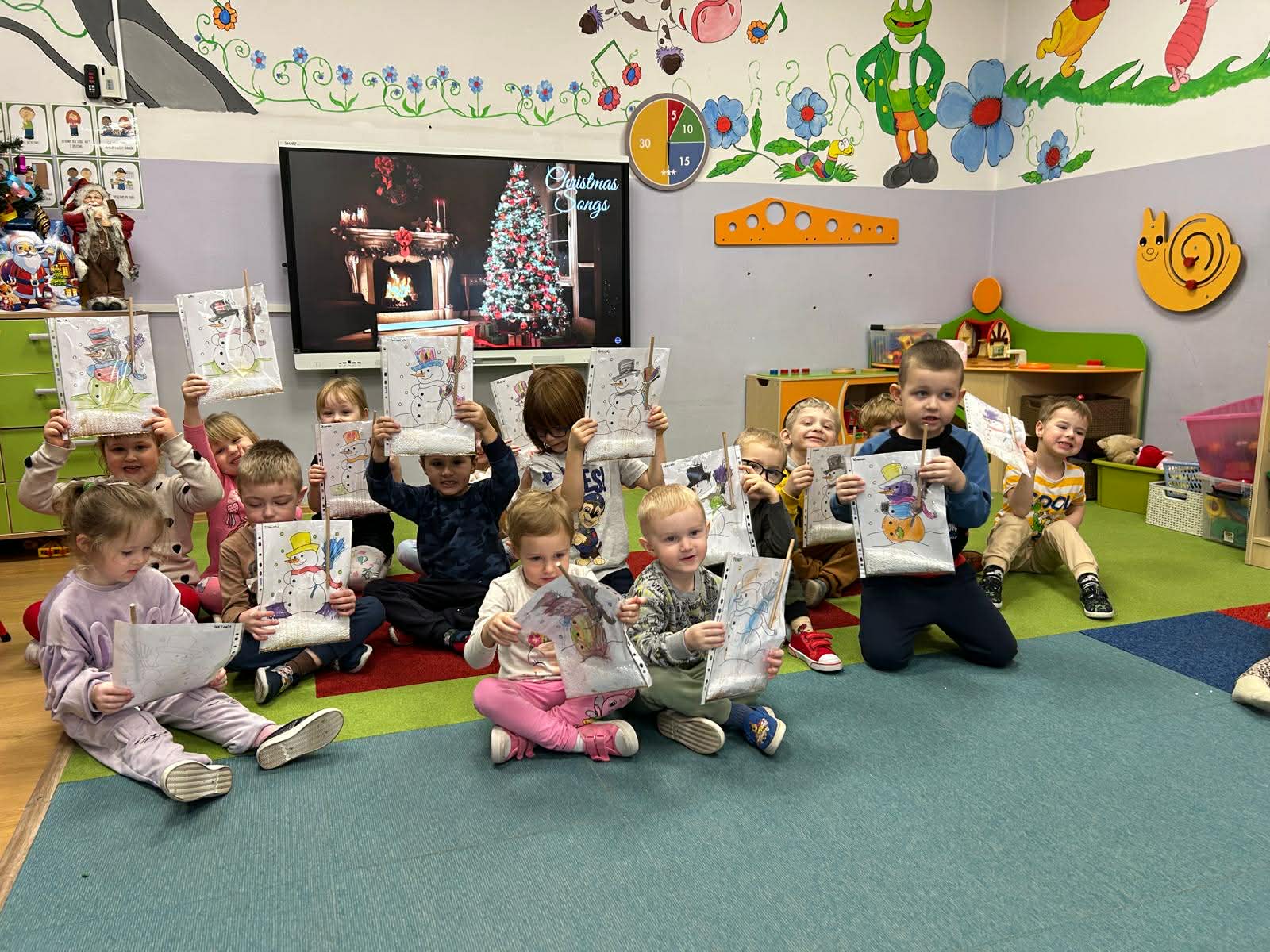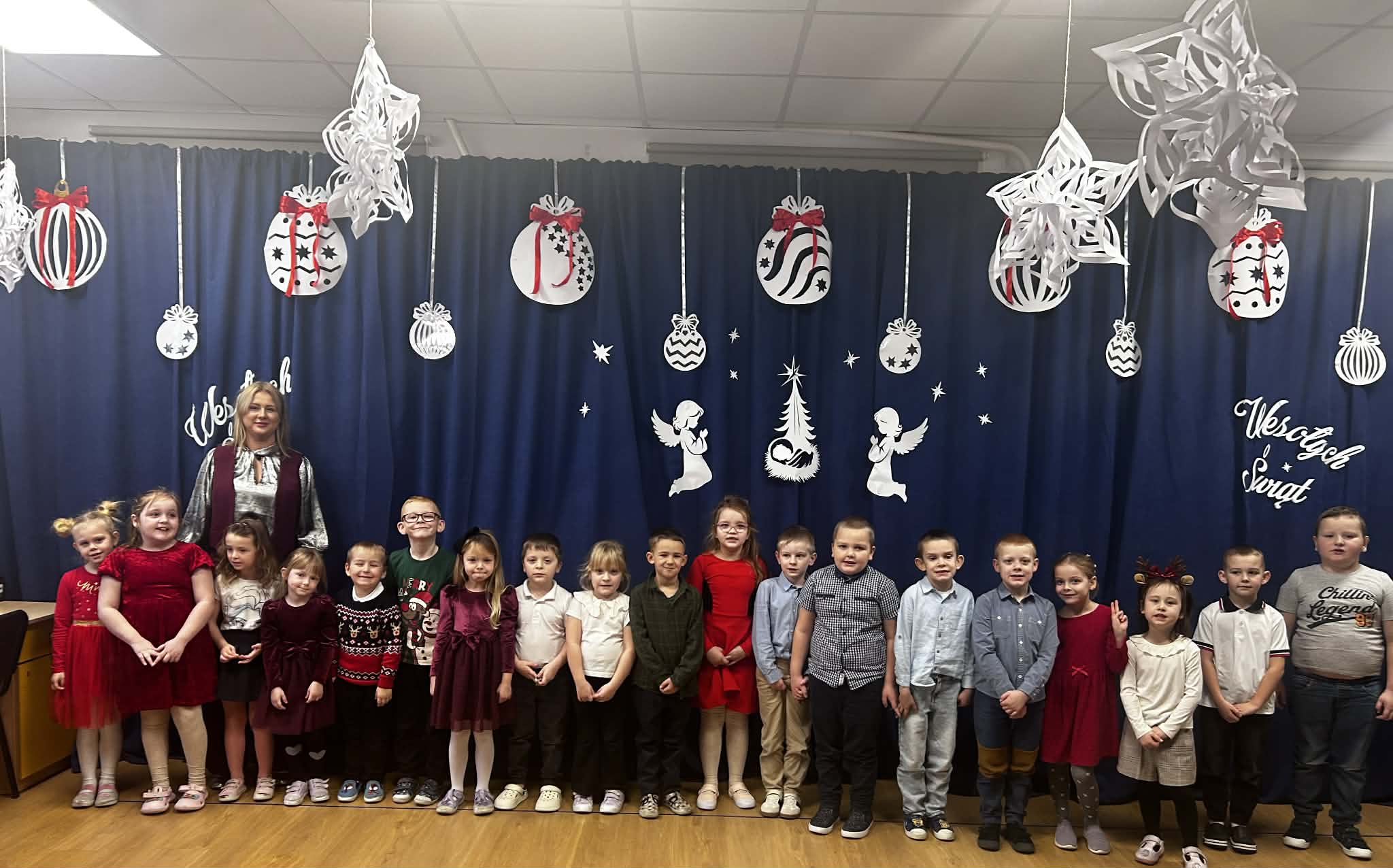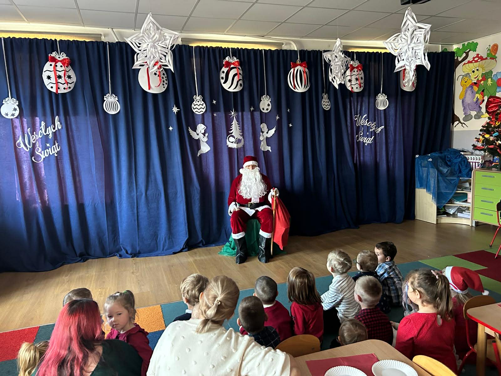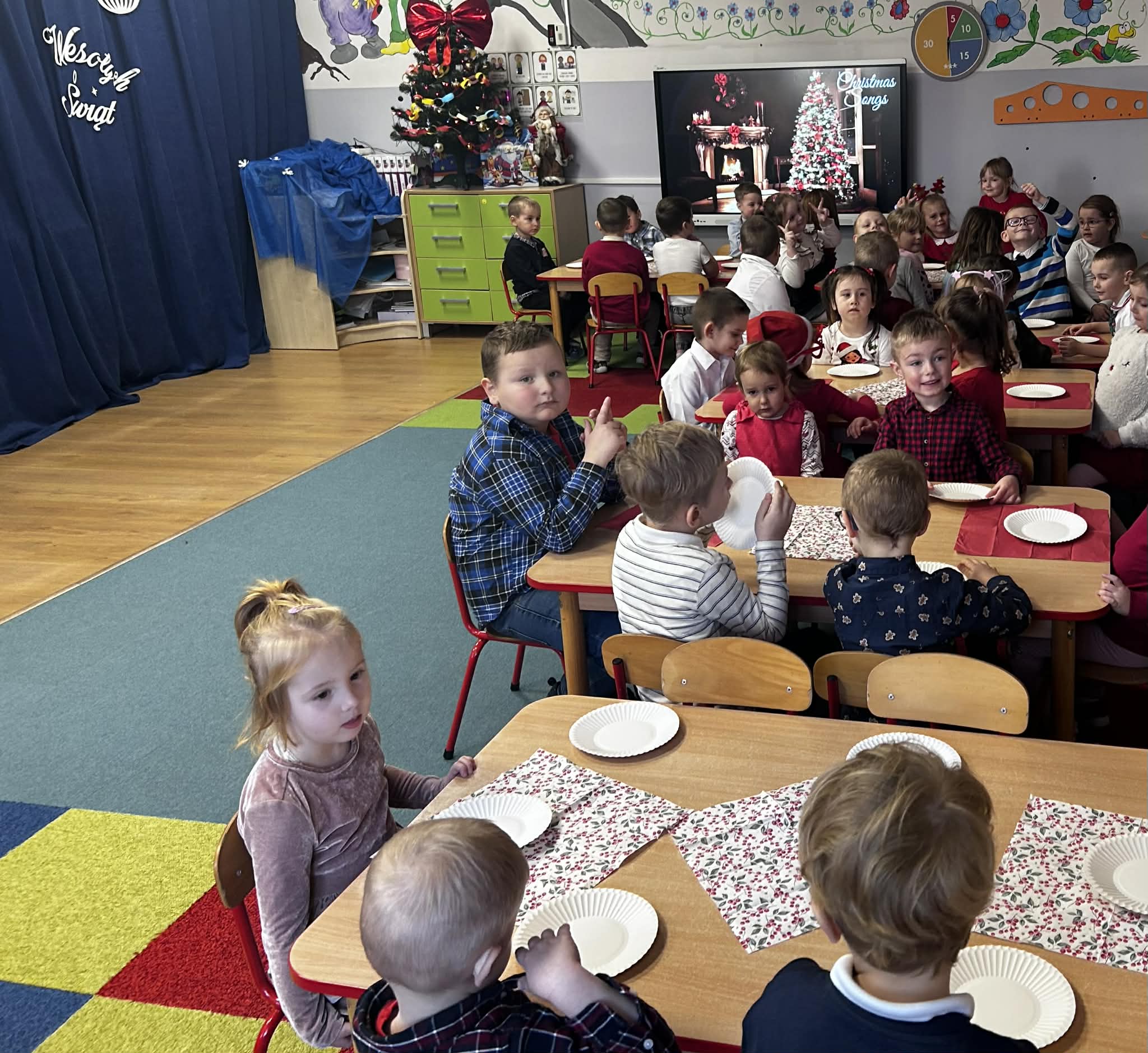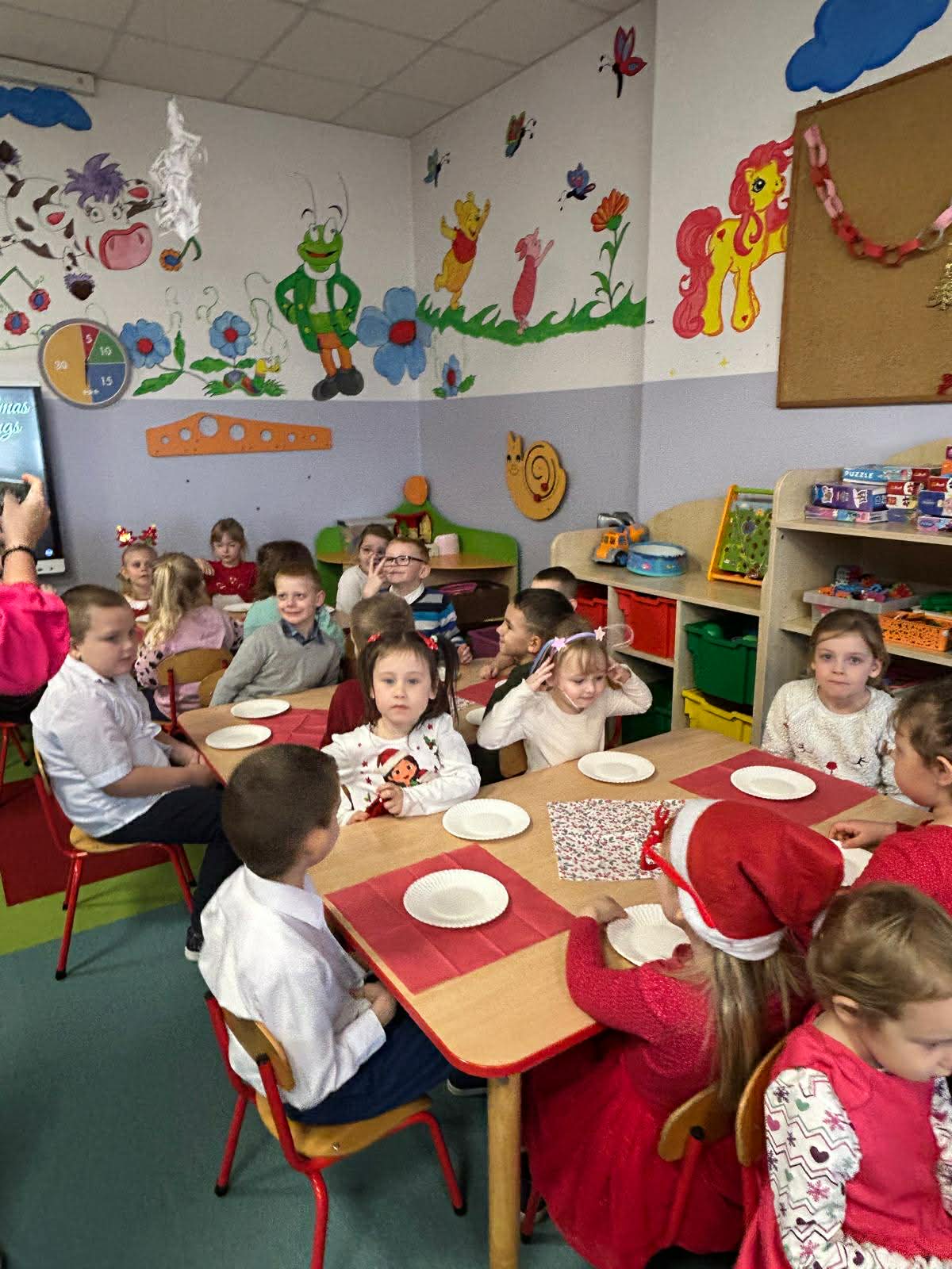 Świąteczny czas w przedszkolu był pełen radości i ciepłej atmosfery. Dzieci z zaangażowaniem wykonywały prace plastyczne o tematyce bożonarodzeniowej, rozwijając swoją kreatywność. Odbyła się również świąteczna sesja zdjęciowa oraz spotkanie z rodzicami. Wspólnie przeżywaliśmy wigilię grupową, dzieląc się życzeniami i śpiewając kolędy. Zwieńczeniem tego wyjątkowego okresu były szkolne jasełka oraz koncert kolęd, które wprowadziły wszystkich w prawdziwie świąteczny nastrój.