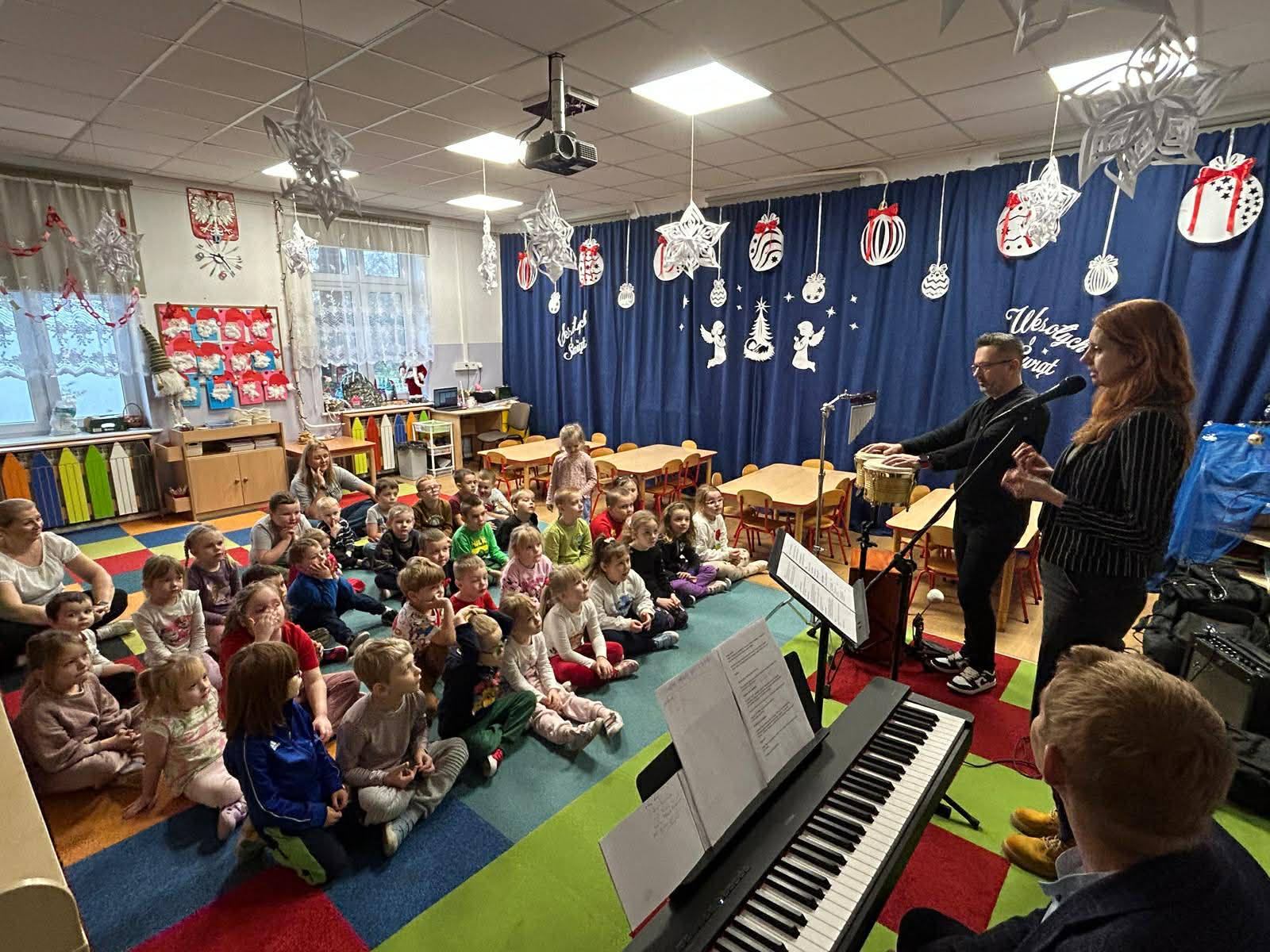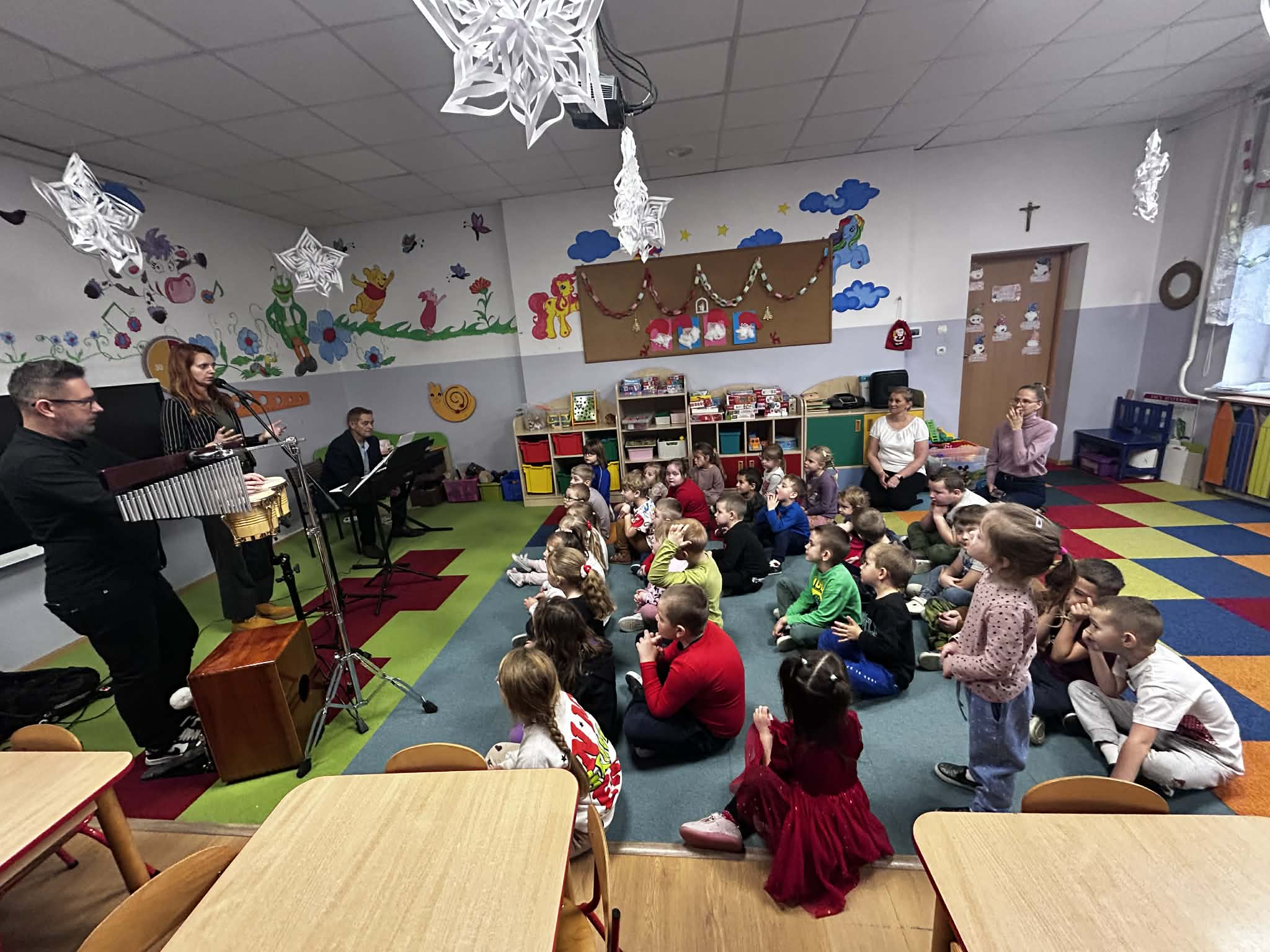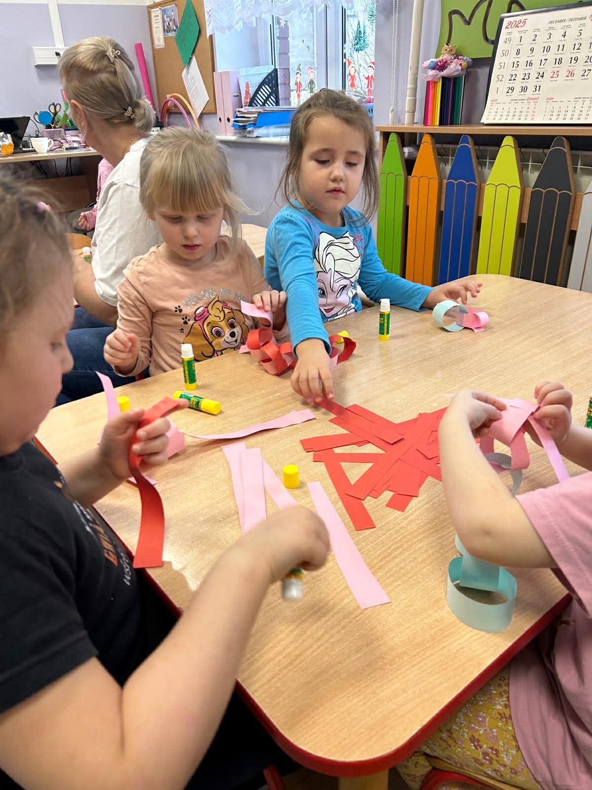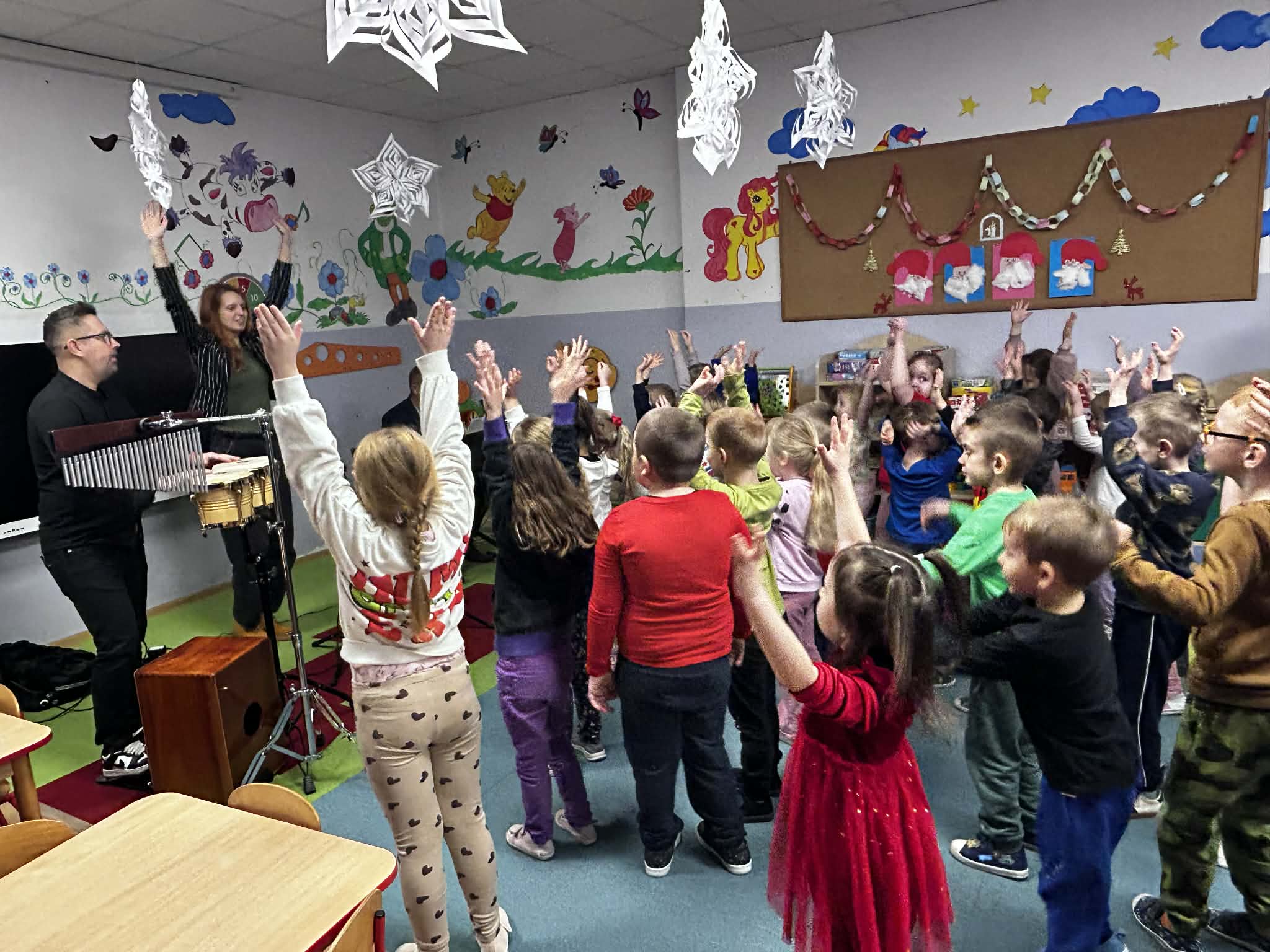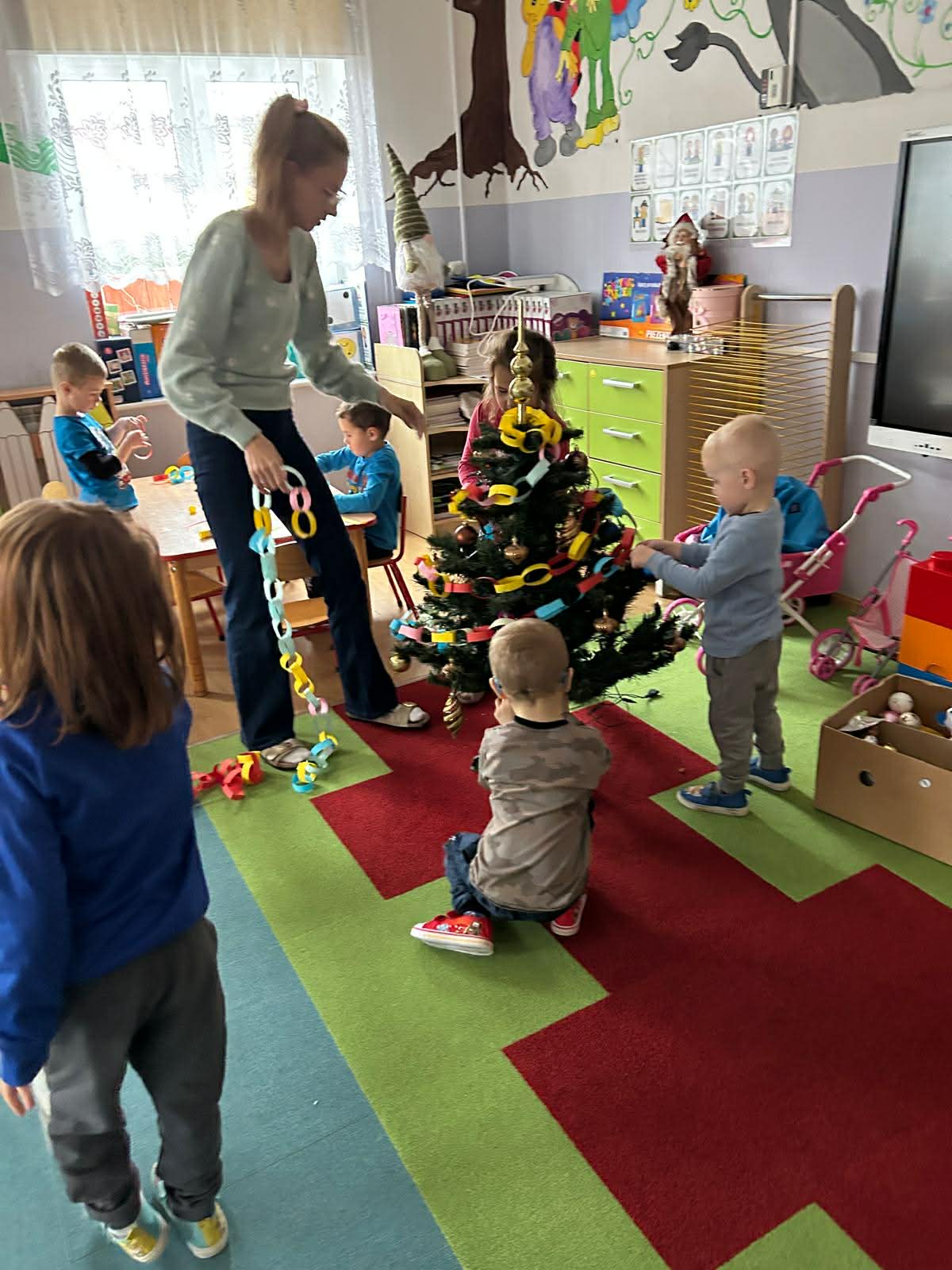 Świąteczny czas w przedszkolu był pełen radości i ciepłej atmosfery. Dzieci z zaangażowaniem wykonywały prace plastyczne o tematyce bożonarodzeniowej, rozwijając swoją kreatywność. Odbyła się również świąteczna sesja zdjęciowa oraz spotkanie z rodzicami. Wspólnie przeżywaliśmy wigilię grupową, dzieląc się życzeniami i śpiewając kolędy. Zwieńczeniem tego wyjątkowego okresu były szkolne jasełka oraz koncert kolęd, które wprowadziły wszystkich w prawdziwie świąteczny nastrój.