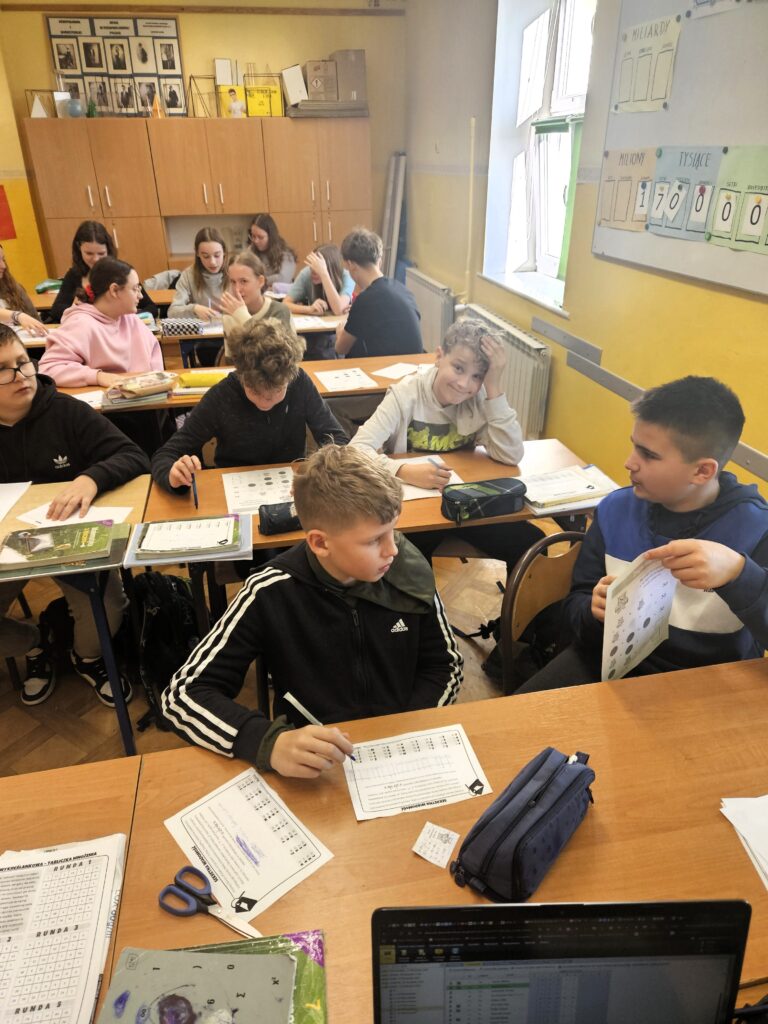 21 listopada 2025 r. w naszej szkole obchodzono Dzień Tabliczki Mnożenia. Z tej okazji odbył się konkurs matematyczny „Mistrz tabliczki mnożenia”. W ramach przygotowań do konkursu uczniowie przez dwa tygodnie przypominali sobie tabliczkę mnożenia, szyfrowali wiadomości do siebie, rozwiązywali rebusy, grali w wykreślanki.