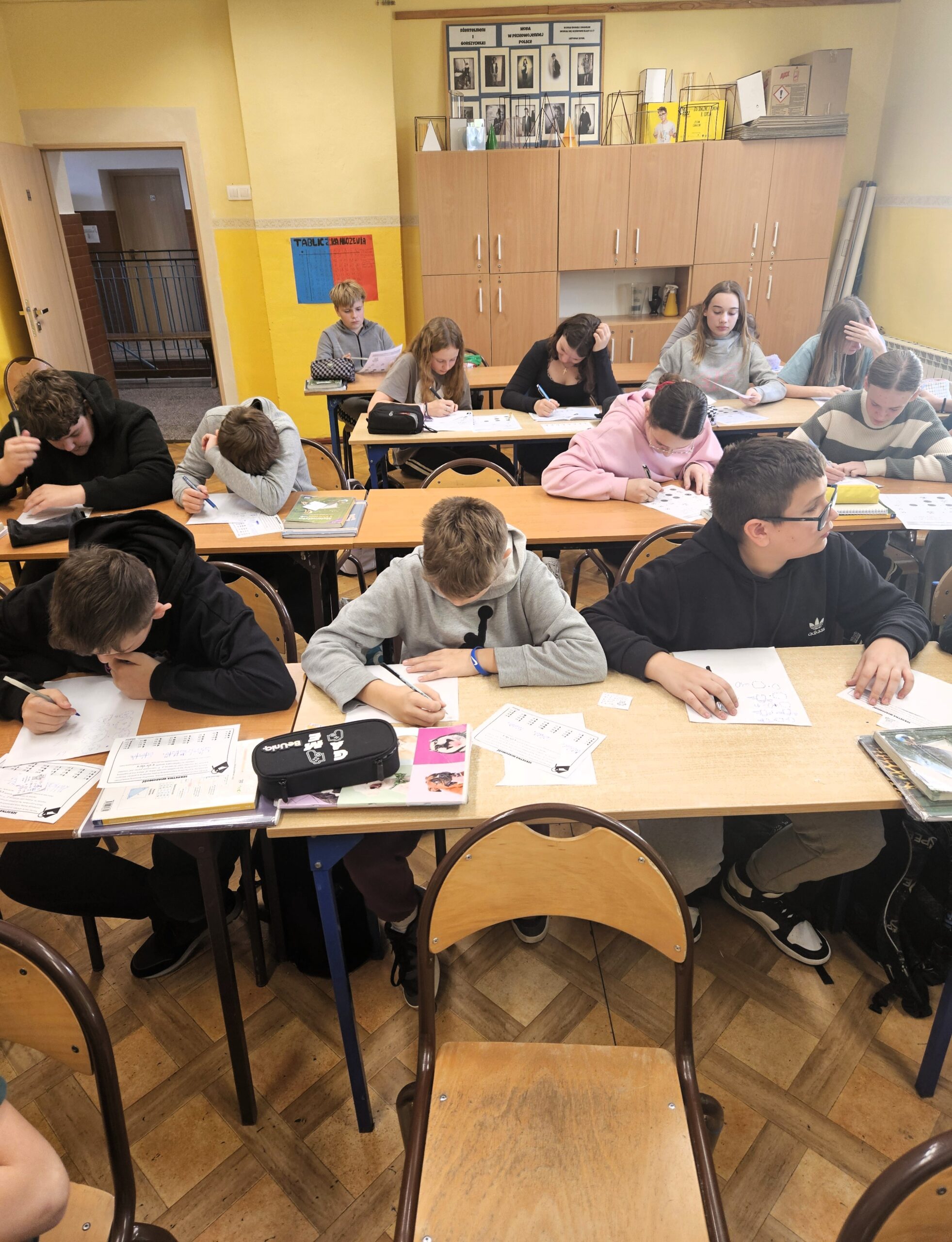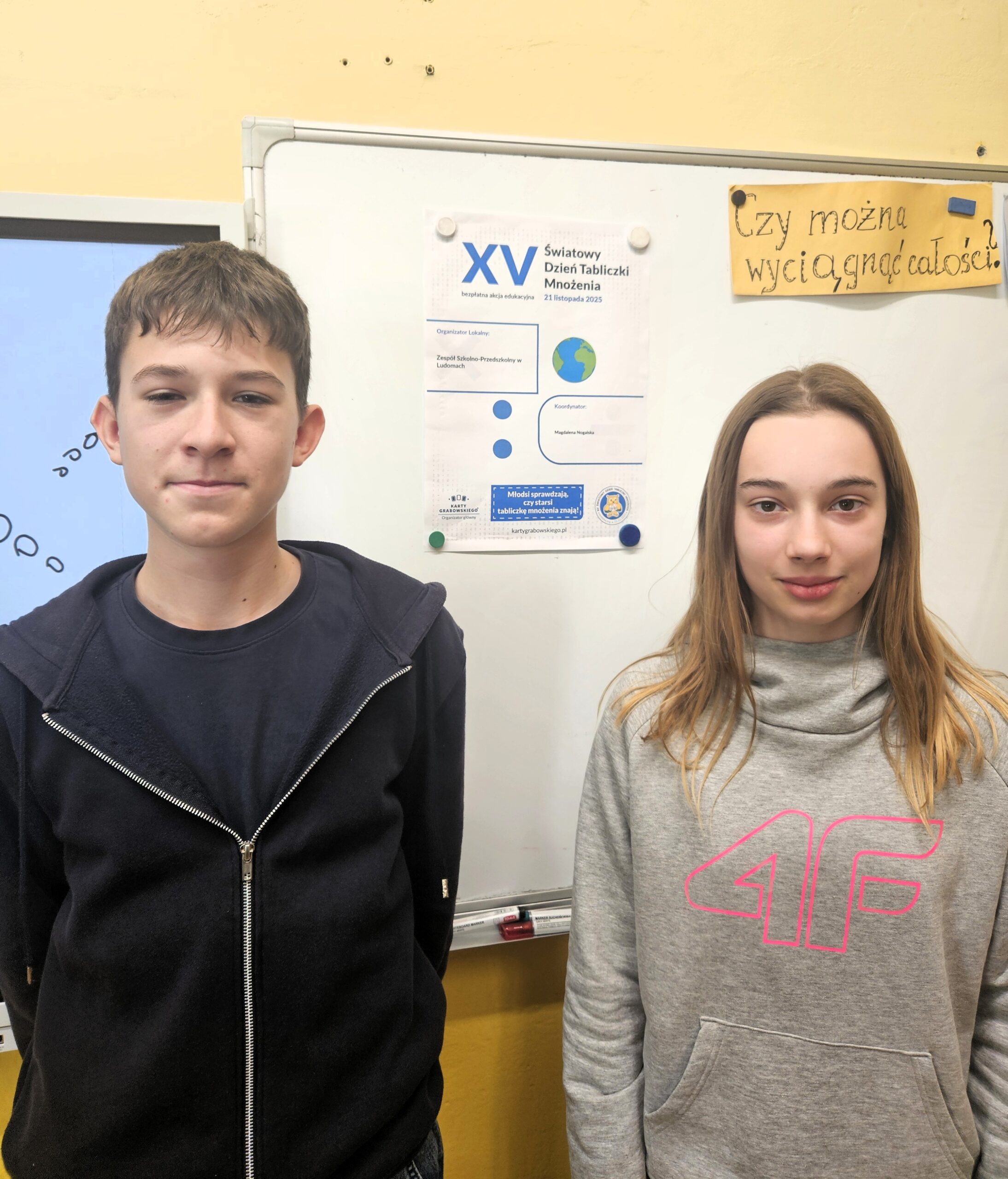 21 listopada 2025 r. w naszej szkole obchodzono Dzień Tabliczki Mnożenia. Z tej okazji odbył się konkurs matematyczny „Mistrz tabliczki mnożenia”. W ramach przygotowań do konkursu uczniowie przez dwa tygodnie przypominali sobie tabliczkę mnożenia, szyfrowali wiadomości do siebie, rozwiązywali rebusy, grali w wykreślanki.