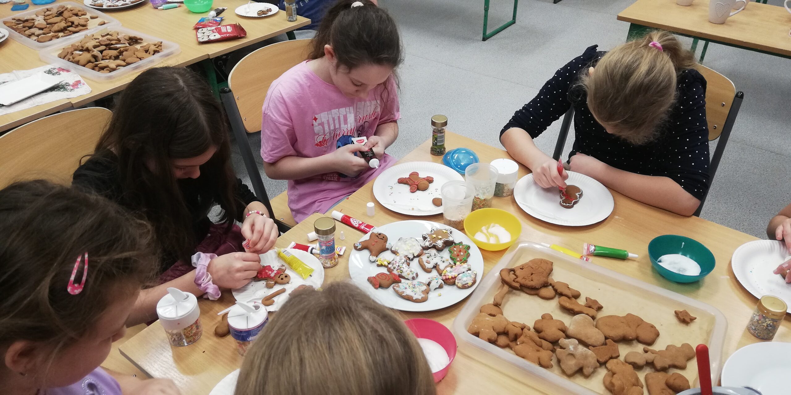 Tradycyjnie tuż przed świętami w naszej szkole rozchodzi się apetyczny, korzenny zapach pieczonych pierników. Trzecioklasiści dołożyli wszelkich starań, aby ich pierniki były nie tylko pachnące i smaczne, ale również pięknie zdobione. Wyszło wspaniale!