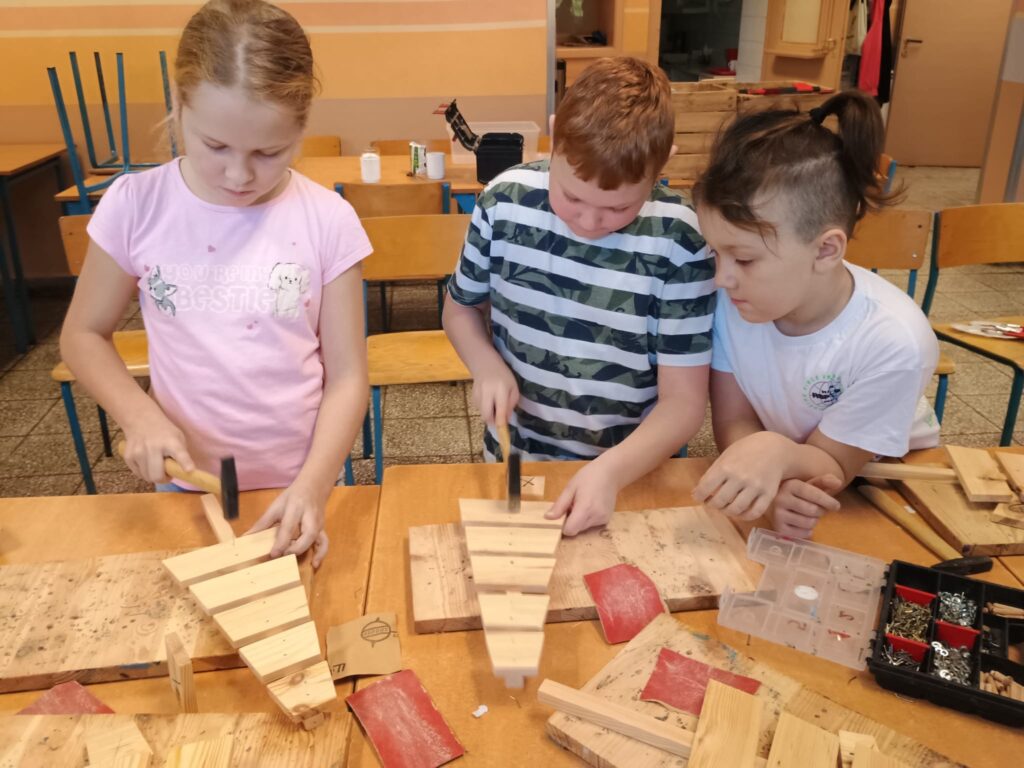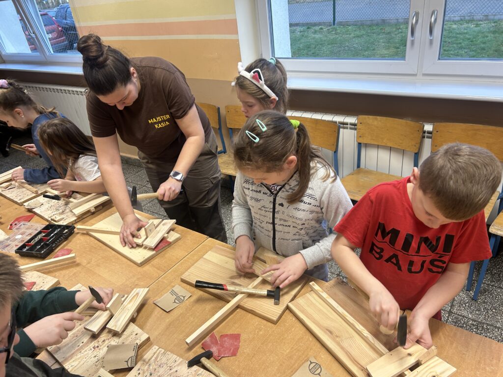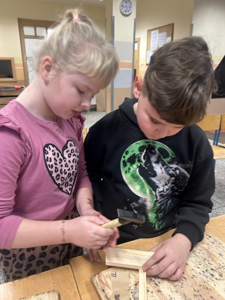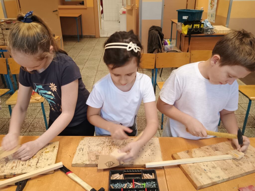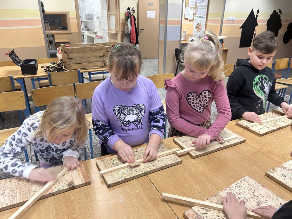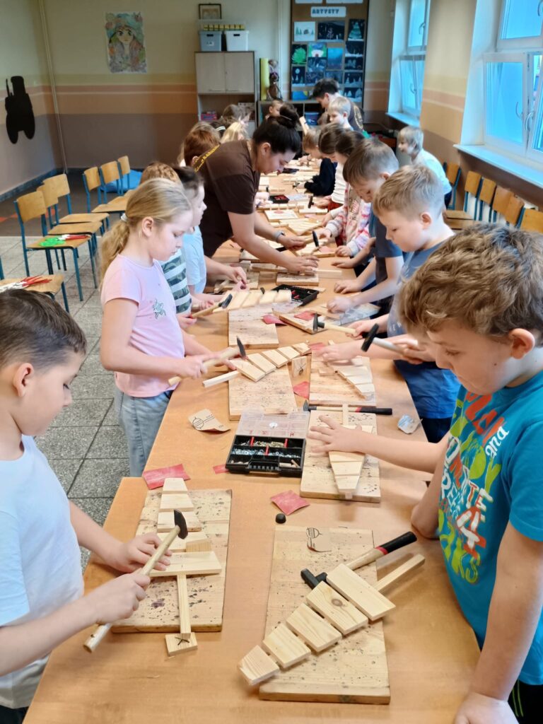 A w czwartek 11 grudnia 2025 roku uczniowie klas I-III uczestniczyli w świątecznych warsztatach stolarskich, gdzie pod okiem pań instruktorek stolarstwa, każdy wykonał drewnianą choinkę. Nie było to łatwe i lekkie zajęcie. Uczniowie mogli poczuć wysiłek i wkład pracy jaki trzeba włożyć, aby powstał zadowalający efekt. Wszyscy byli dumni z dzieł własnych rąk.