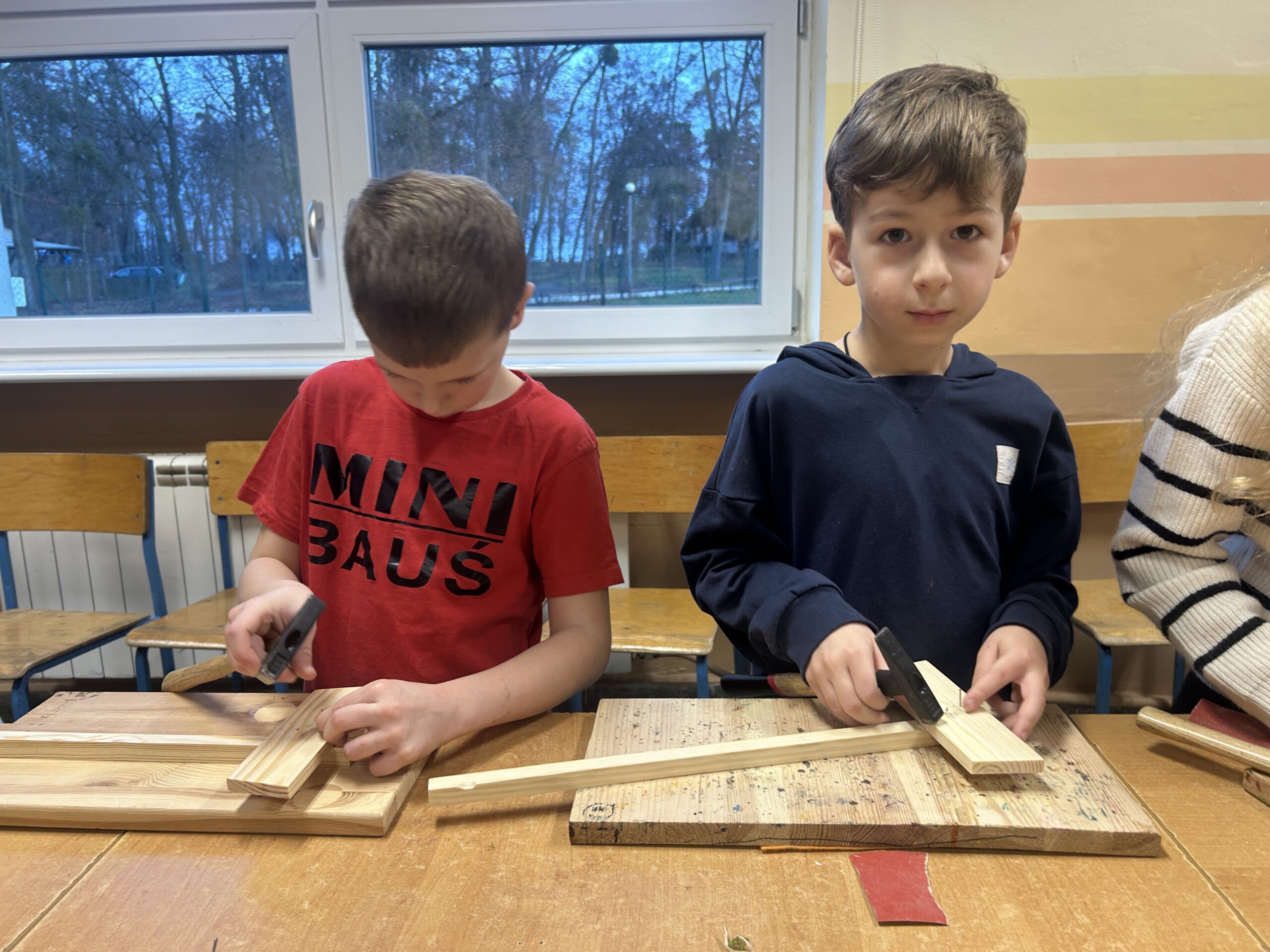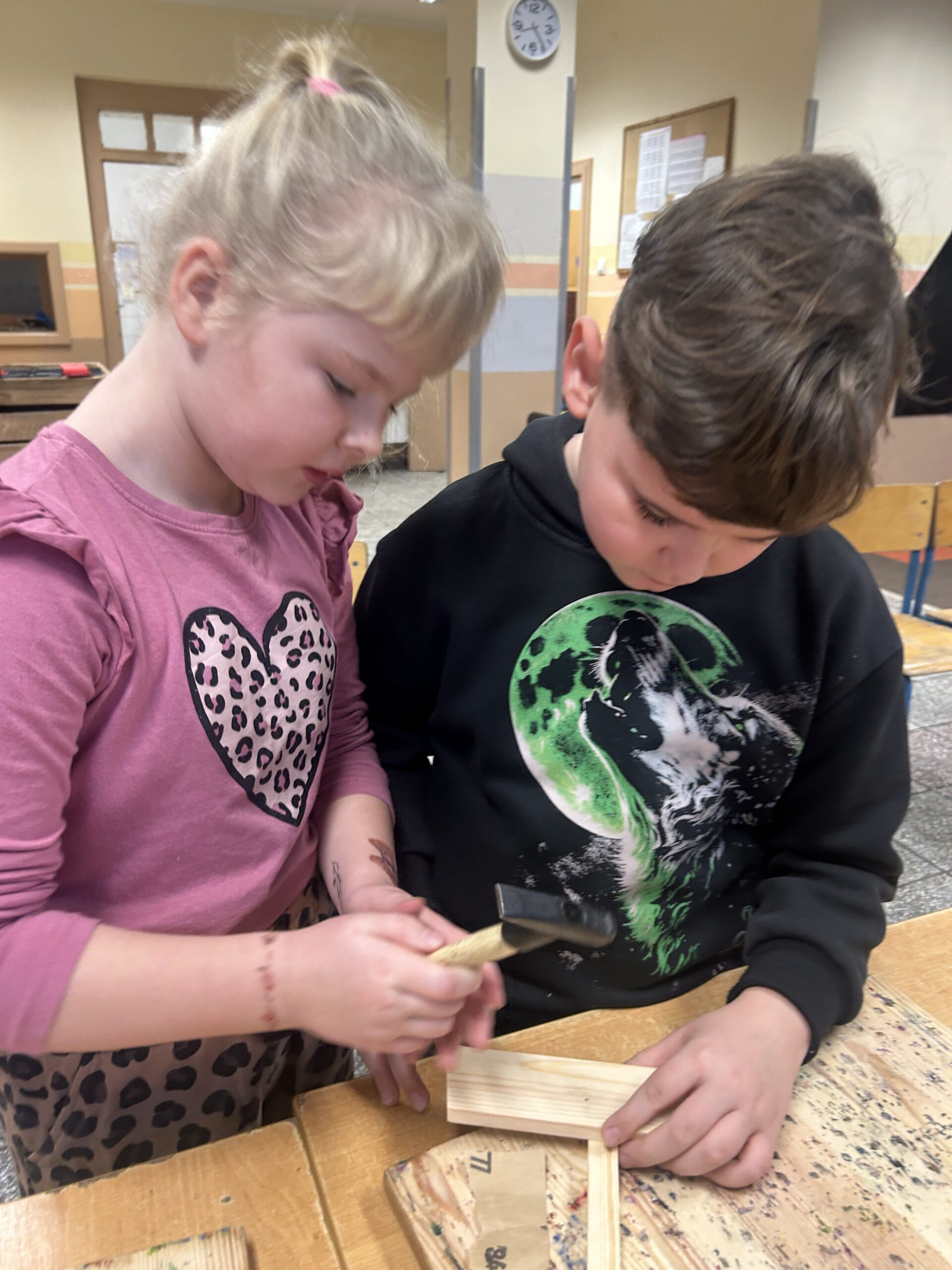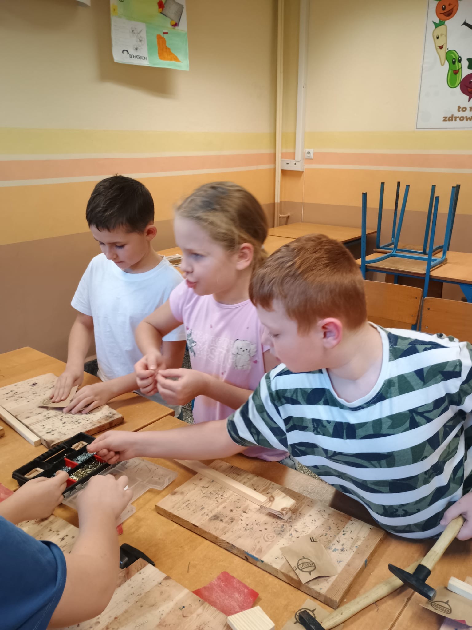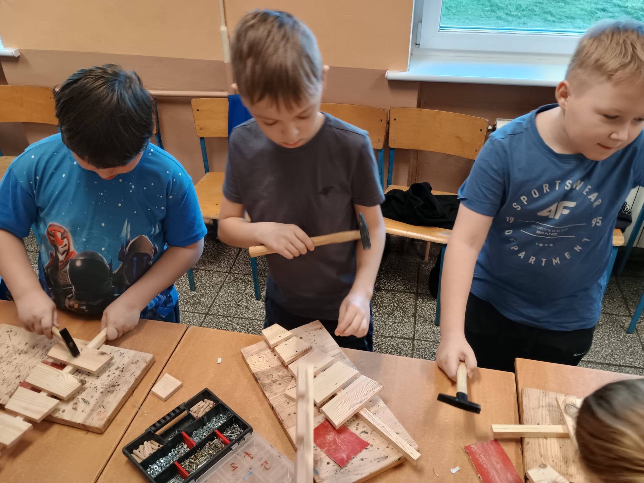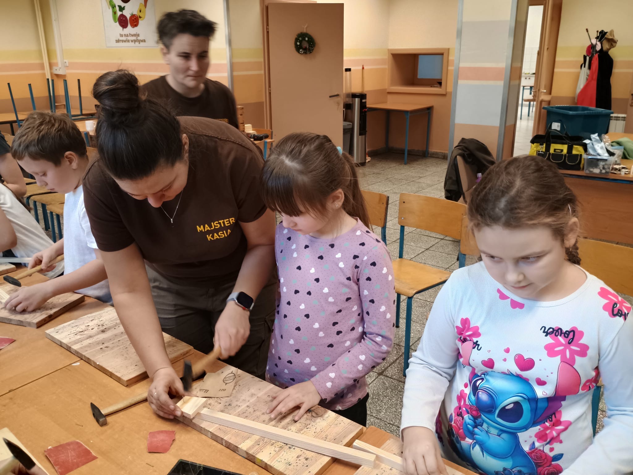 A w czwartek 11 grudnia 2025 roku uczniowie klas I-III uczestniczyli w świątecznych warsztatach stolarskich, gdzie pod okiem pań instruktorek stolarstwa, każdy wykonał drewnianą choinkę. Nie było to łatwe i lekkie zajęcie. Uczniowie mogli poczuć wysiłek i wkład pracy jaki trzeba włożyć, aby powstał zadowalający efekt. Wszyscy byli dumni z dzieł własnych rąk.