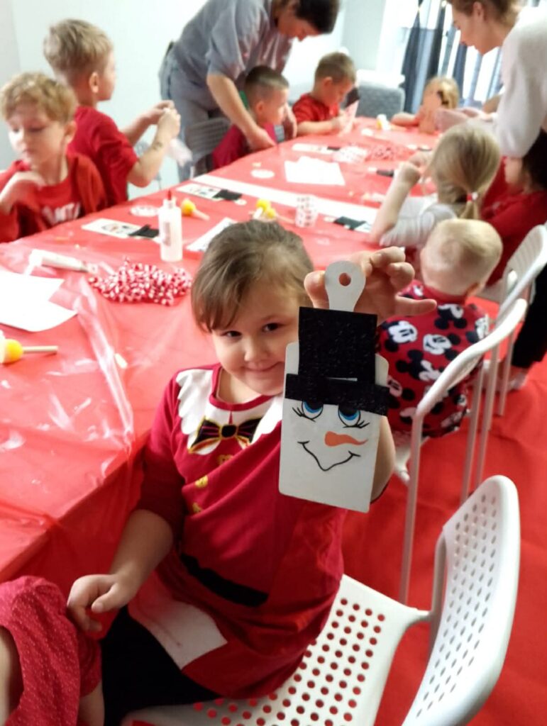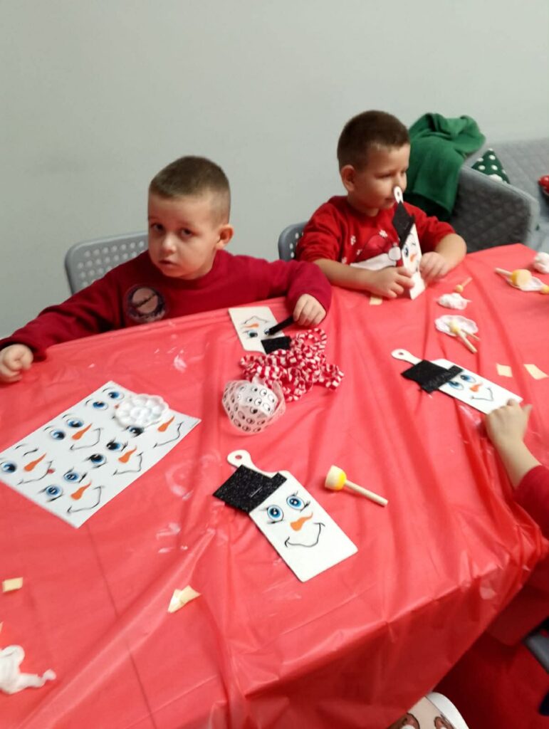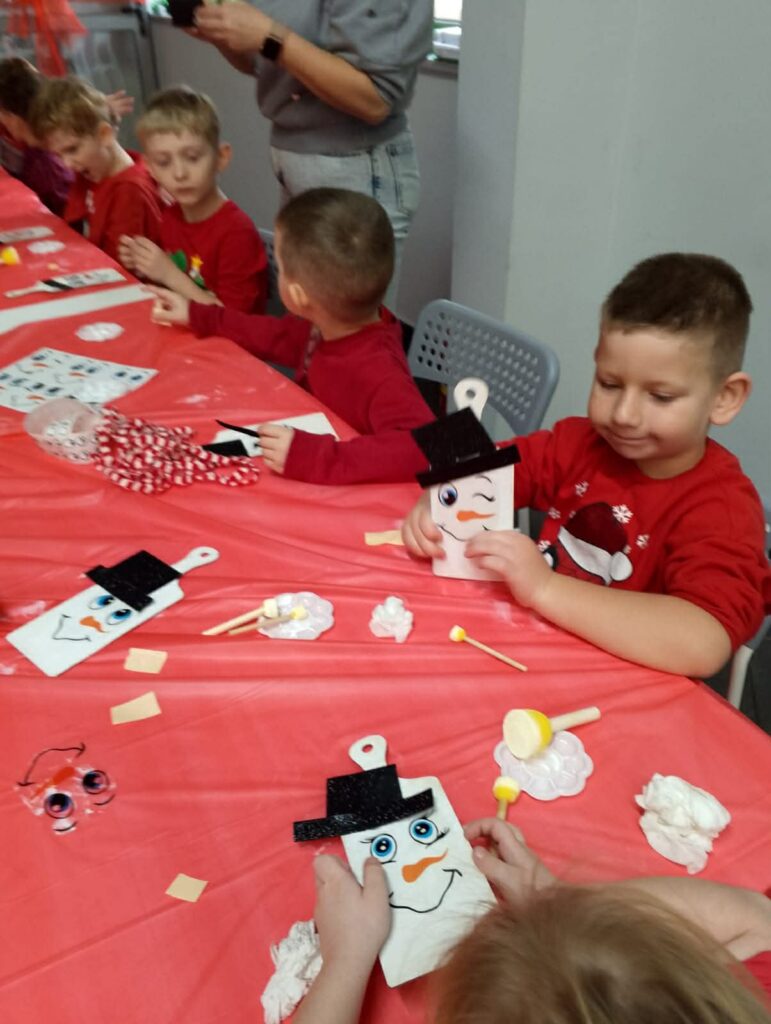 Najmłodsze dzieci z zapałem tworzyły urocze bałwanki – z waty, filcu, pomponów i brokatu. Każdy maluch mógł puścić wodze fantazji, dzięki czemu powstały naprawdę wyjątkowe śnieżne postacie.