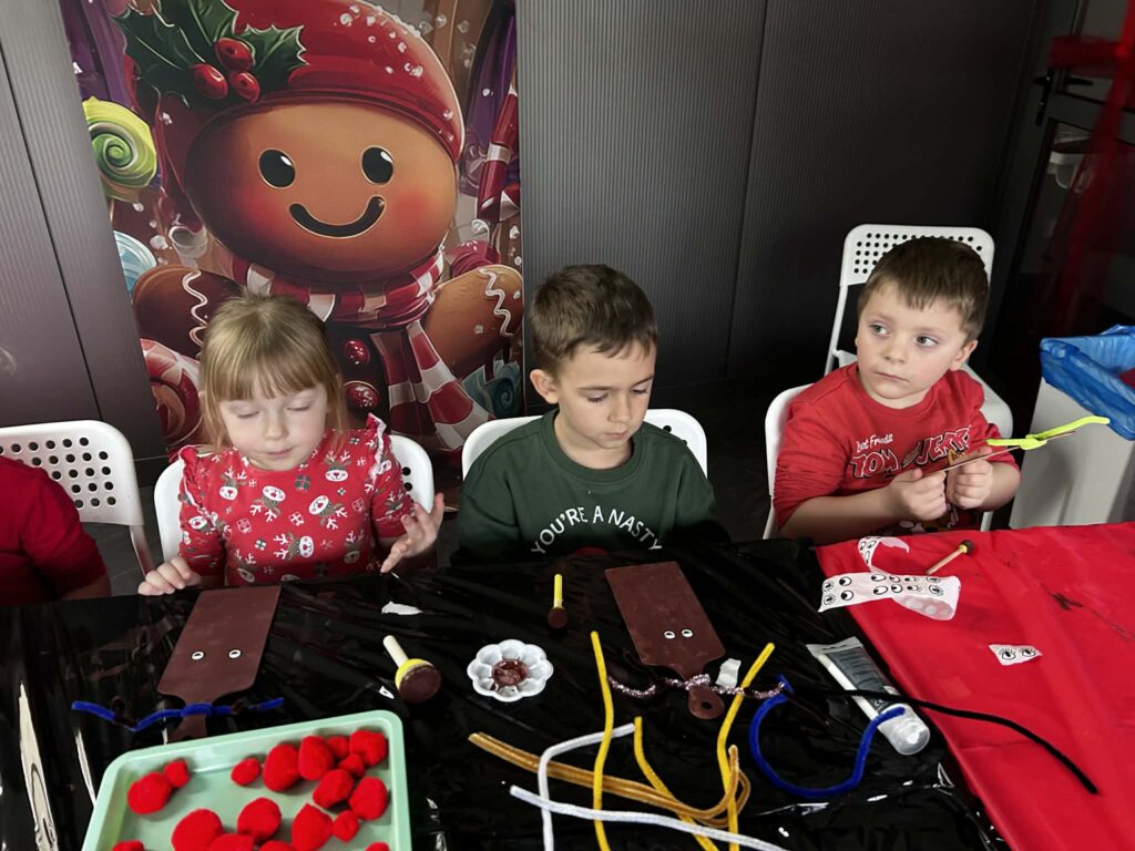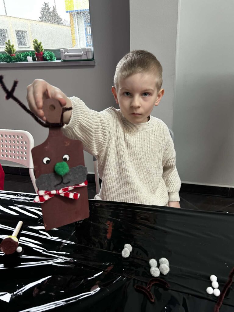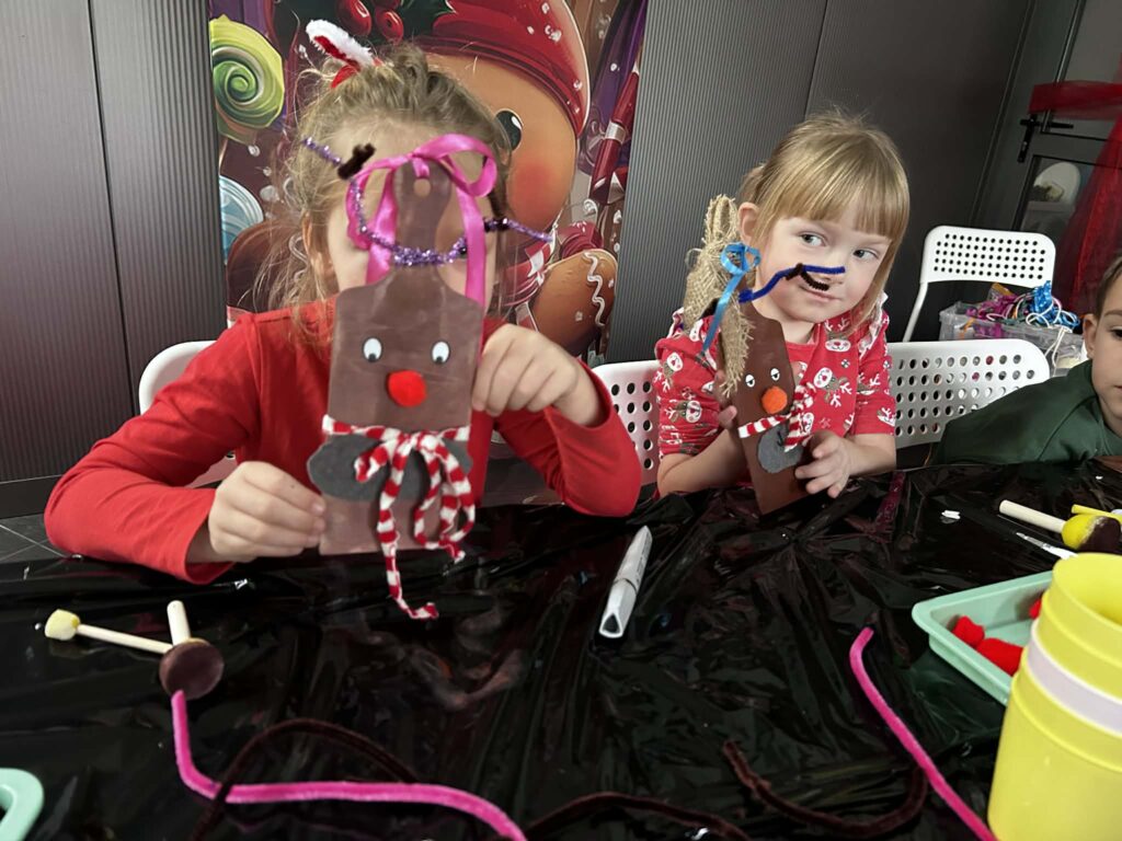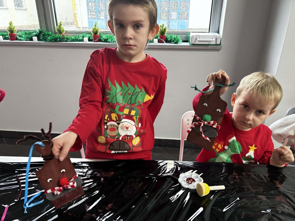 Starsze dzieci przygotowywały renifery, ozdabiając je według własnych pomysłów. Brokatowe rogi, czerwone nosy i kolorowe dodatki sprawiły, że każdy renifer był jedyny w swoim rodzaju.
