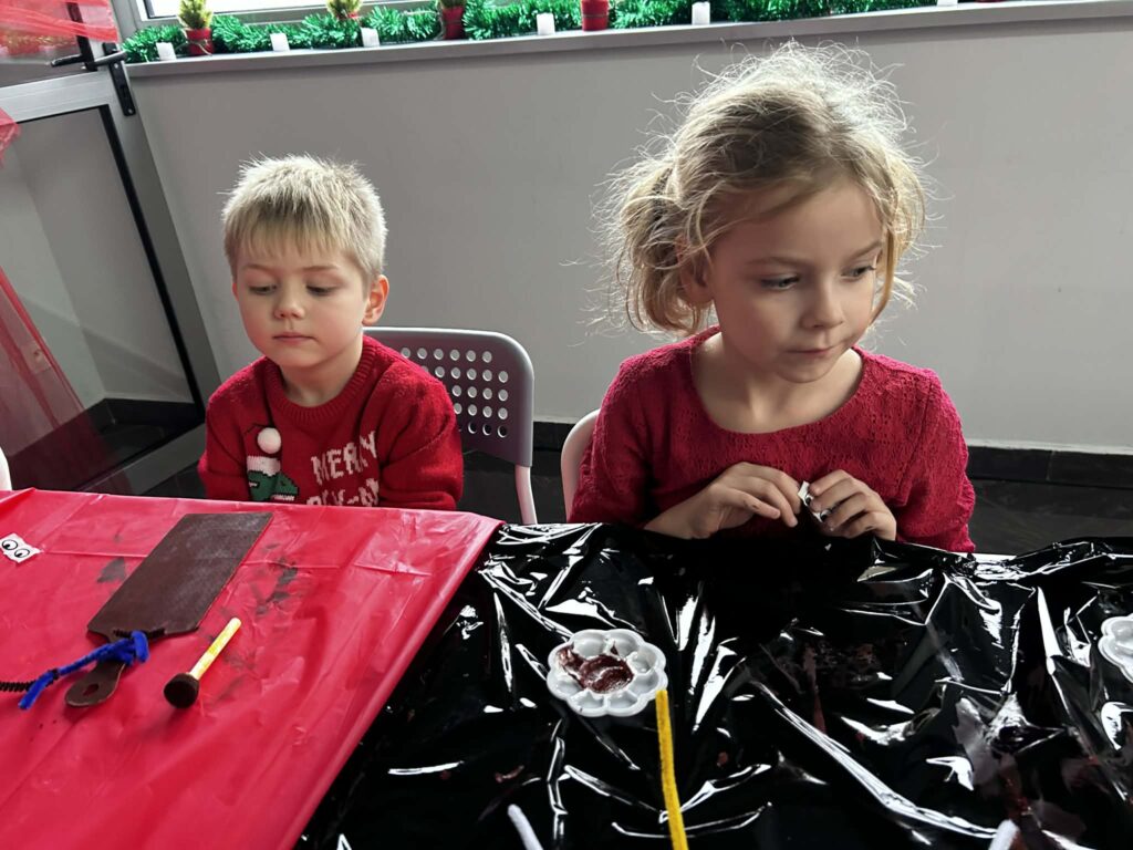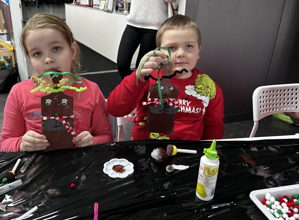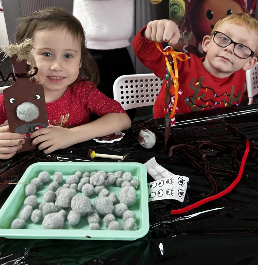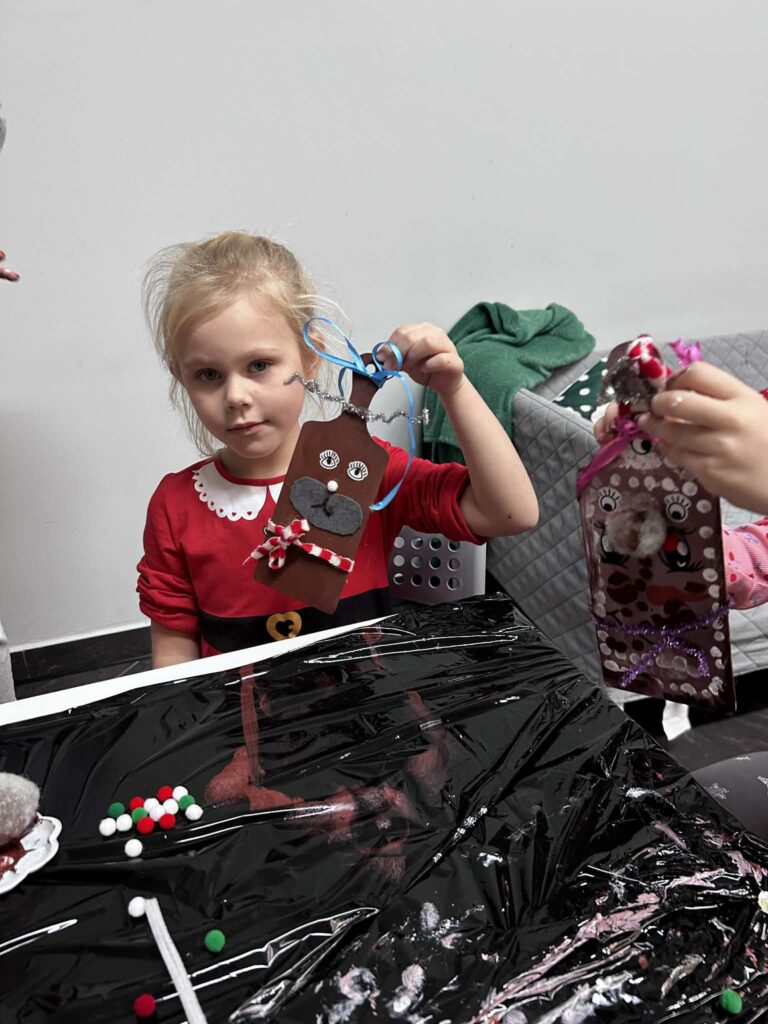 Starsze dzieci przygotowywały renifery, ozdabiając je według własnych pomysłów. Brokatowe rogi, czerwone nosy i kolorowe dodatki sprawiły, że każdy renifer był jedyny w swoim rodzaju.