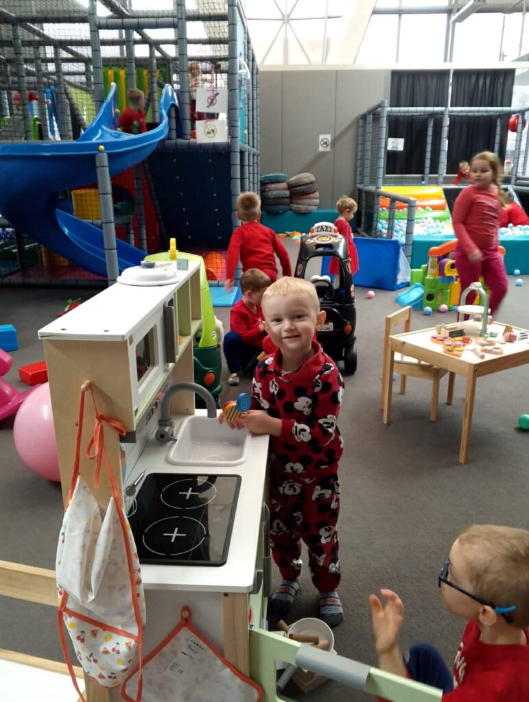 Po części plastycznej dzieci mogły wyszaleć się podczas zabaw na placu zabaw, korzystając z licznych atrakcji, wspinając się, skacząc i zjeżdżając do woli. Radości i śmiechu nie brakowało ani przez chwilę.