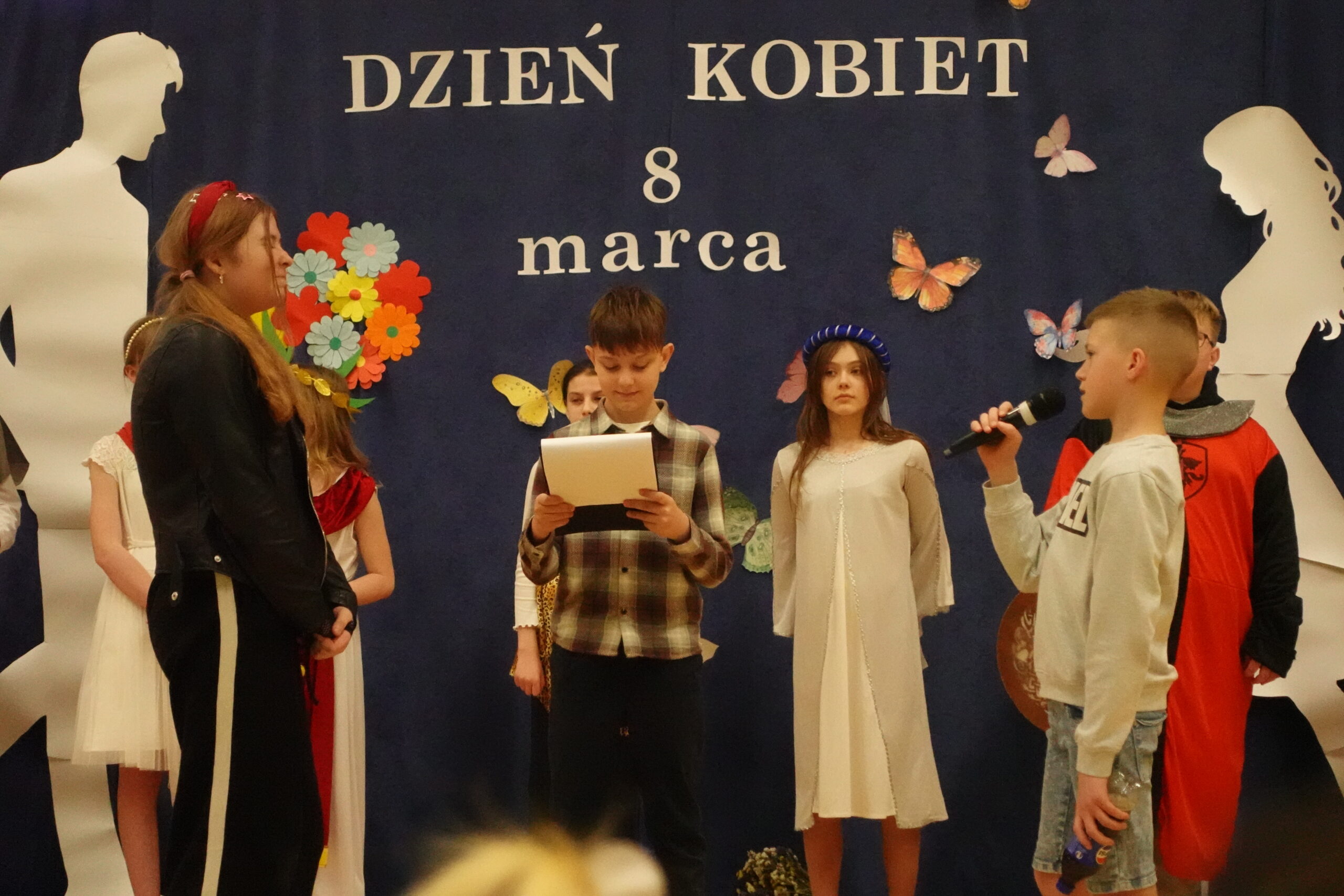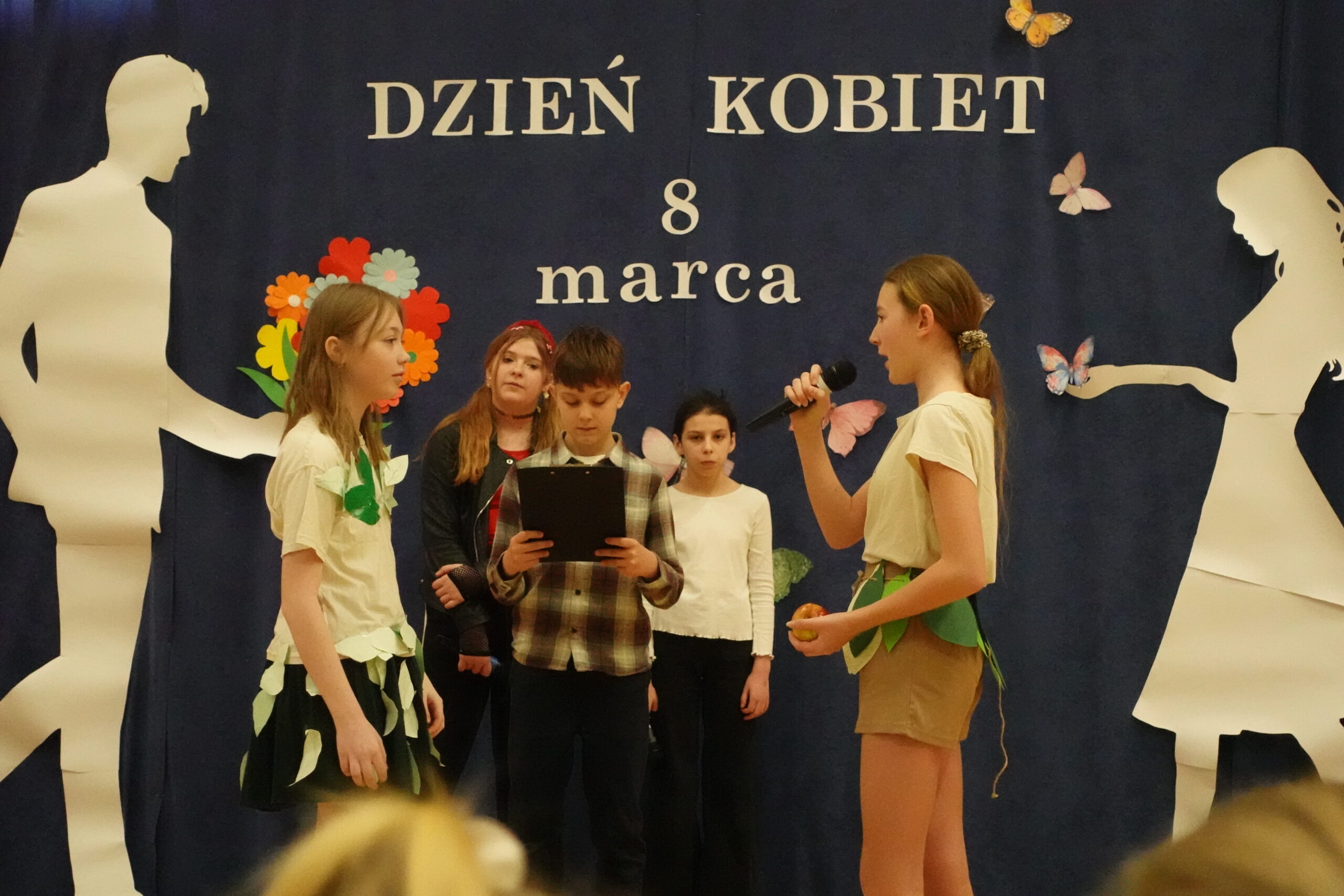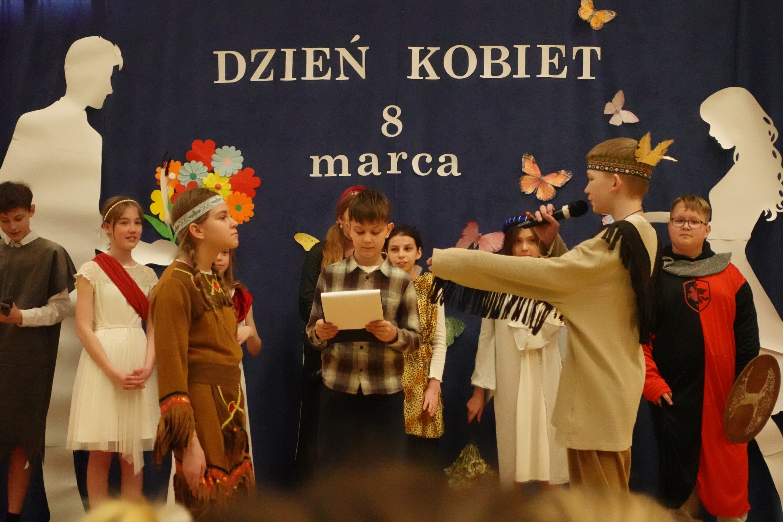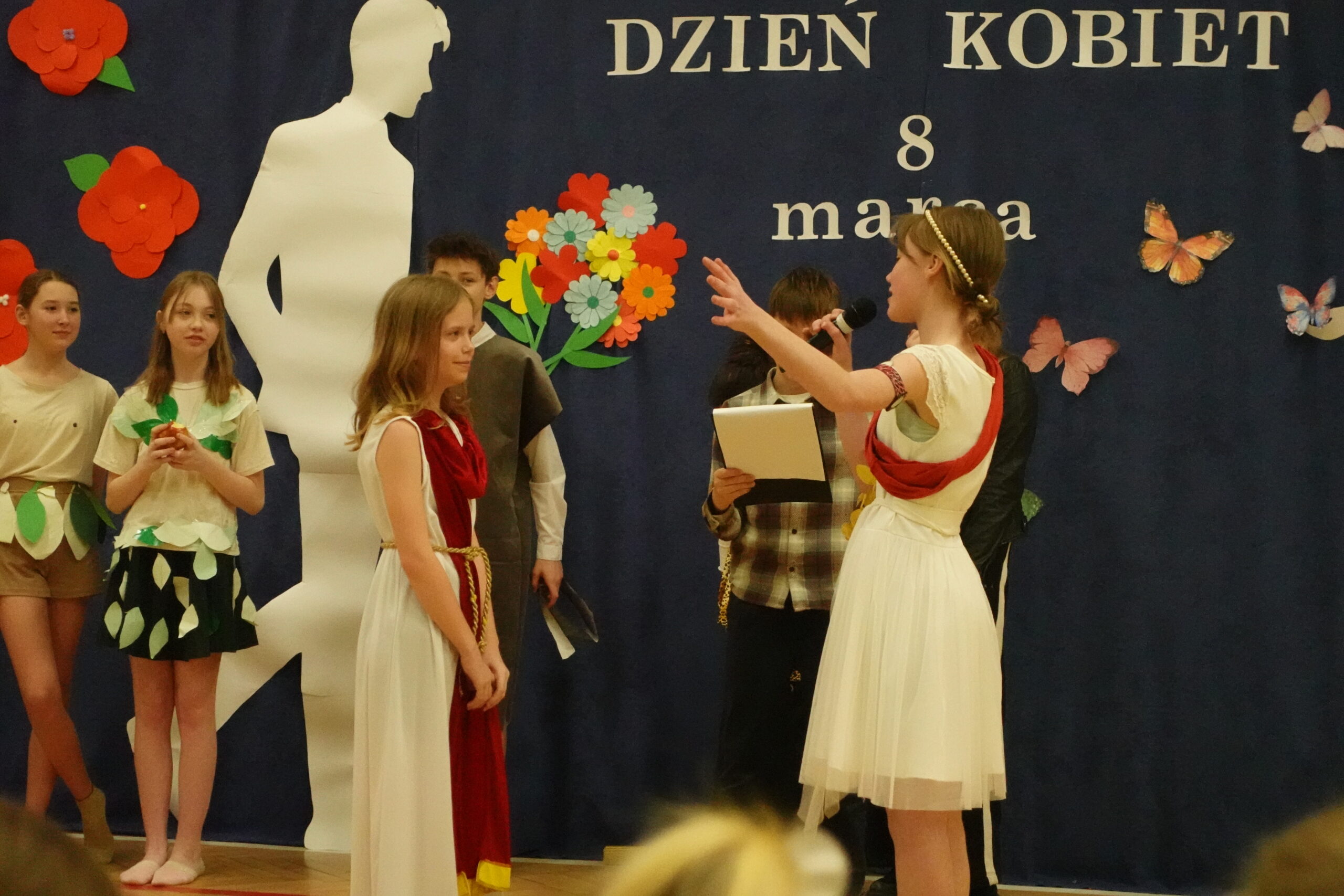 W naszej szkole odbył się wyjątkowy apel z okazji Dnia Kobiet przygotowany przez uczniów klasy 5. Było to barwne i pełne humoru przedstawienie, które przeniosło widzów w podróż przez różne epoki, ukazując obraz kobiety na przestrzeni dziejów.
