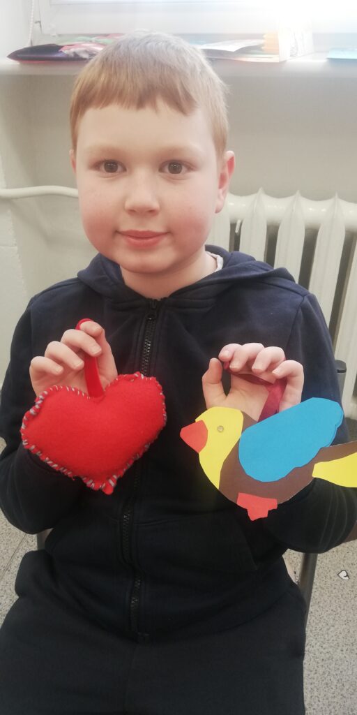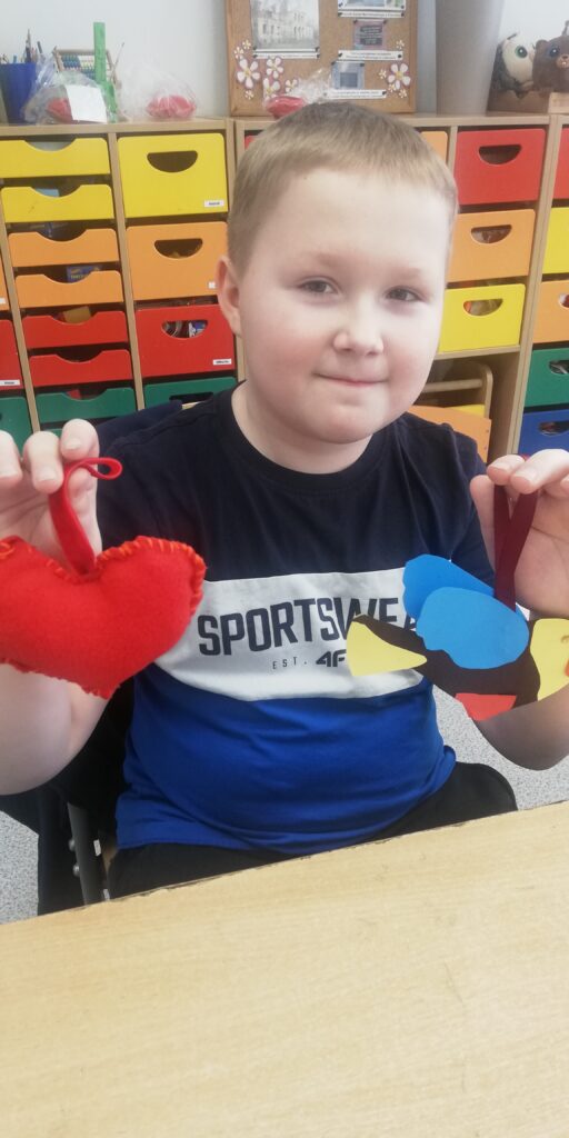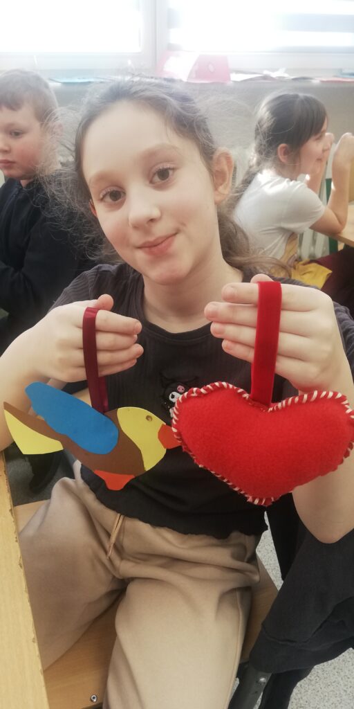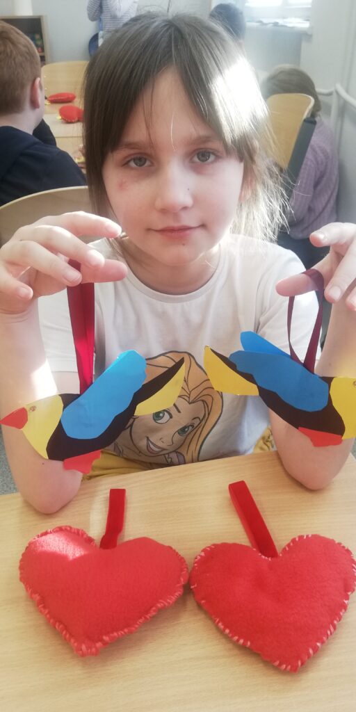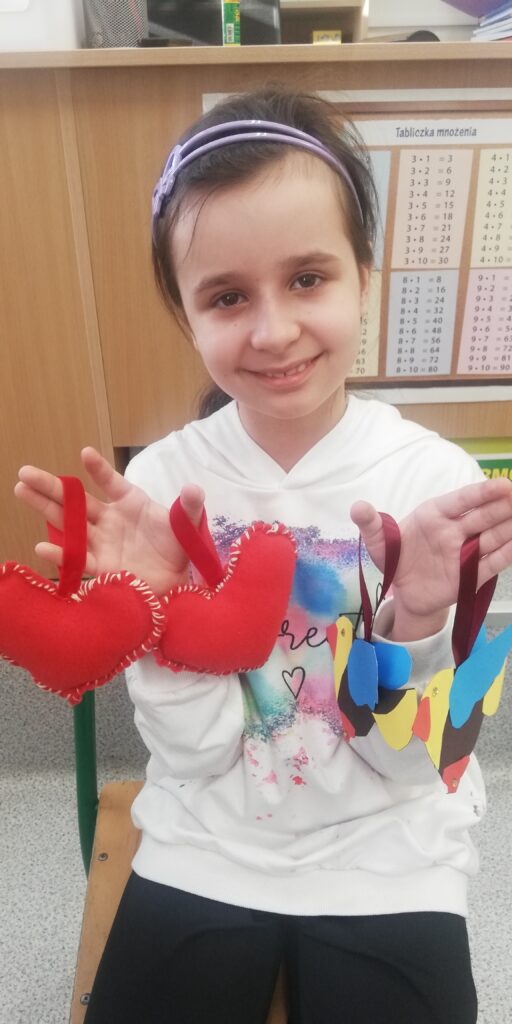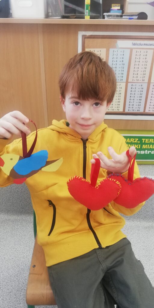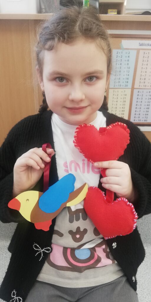 Bardzo Was kochamy i własnoręcznie wykonany upominek mamy – pluszowe serduszka ❤️ i papierowe ptaszki.