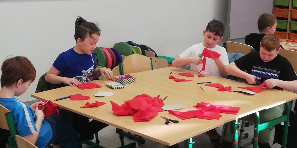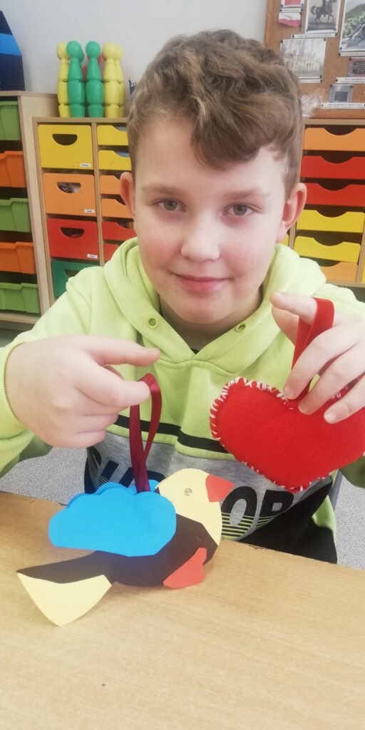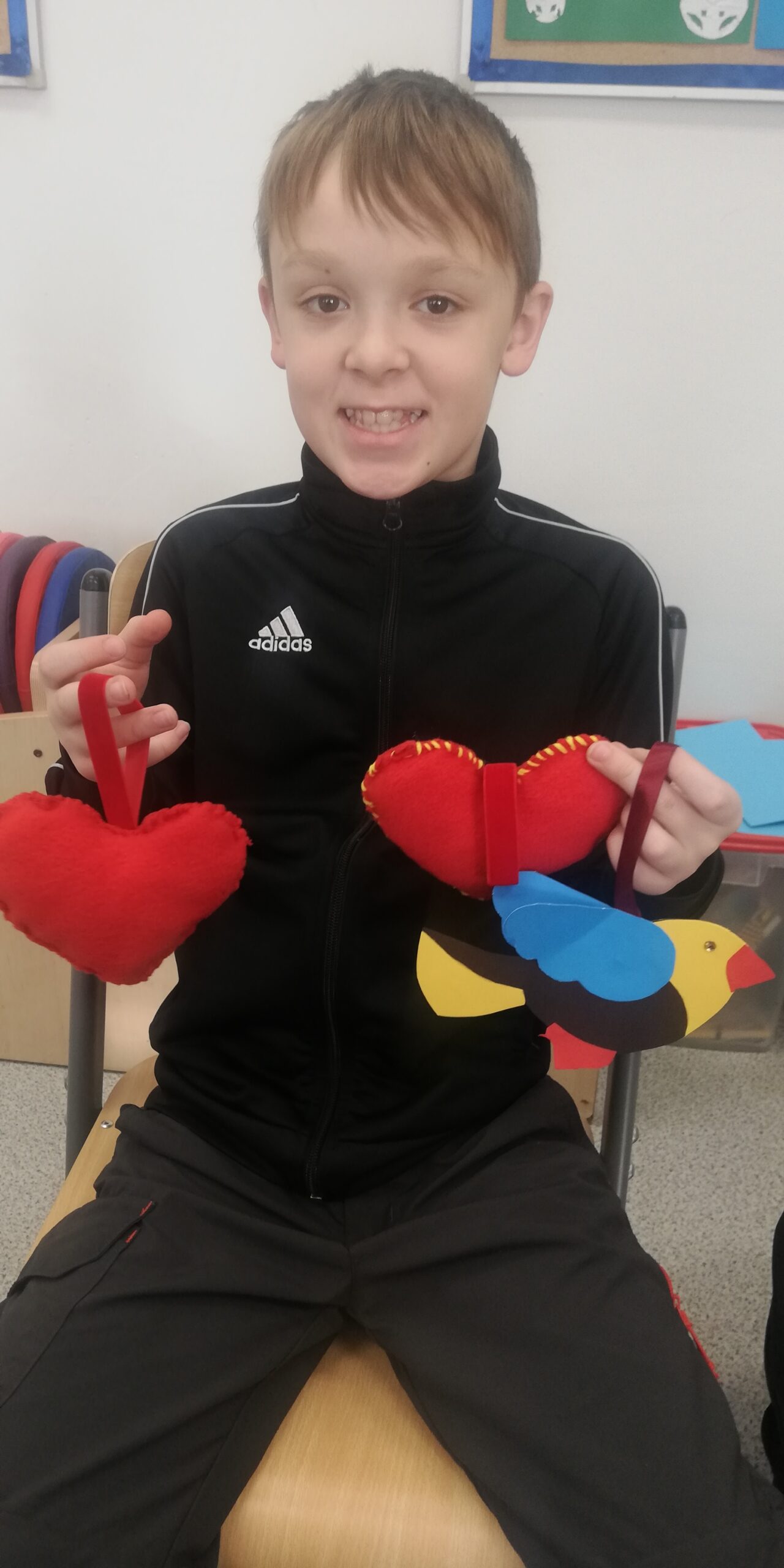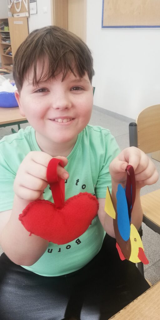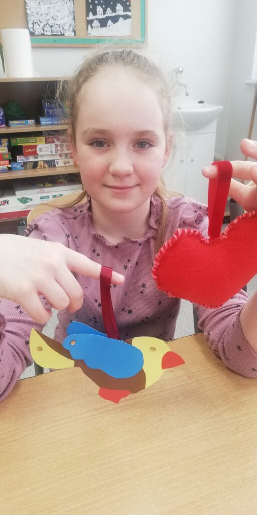 Bardzo Was kochamy i własnoręcznie wykonany upominek mamy – pluszowe serduszka ❤️ i papierowe ptaszki.