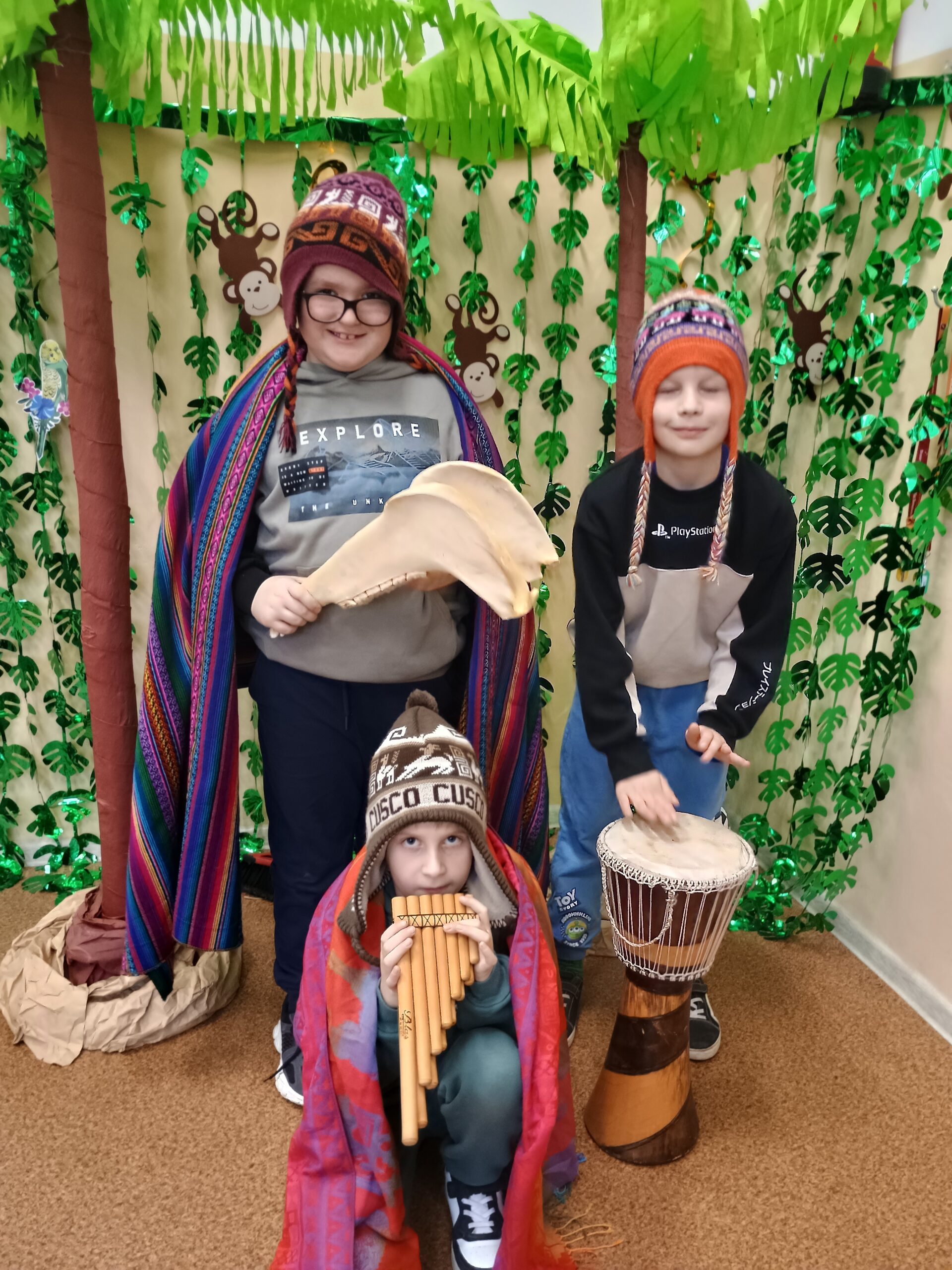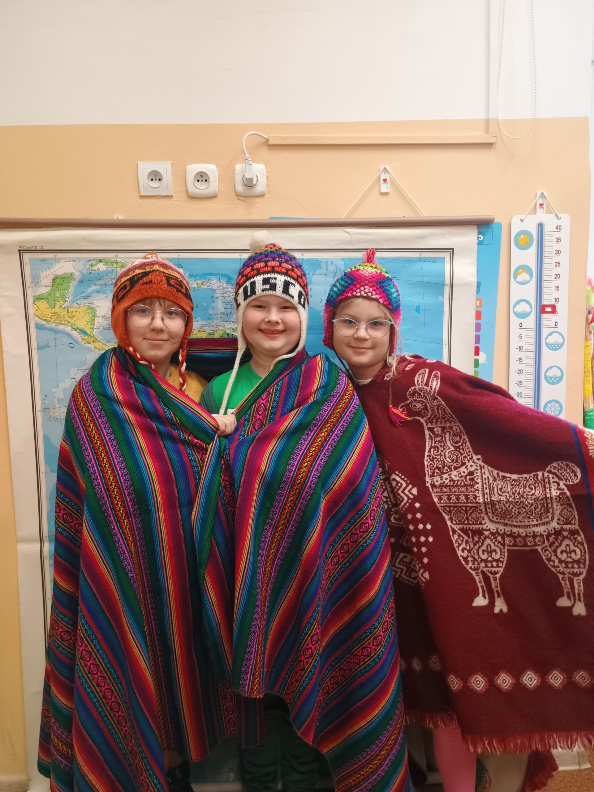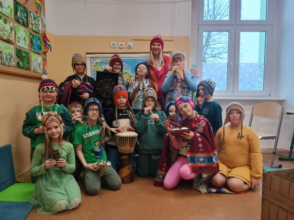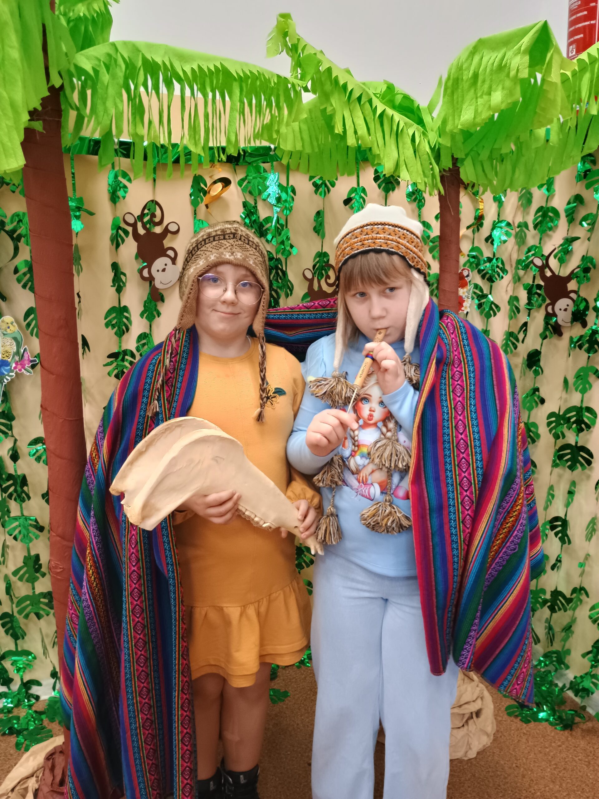 W marcu uczniowie klasy 2 realizowali projekt Klub 7 kontynentów. Tym razem przenieśliśmy się do Ameryki Południowej. Poznaliśmy niektóre państwa, ich stolice i flagi, zwierzęta i roślinność z różnych regionów, najwyższe góry, rzekę, miasto i wodospad. Oglądaliśmy krajobrazy z pięciu stref klimatycznych jakie tam występują. Uczyliśmy się pracować z mapą. Poznaliśmy też historię Inków i oglądaliśmy prezentację o zabytkach i osobliwościach Ameryki Południowej. Udało mi się również zaprosić panią Magdalenę Rossinelli, która mieszkała m.in. w Peru, aby opowiedziała nam o życiu na tym niezwykłym kontynencie. W kolejnym tygodniu podczas wycieczki do Poznania obejrzeliśmy okazy zwierząt pochodzących z Ameryki Południowej. Na zakończenie projektu dostaliśmy breloczki- kapibary.