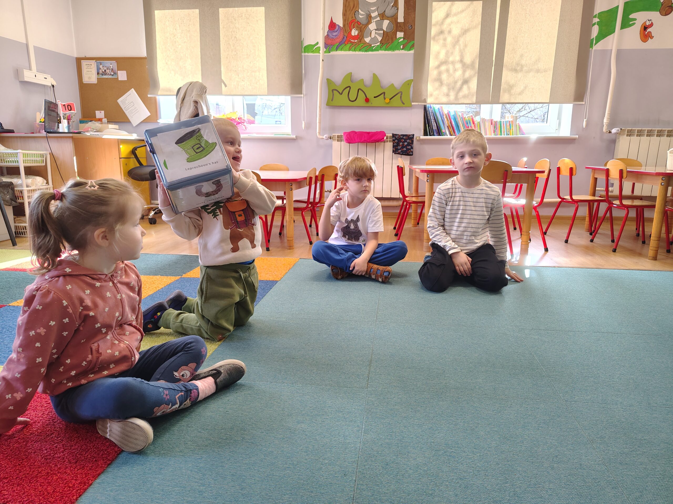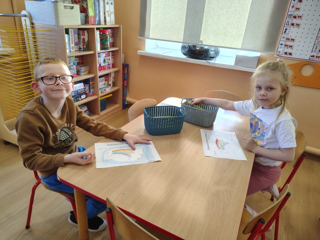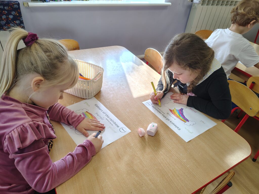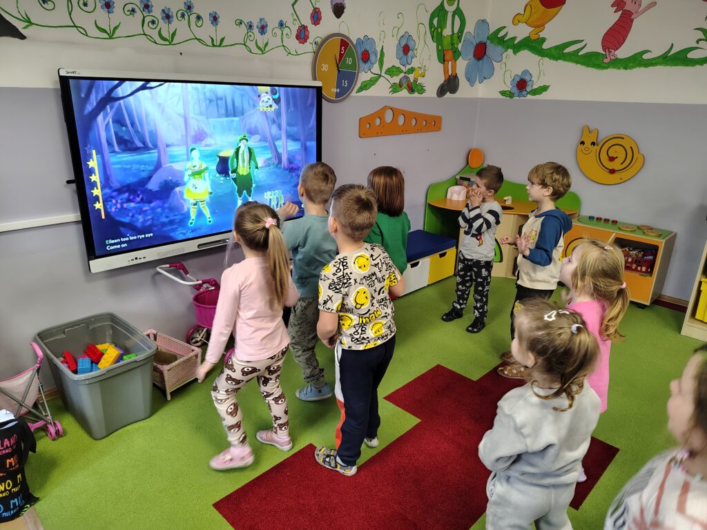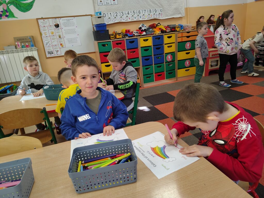 W dniach 16 i 17 marca 2026 r. na zajęciach języka angielskiego w przedszkolu dzieci poznawały słownictwo i zwyczaje związaną z Dniem św. Patryka. Przedszkolaki chętnie posłuchały legendy o patronie Irlandii. Nauczyły się nowych słówek z nią związanych i powtórzyły nazwy kolorów z tęczą. Na koniec zatańczyły do angielskiej piosenki.