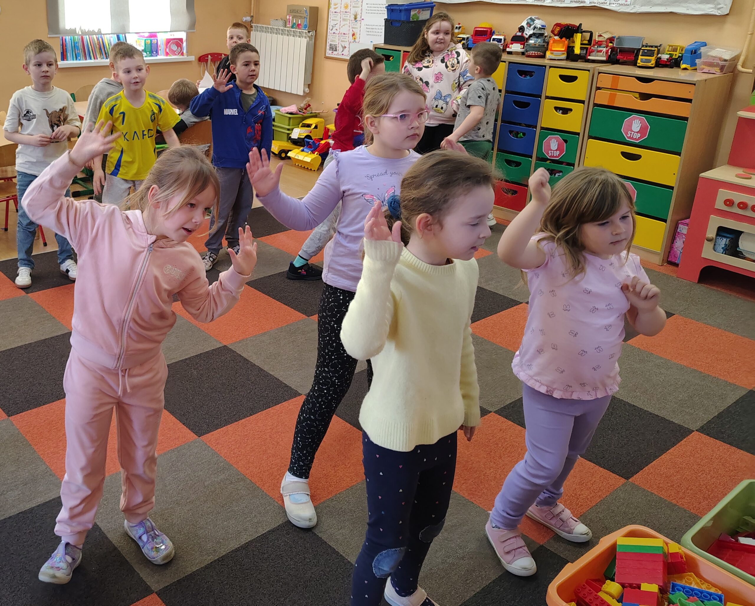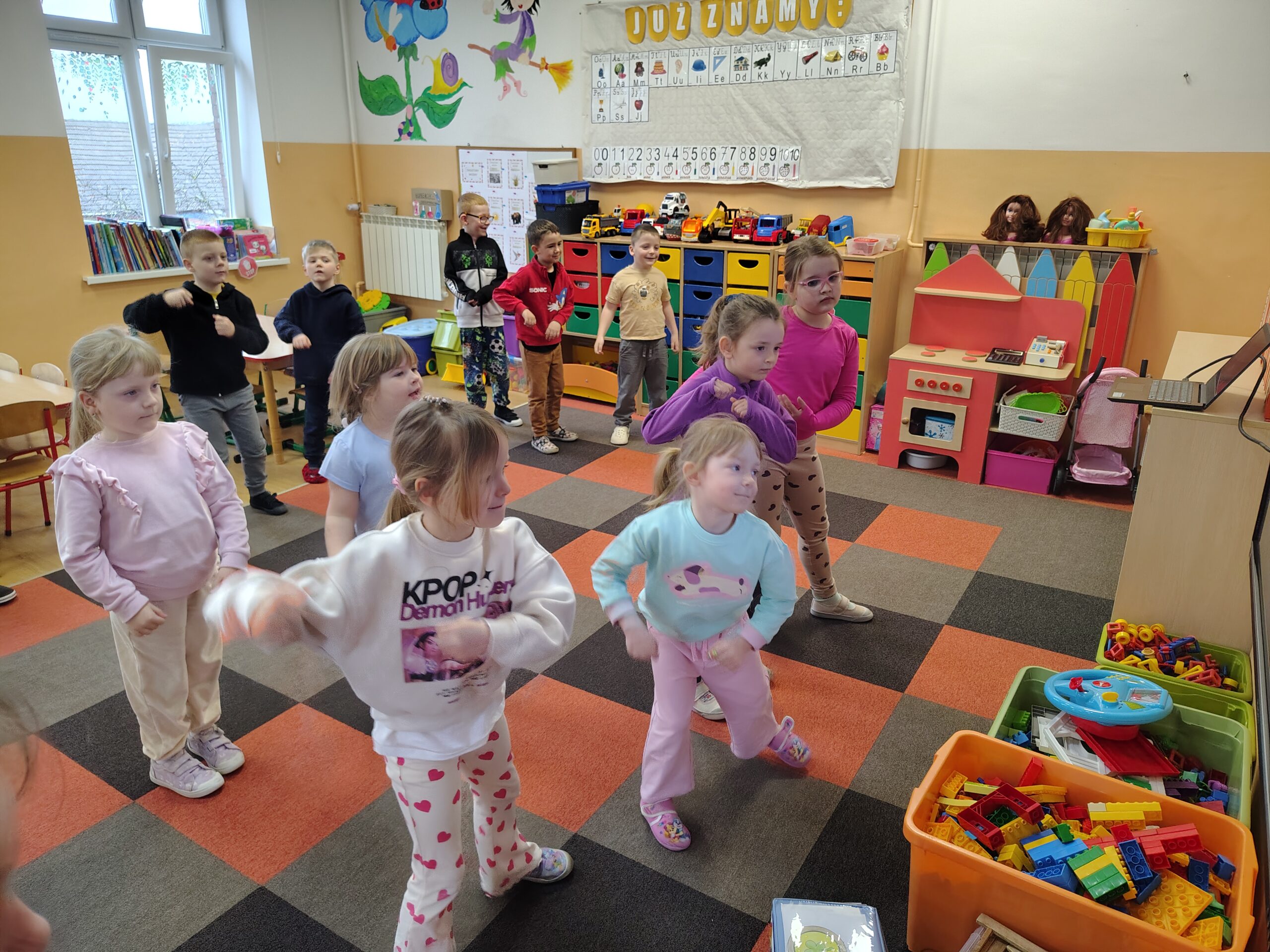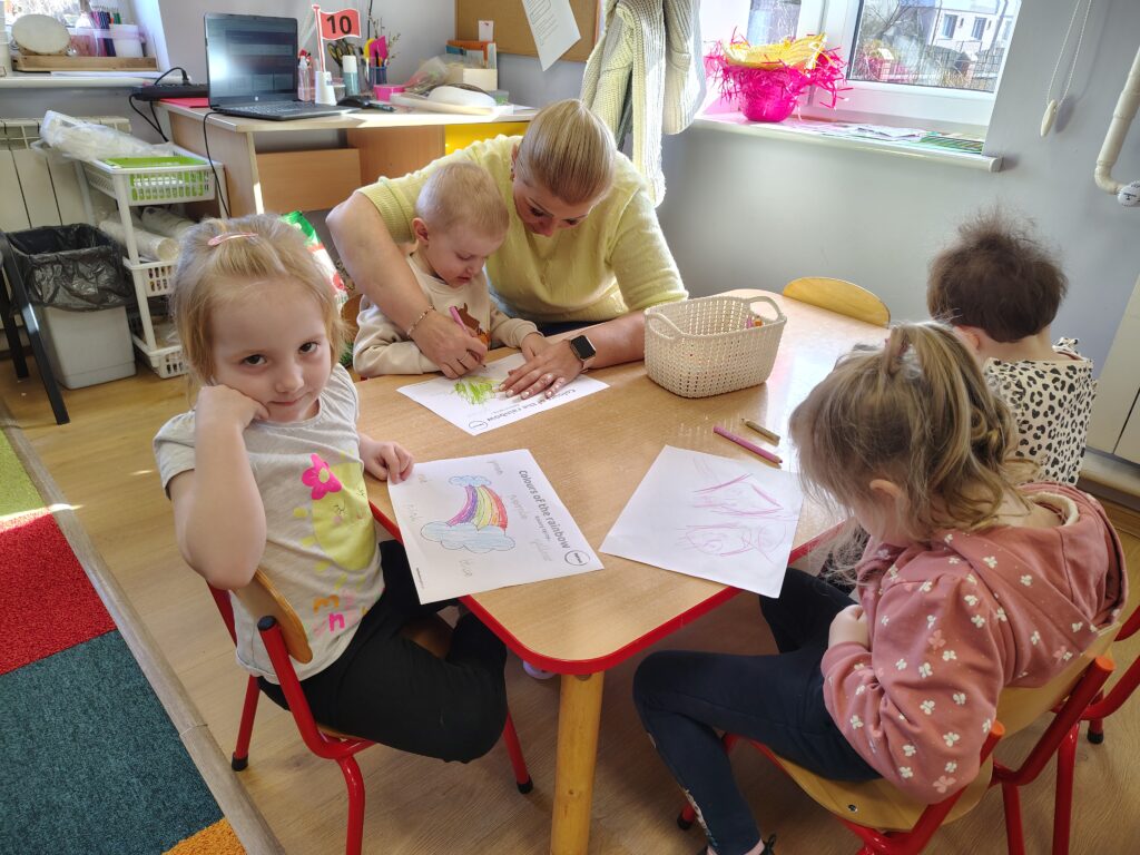 W dniach 16 i 17 marca 2026 r. na zajęciach języka angielskiego w przedszkolu dzieci poznawały słownictwo i zwyczaje związaną z Dniem św. Patryka. Przedszkolaki chętnie posłuchały legendy o patronie Irlandii. Nauczyły się nowych słówek z nią związanych i powtórzyły nazwy kolorów z tęczą. Na koniec zatańczyły do angielskiej piosenki.