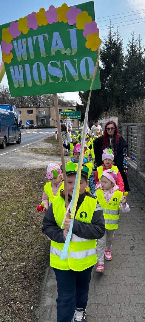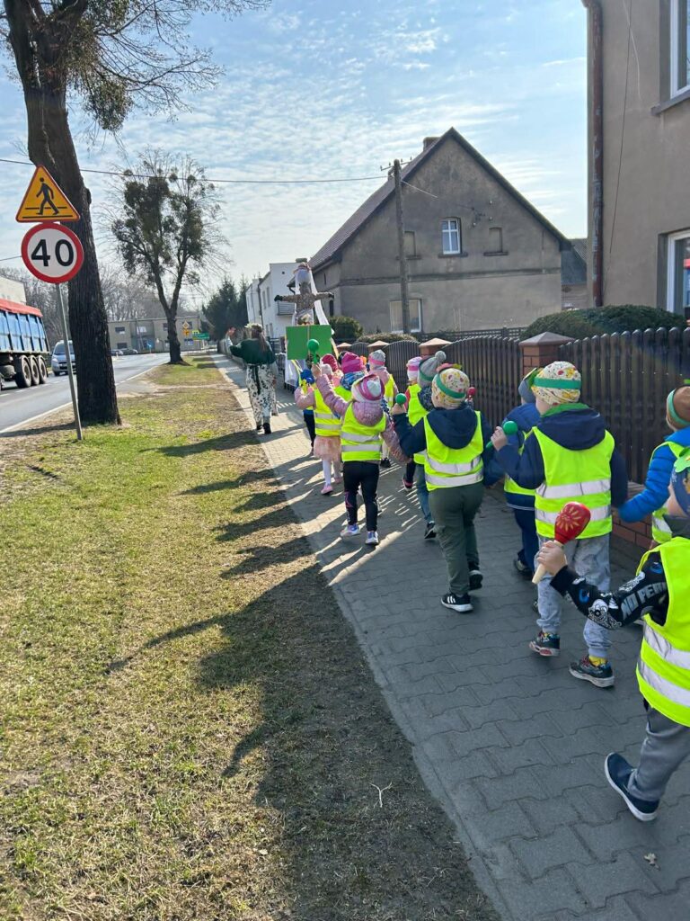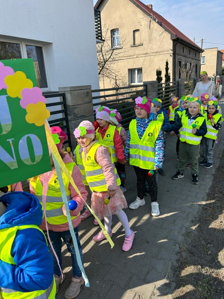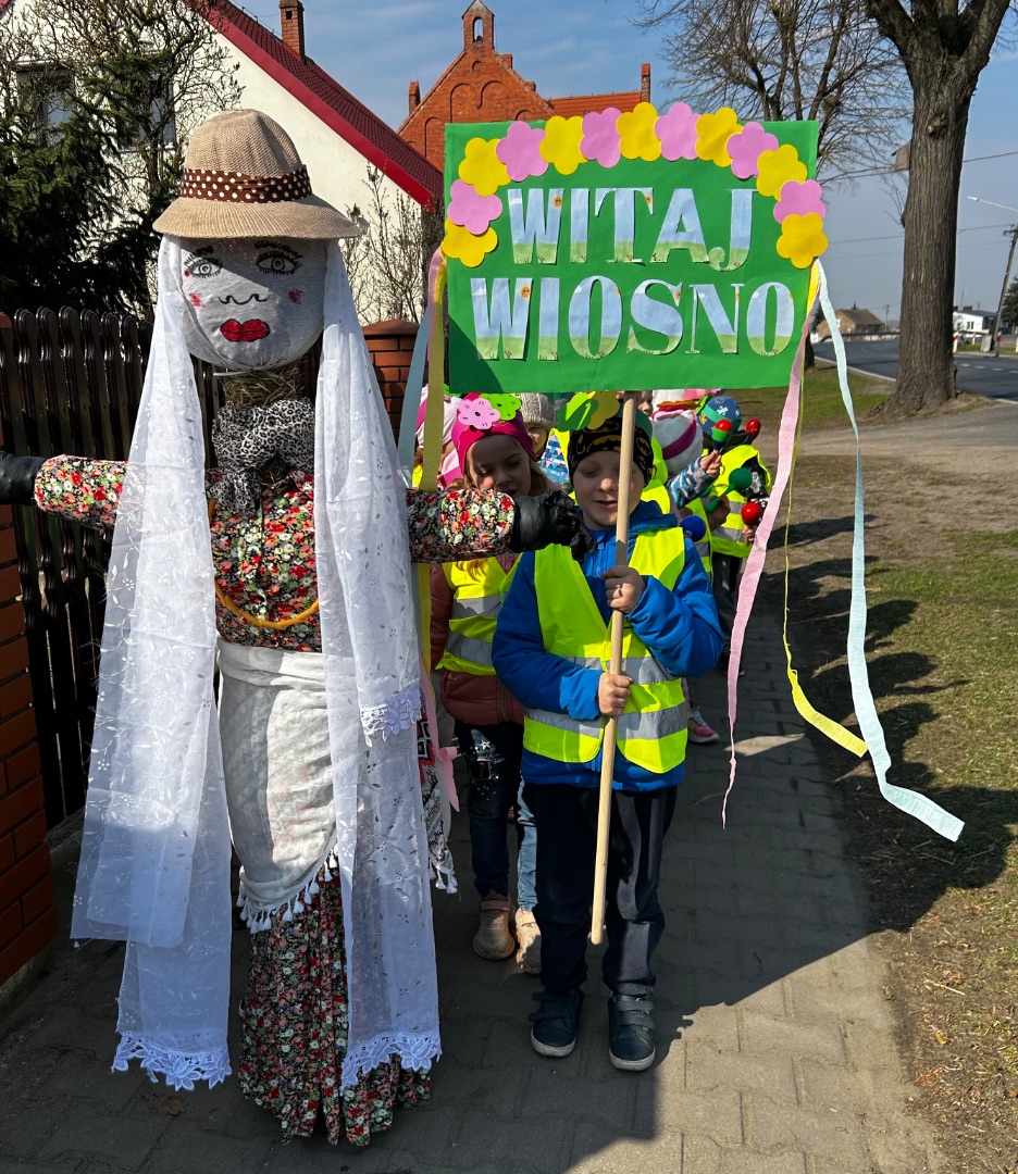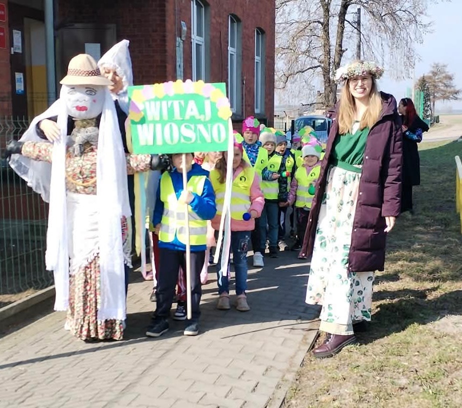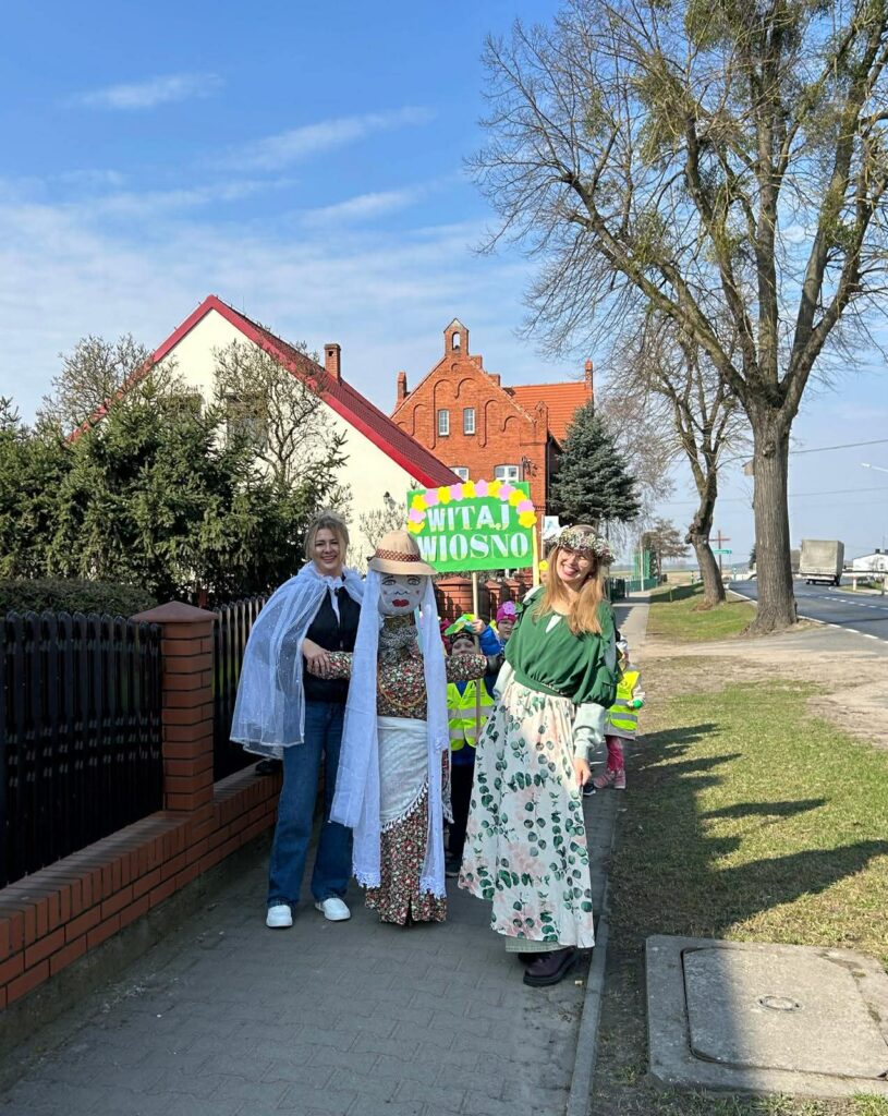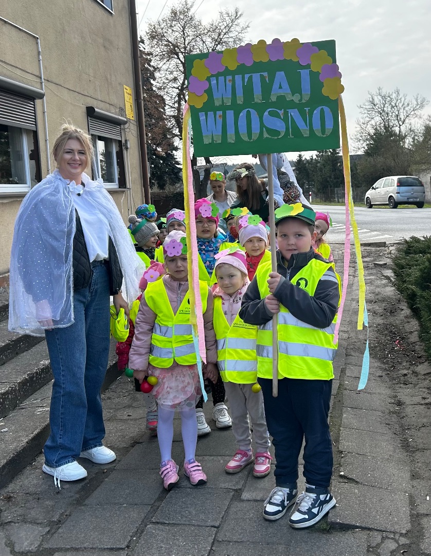 Kulminacyjnym punktem dnia było uroczyste powitanie Pani Wiosny. Dzieci wzięły udział w wiosennym korowodzie, niosąc kolorowe ozdoby i śpiewając radosne piosenki. Wspólnie pożegnaliśmy zimę i symbolicznie przywitaliśmy nową porę roku.