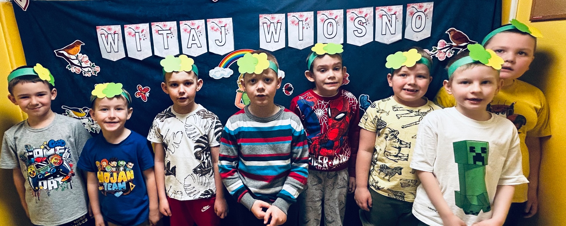 Dzieci przyszły ubrane w barwne stroje – dominowały zielenie, żółcie oraz kwiatowe motywy. Już od rana w salach panowała radosna atmosfera, a przedszkolaki chętnie opowiadały o oznakach wiosny, które można zauważyć w przyrodzie.