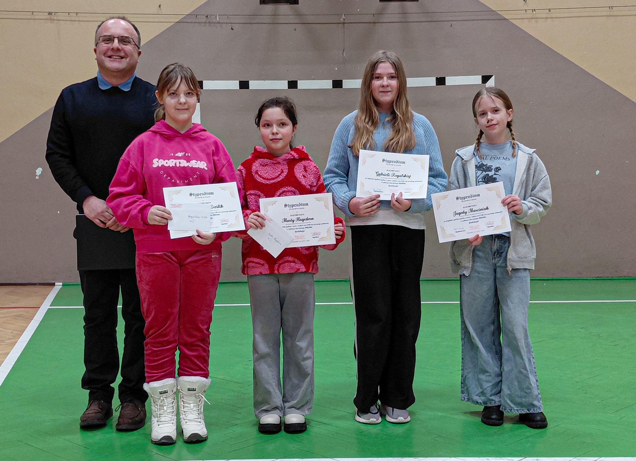 Z ogromną przyjemnością dyrektor Szkoły Podstawowej im. Karola Marcinkowskiego w dniu 10 lutego 2026 wręczył uczennicom szkoły stypendia szkolne za bardzo wysokie wyniki w nauce za I półrocze roku szkolnego 2025/2026. Uczennice, które uzyskały wyniki w nauce kwalifikujące do otrzymania stypendium to: