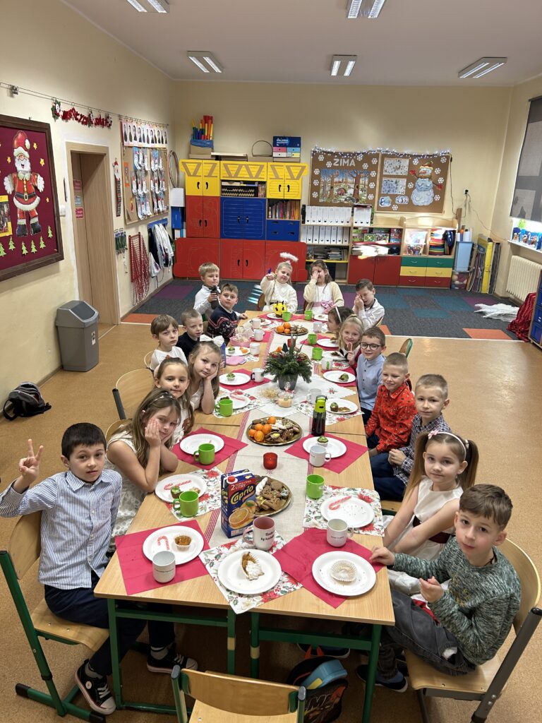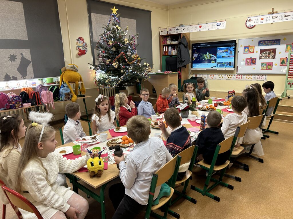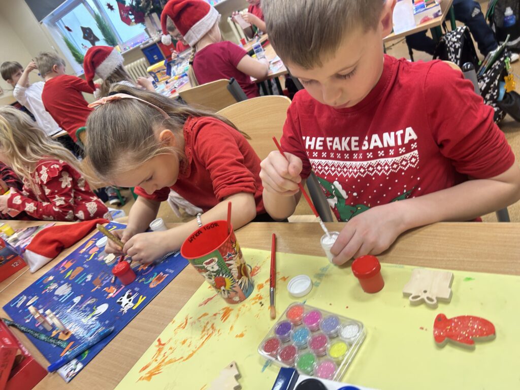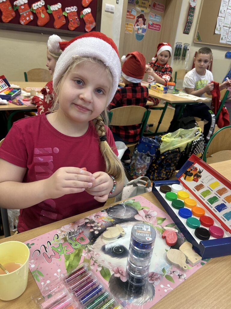 Ten czas jest magiczny i pełen oczekiwania, ale przypomina również o życzliwości wobec innych ludzi i zwierząt. Pierwszoklasiści brali udział w corocznej zbiórce dla schroniska Azorek w Obornikach oraz w akcji Góra grosza. A dla swoich rodzin przygotowali wesołe kartki świąteczne z reniferem. A szkolne wspólne kolędowanie oraz wigilia klasowa jest czasem pozytywnych relacji i wstępem do świąt w domu z bliskimi.