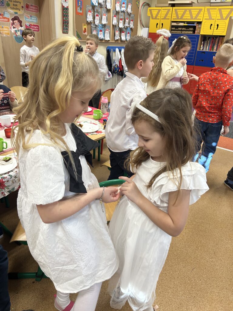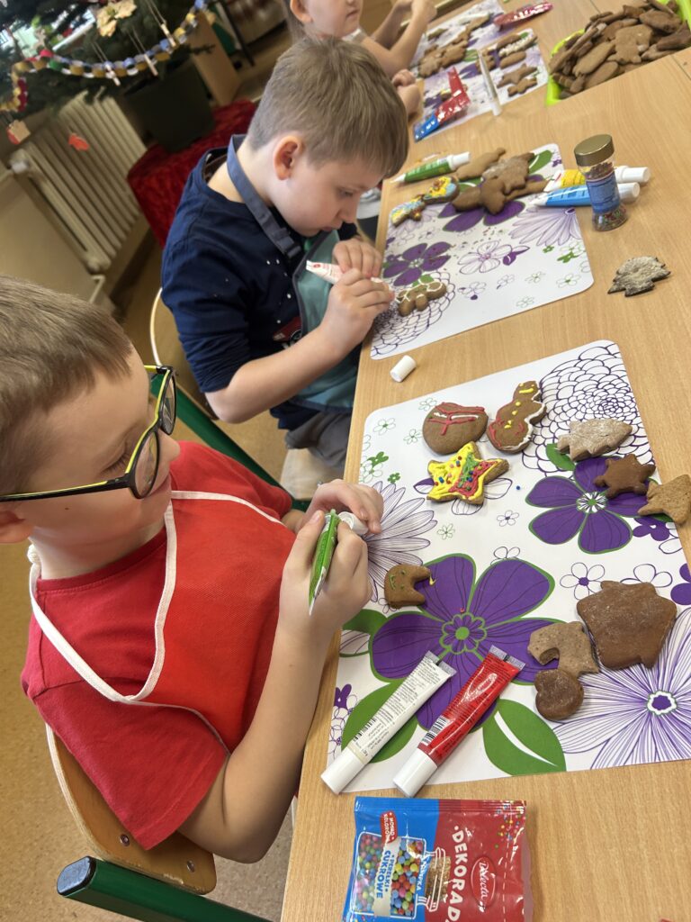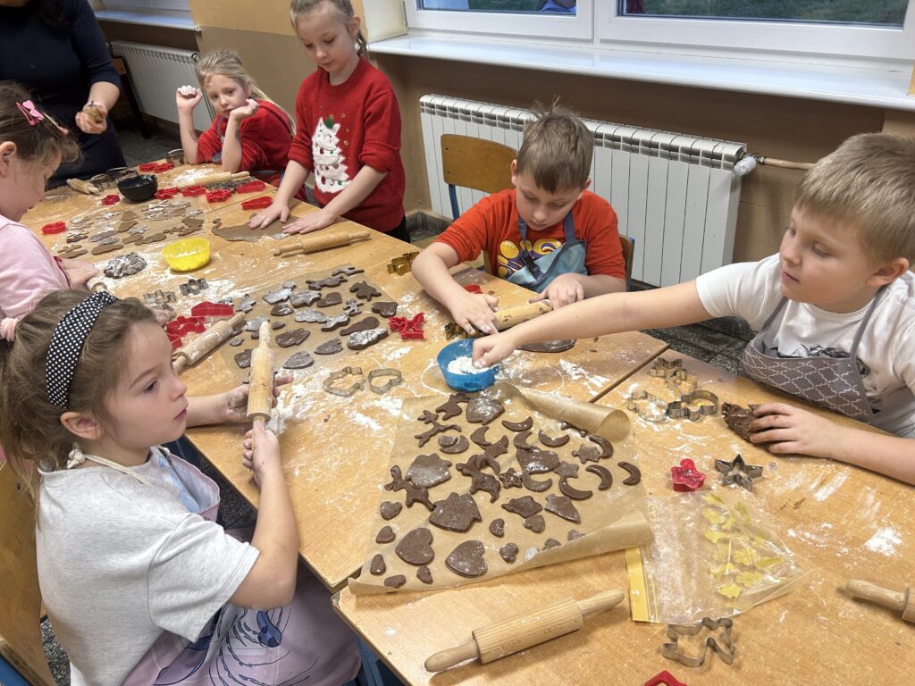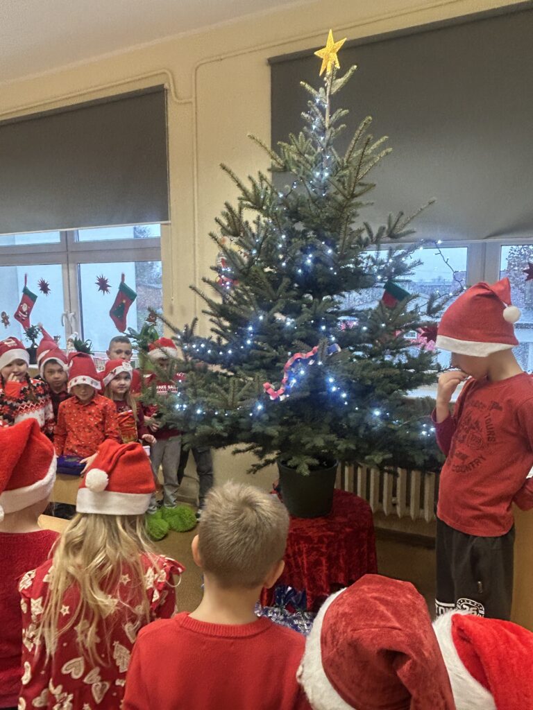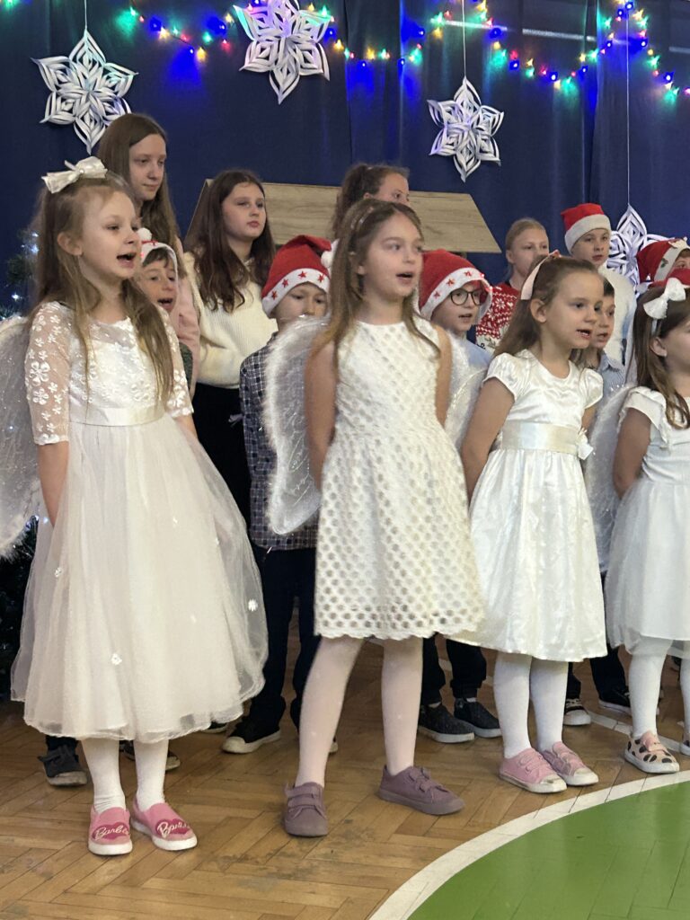 Ten czas jest magiczny i pełen oczekiwania, ale przypomina również o życzliwości wobec innych ludzi i zwierząt. Pierwszoklasiści brali udział w corocznej zbiórce dla schroniska Azorek w Obornikach oraz w akcji Góra grosza. A dla swoich rodzin przygotowali wesołe kartki świąteczne z reniferem. A szkolne wspólne kolędowanie oraz wigilia klasowa jest czasem pozytywnych relacji i wstępem do świąt w domu z bliskimi.