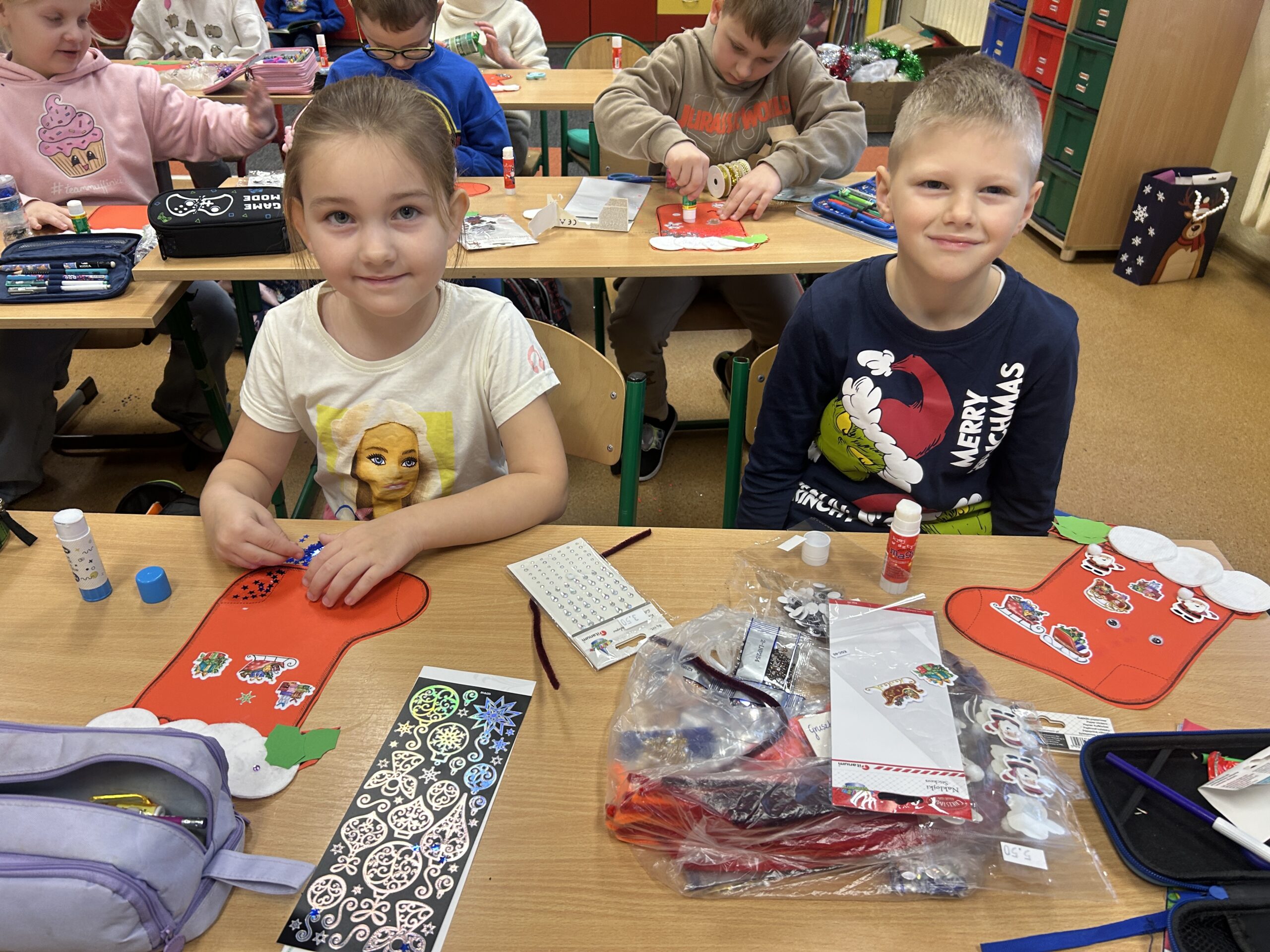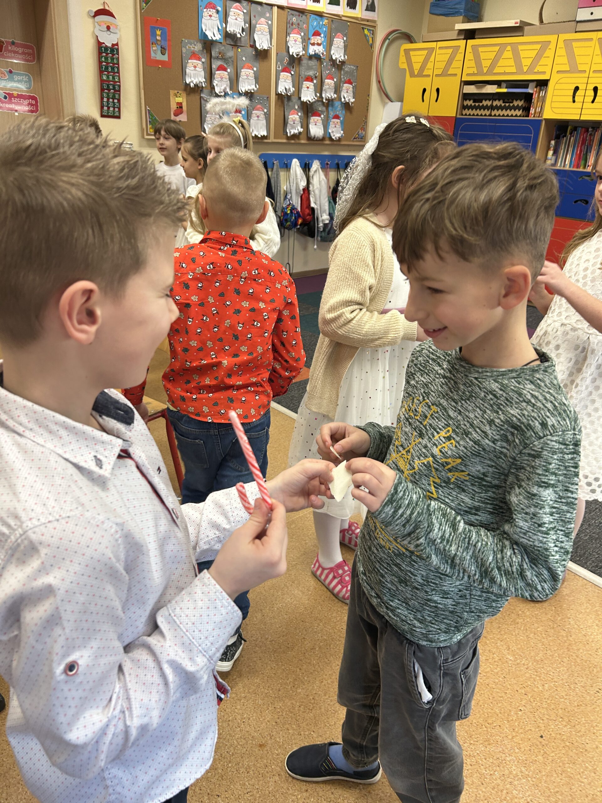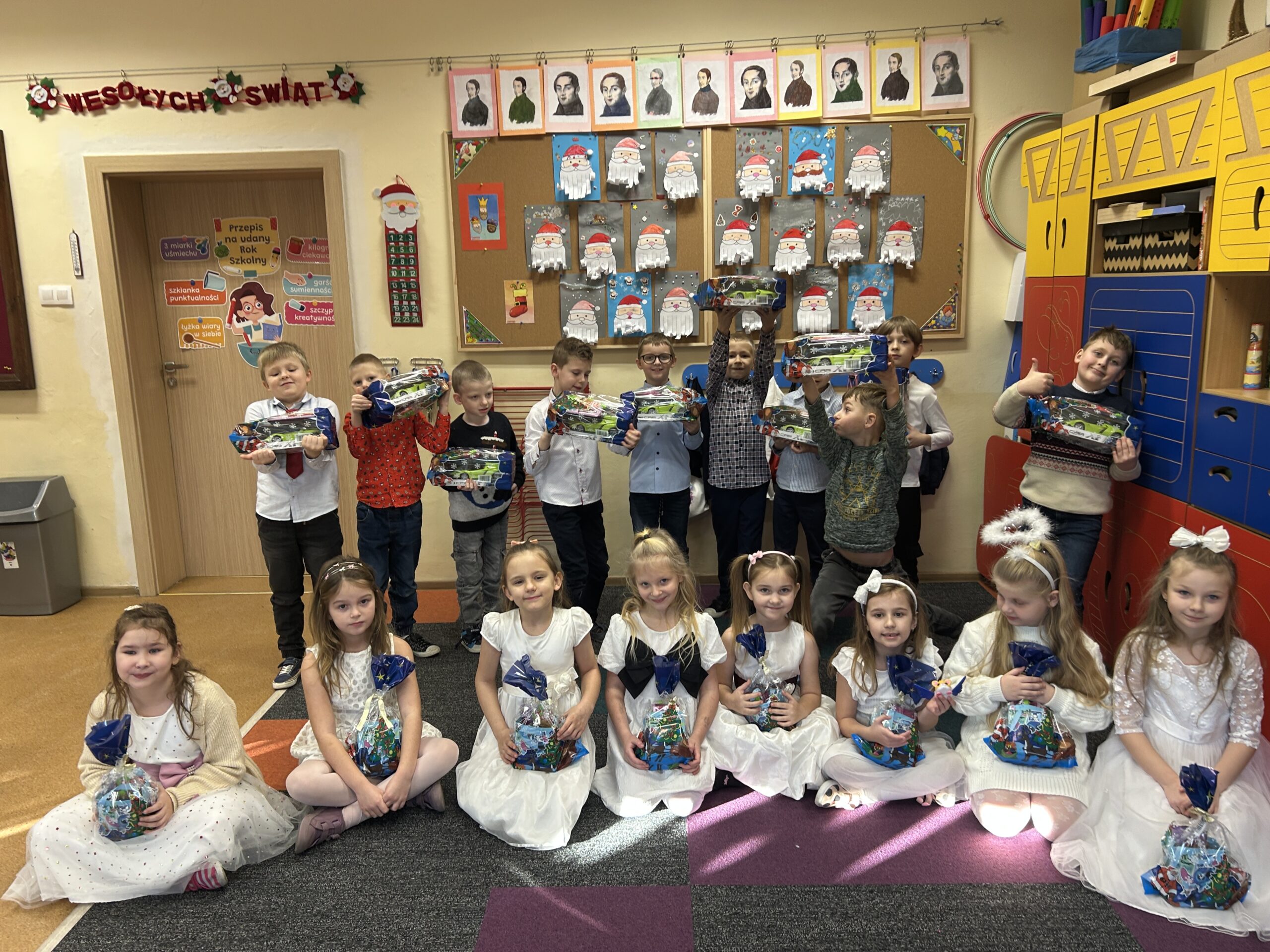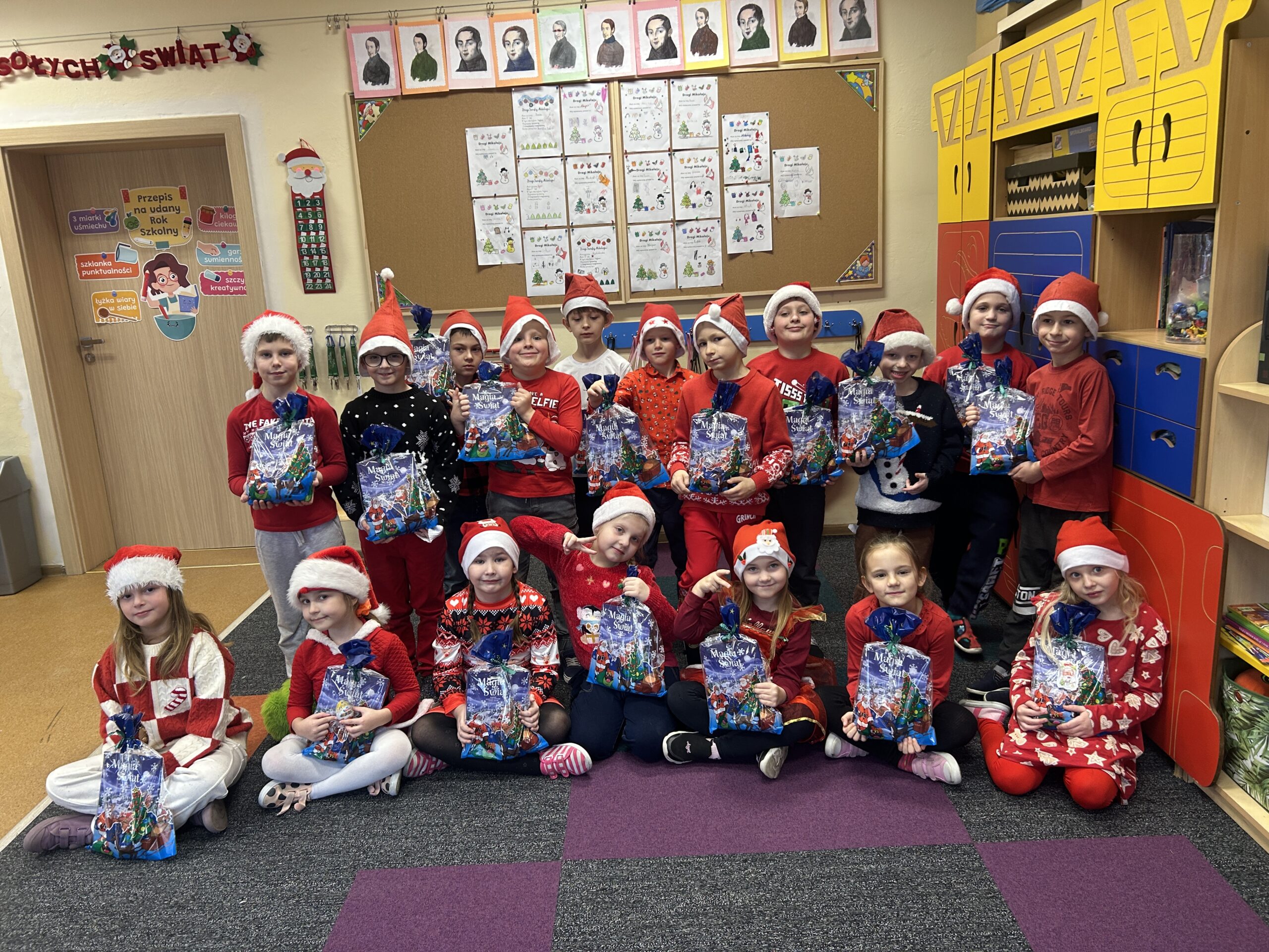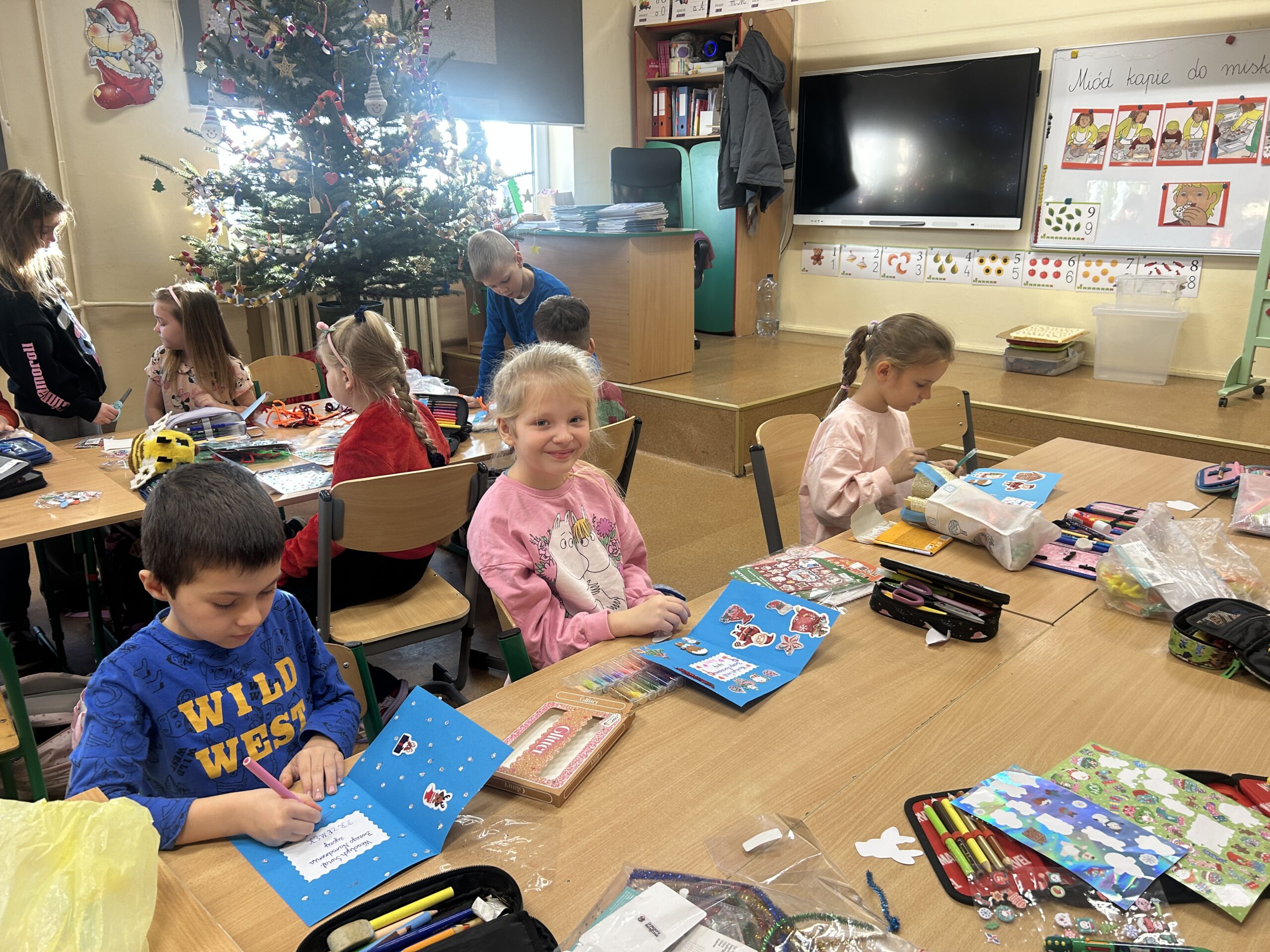 Ten czas jest magiczny i pełen oczekiwania, ale przypomina również o życzliwości wobec innych ludzi i zwierząt. Pierwszoklasiści brali udział w corocznej zbiórce dla schroniska Azorek w Obornikach oraz w akcji Góra grosza. A dla swoich rodzin przygotowali wesołe kartki świąteczne z reniferem. A szkolne wspólne kolędowanie oraz wigilia klasowa jest czasem pozytywnych relacji i wstępem do świąt w domu z bliskimi.