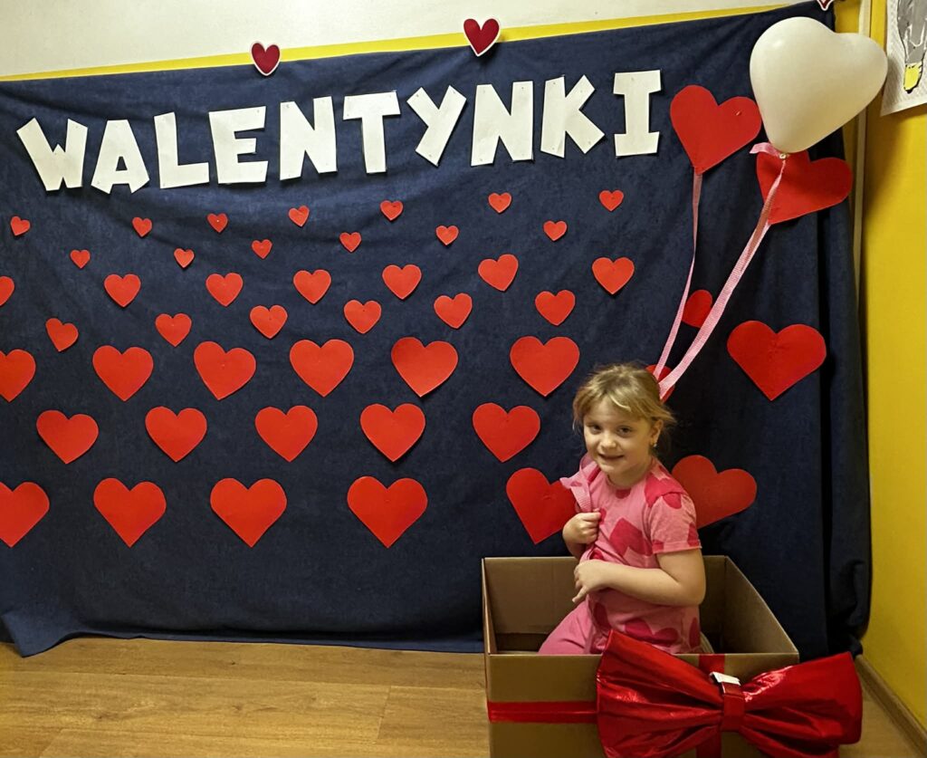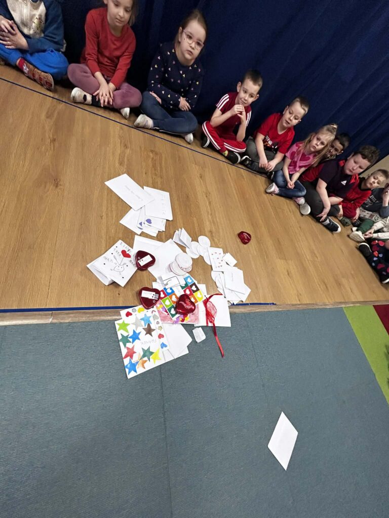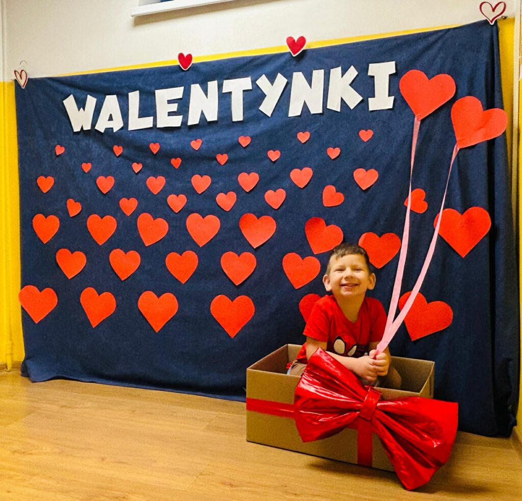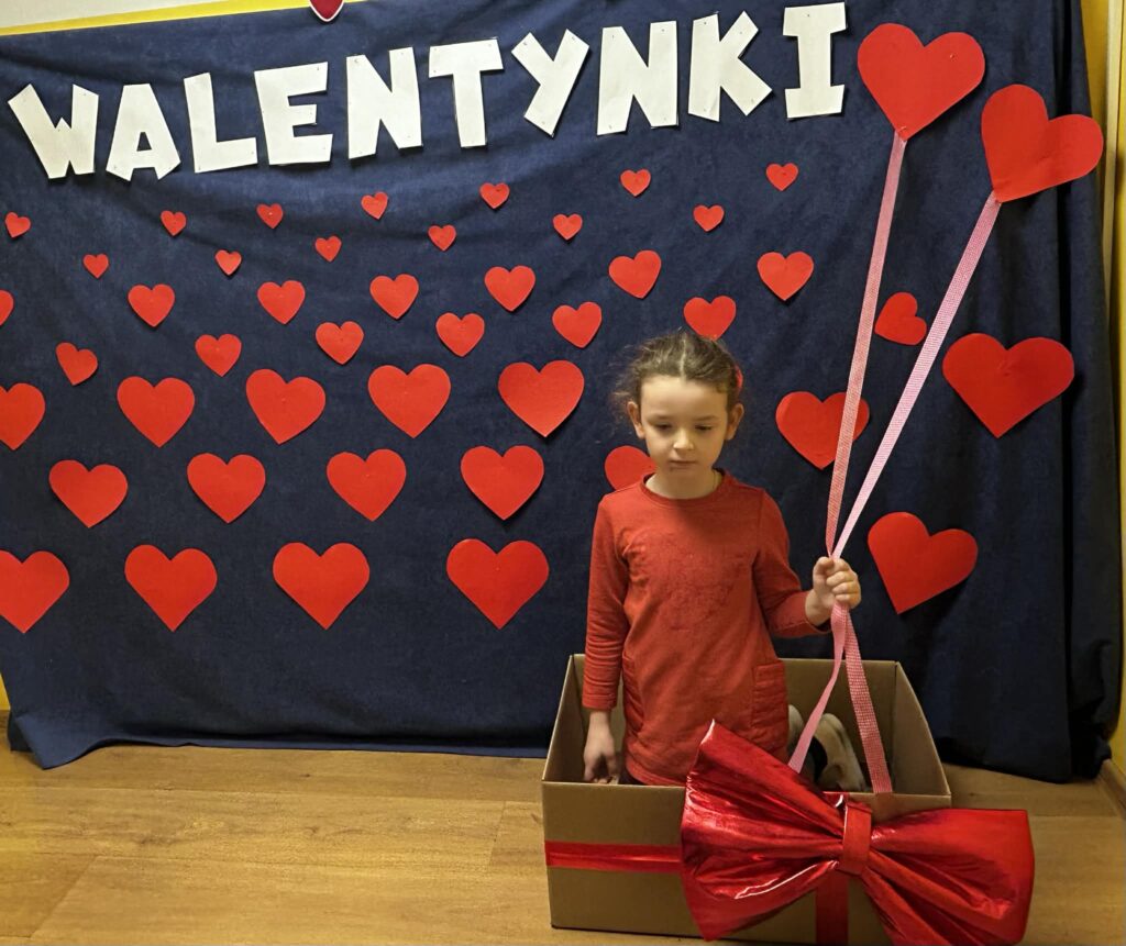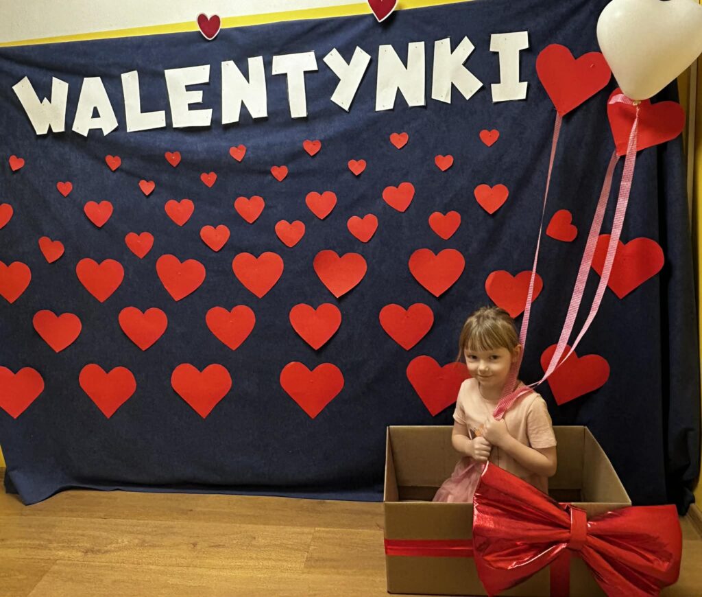 Szczególnym momentem było otwarcie Walentynkowej Skrzynki Przyjaźni. Dzieci z radością odbierały przygotowane kartki i miłe wiadomości, ucząc się, jak ważne są serdeczne gesty i dobre słowa.