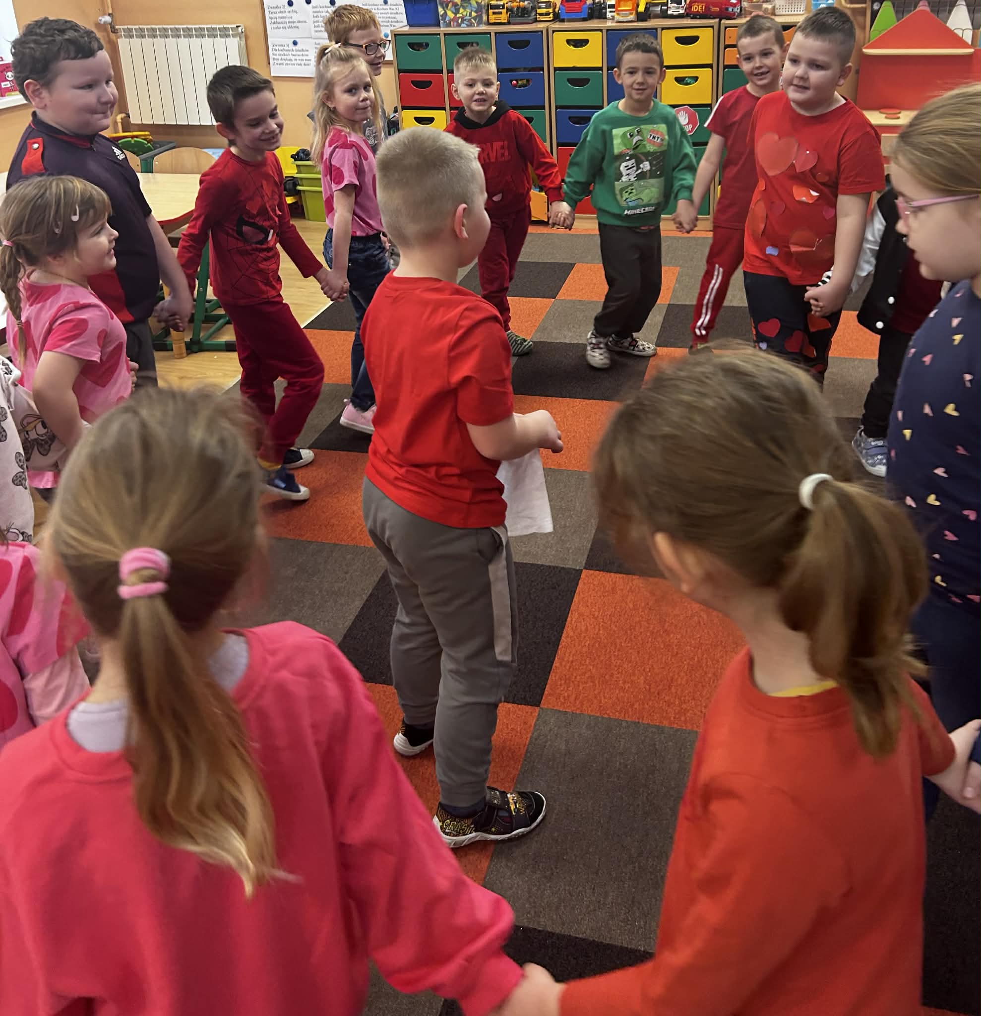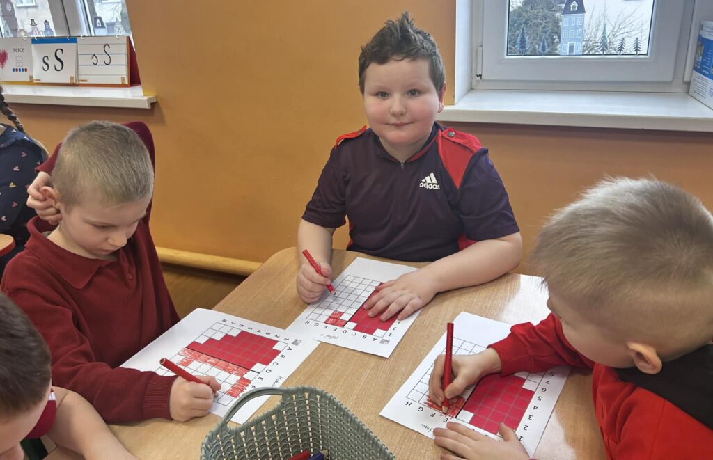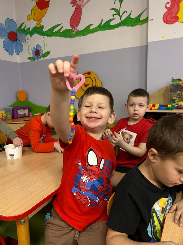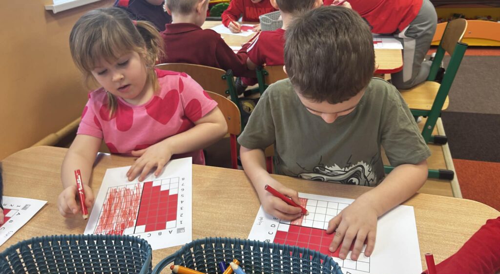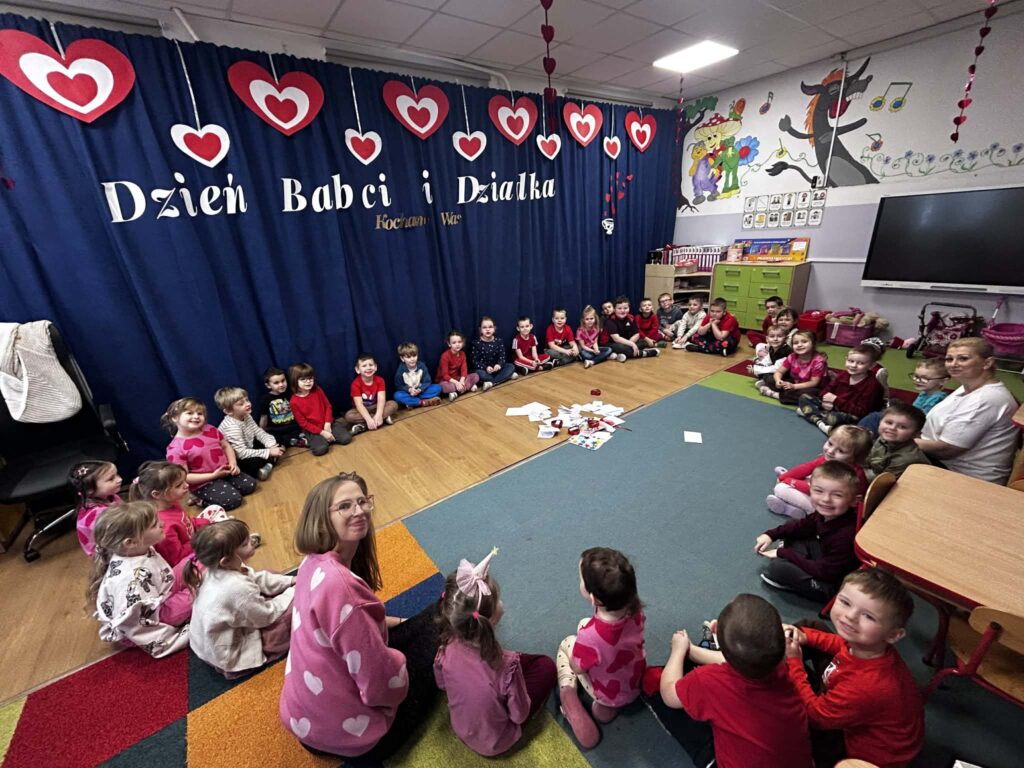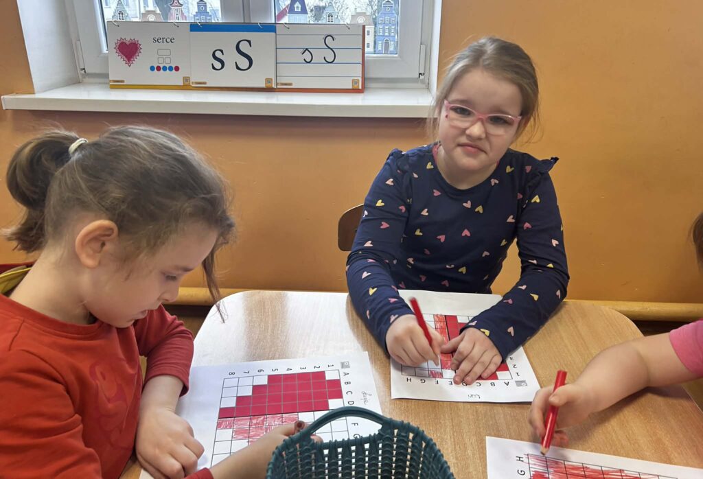 W trakcie zajęć realizowane były zadania edukacyjne związane z motywem serca – przeliczanie, układanie rytmów, zagadki oraz zabawy ruchowe. Rozmawialiśmy o znaczeniu przyjaźni, życzliwości i dobrych relacji z rówieśnikami.
