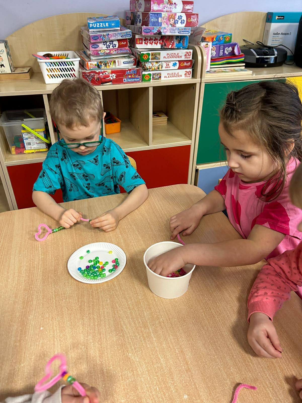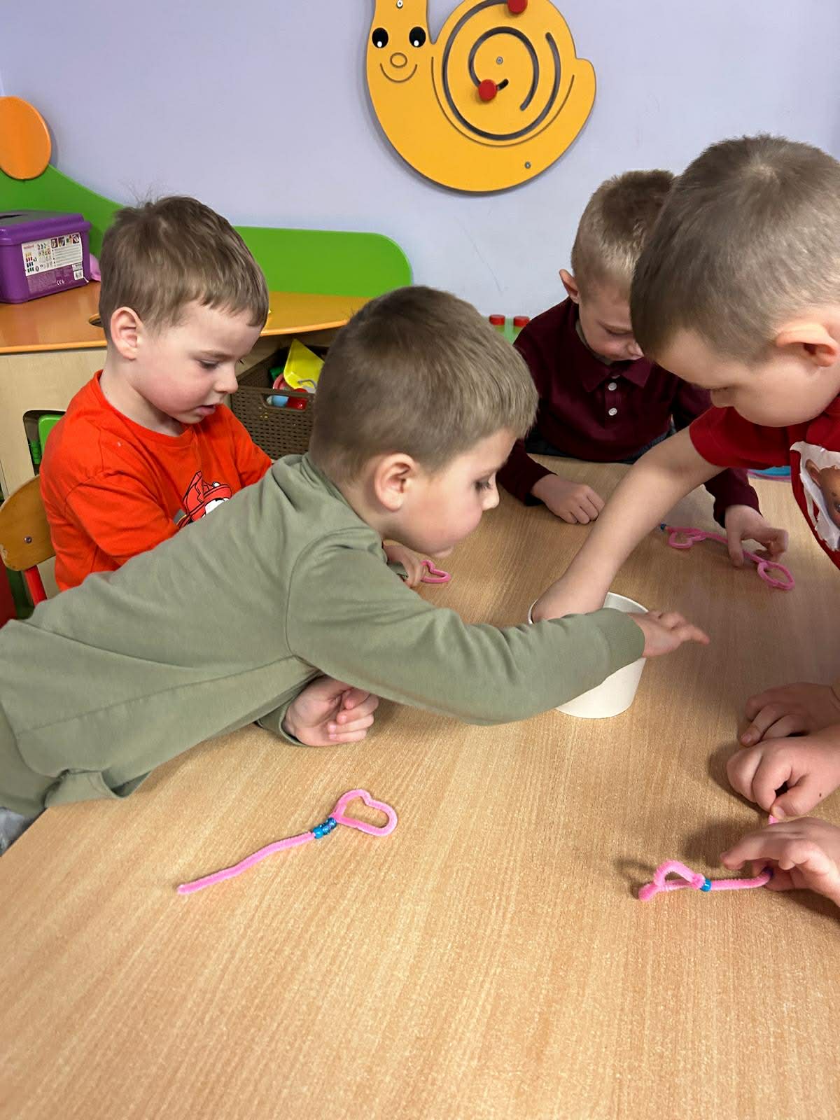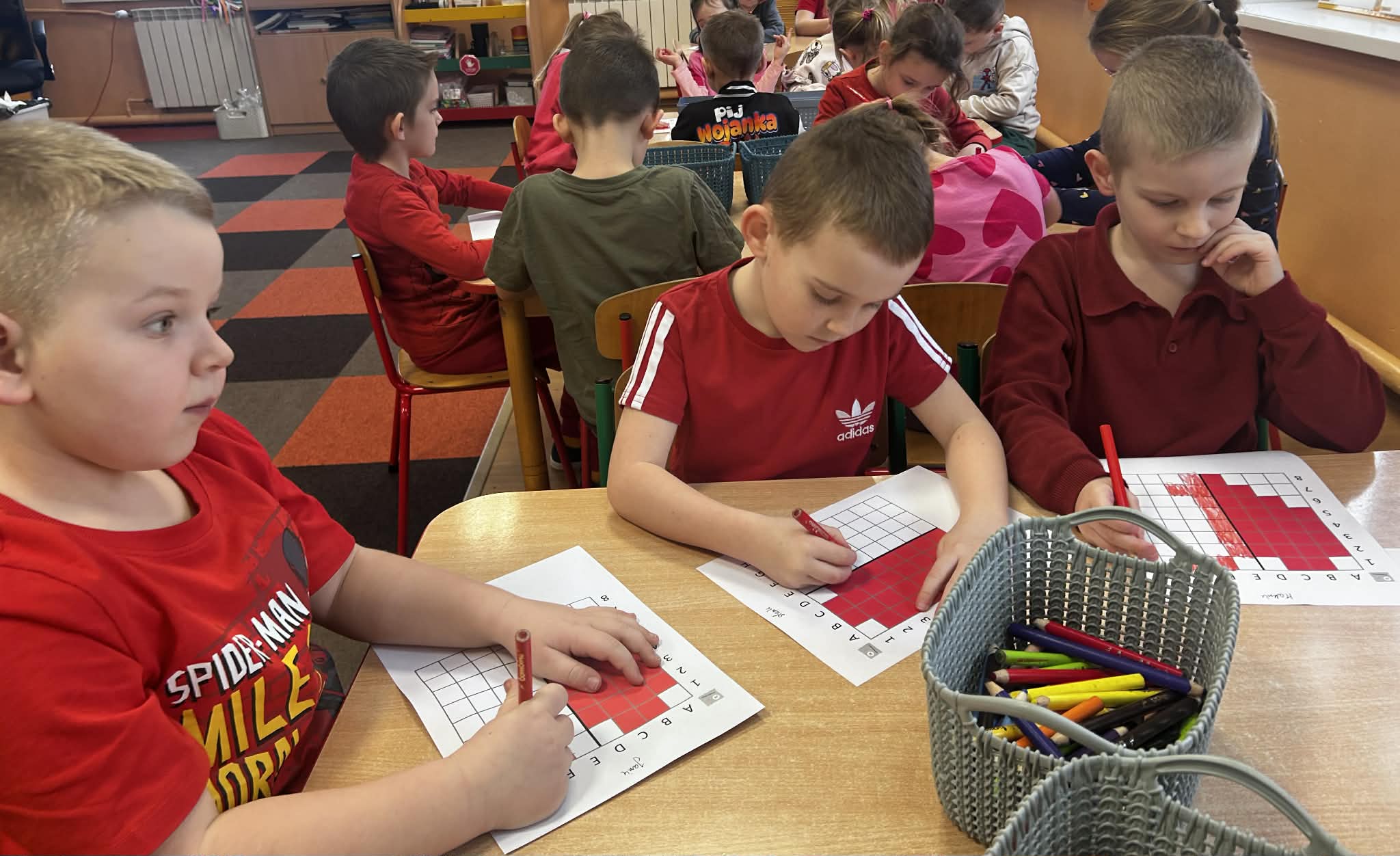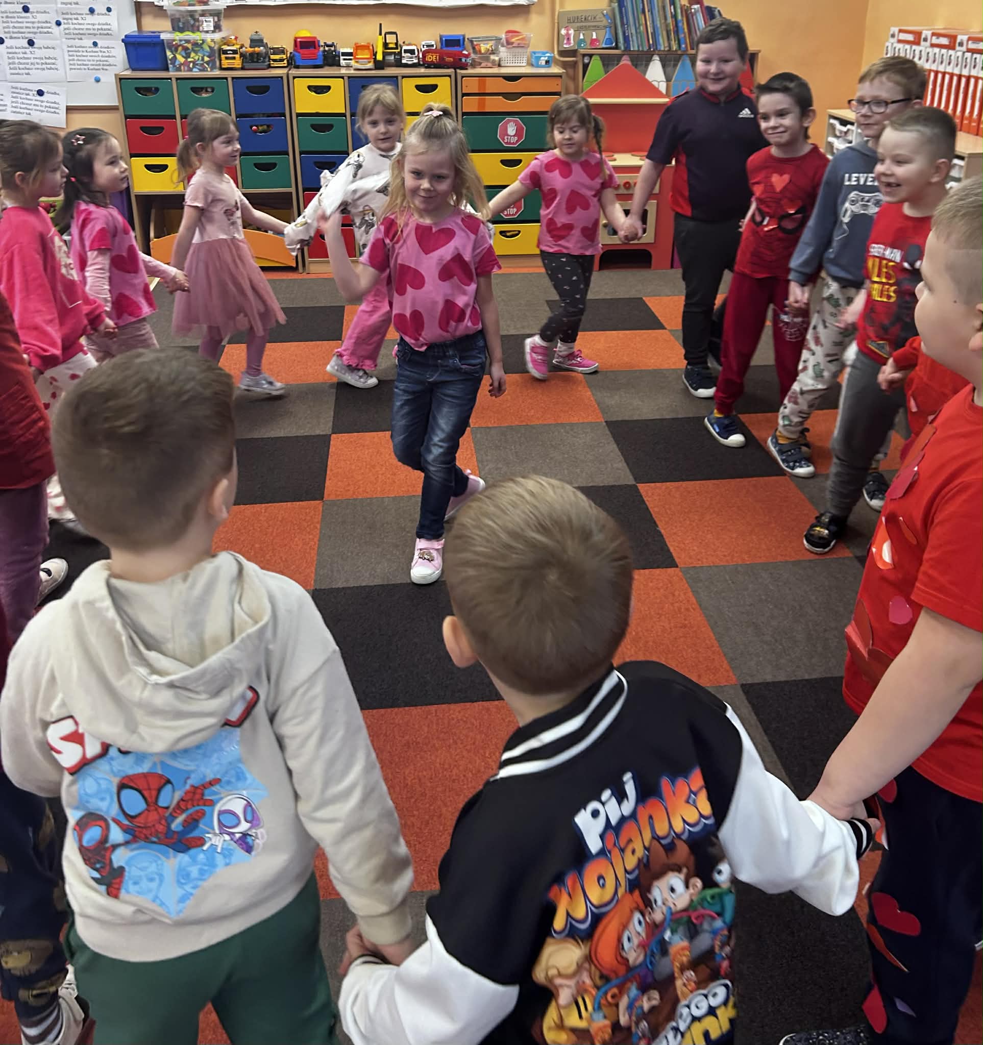 W trakcie zajęć realizowane były zadania edukacyjne związane z motywem serca – przeliczanie, układanie rytmów, zagadki oraz zabawy ruchowe. Rozmawialiśmy o znaczeniu przyjaźni, życzliwości i dobrych relacji z rówieśnikami.