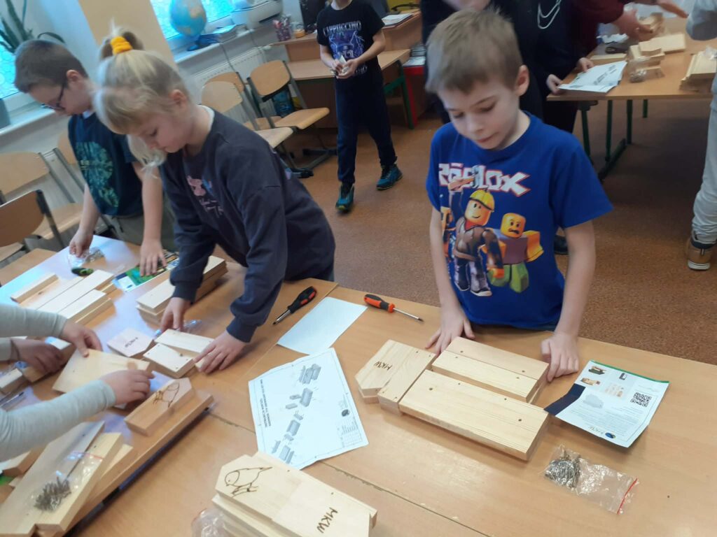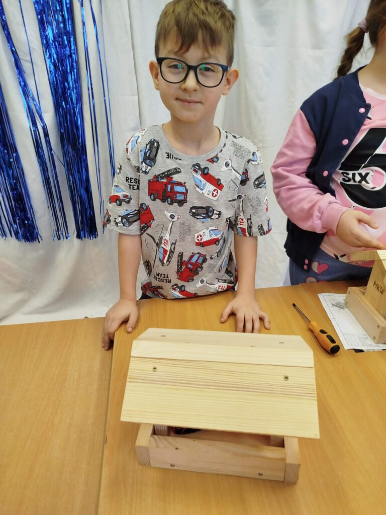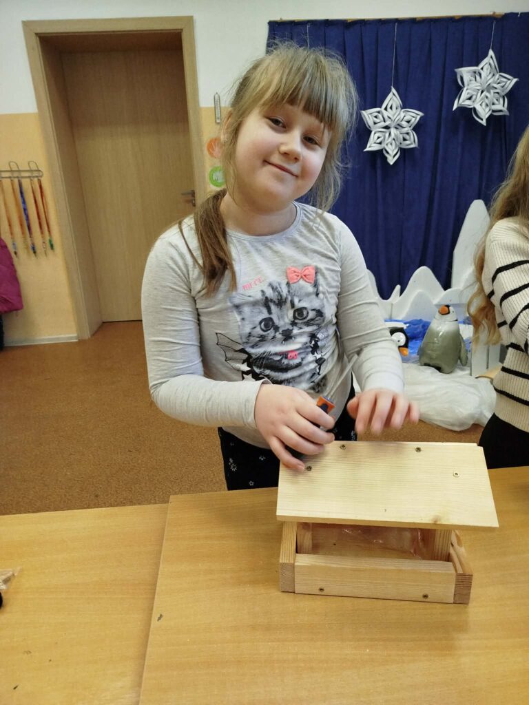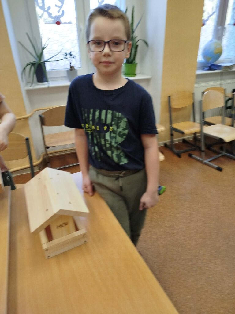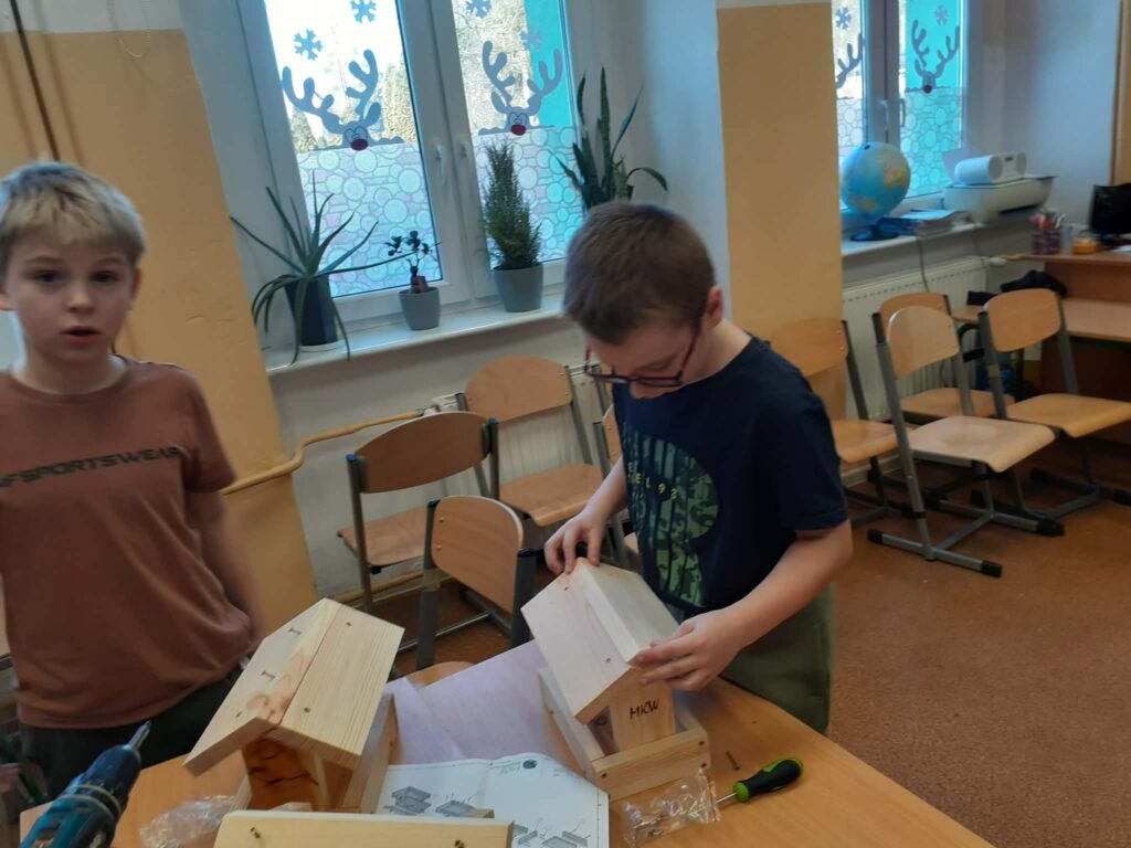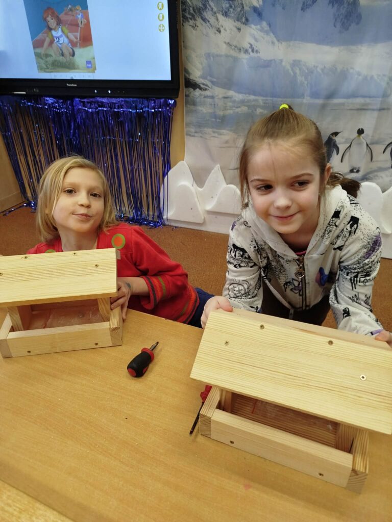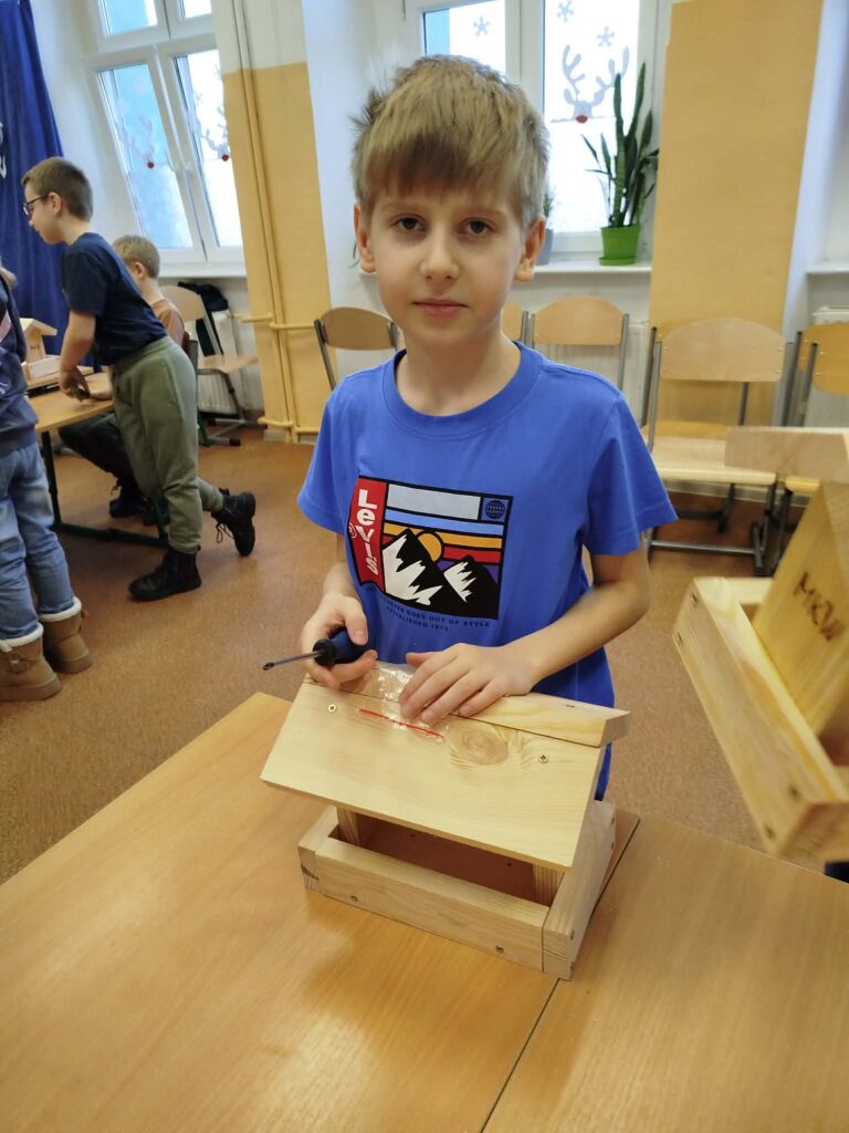 W związku z omawianym działem lekcyjnym o dokarmianiu ptaków, uczniowie klasy 2 wykonali karmniki dla ptaków. Tym razem dzieci uczyły się łączenia drewna za pomocą śrubokrętu i wkrętów. Ćwiczyły nie tylko sprawność manualną, ale również umiejętność wykonywania czynności wg instrukcji. Gotowe karmniki dzieci zabrały do domu. Teraz ptaszki będą miały nowe stołówki 🙂