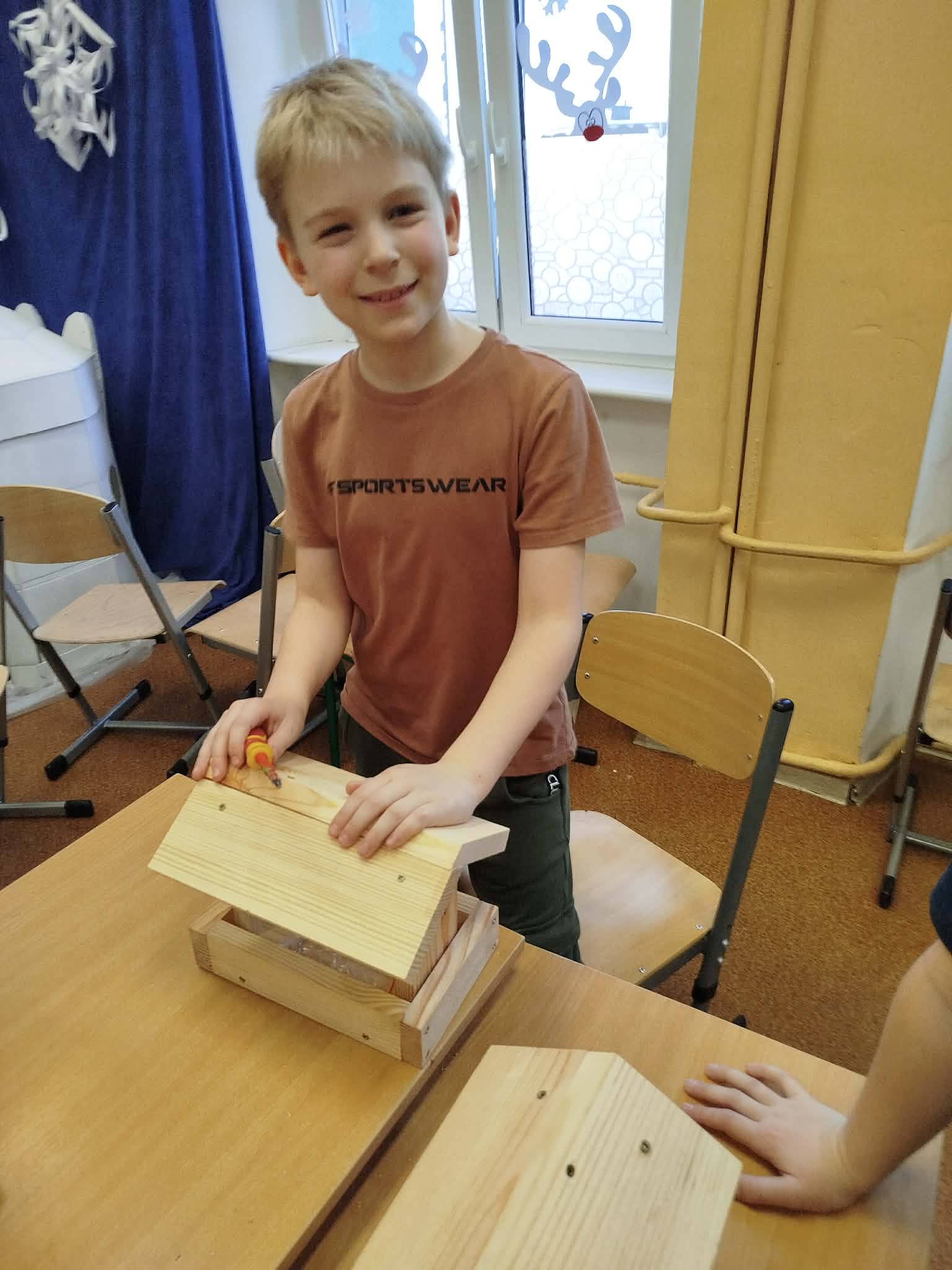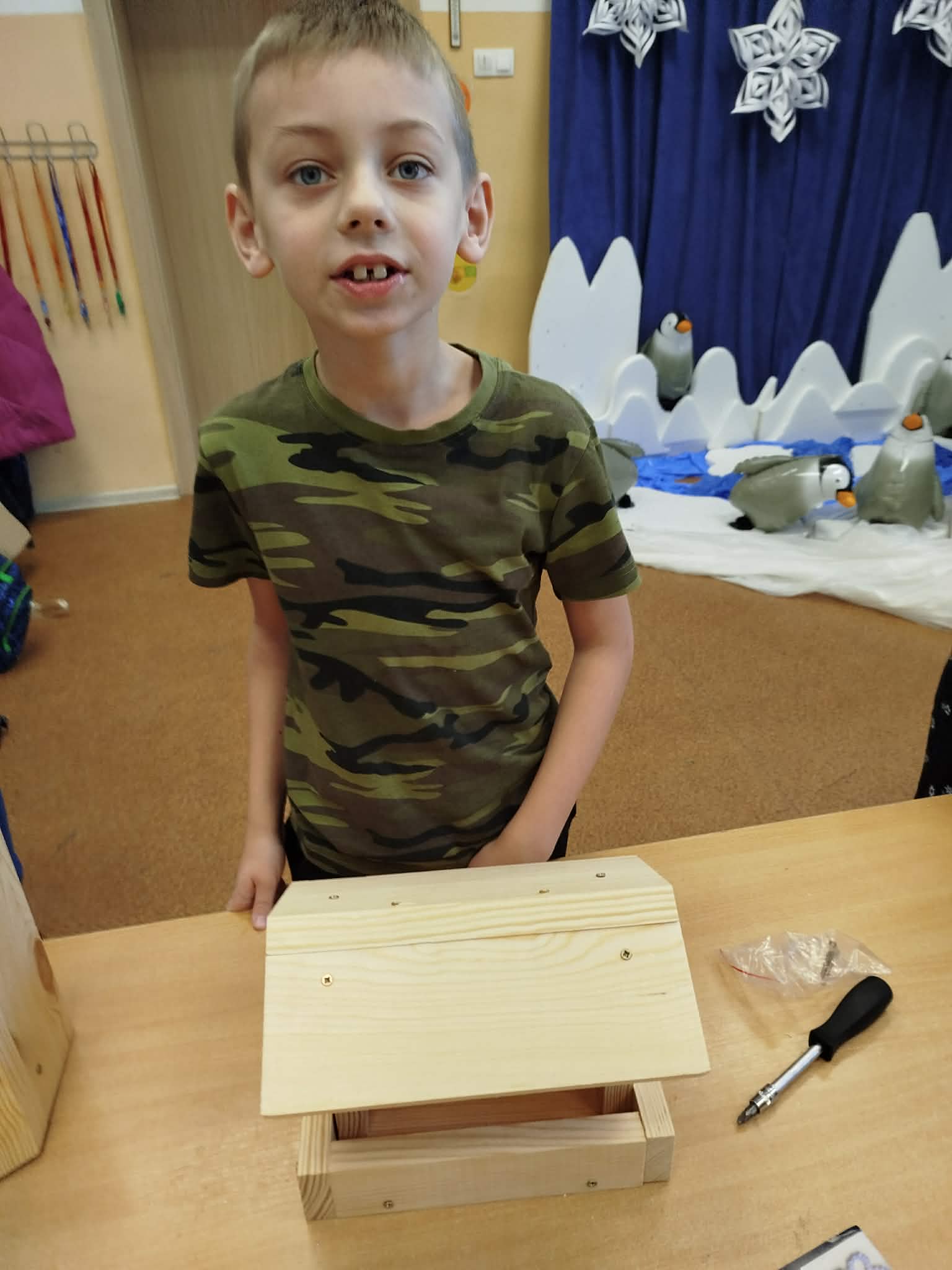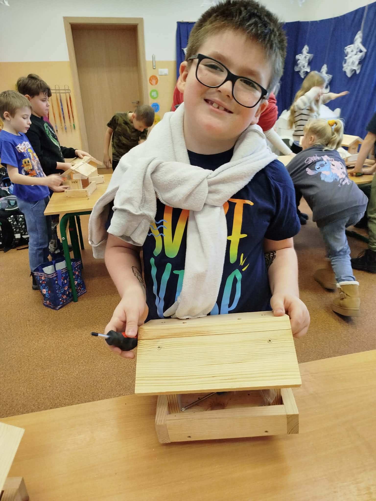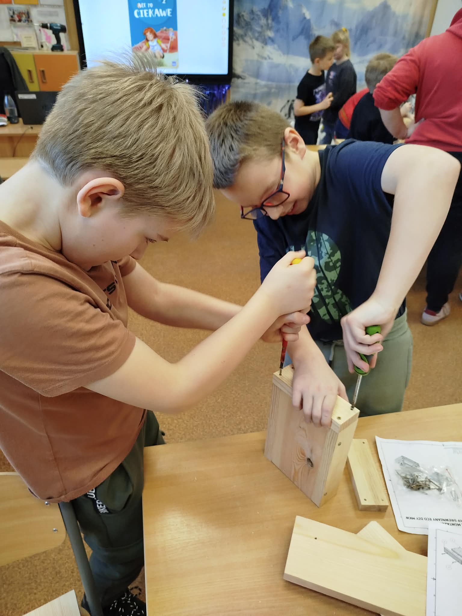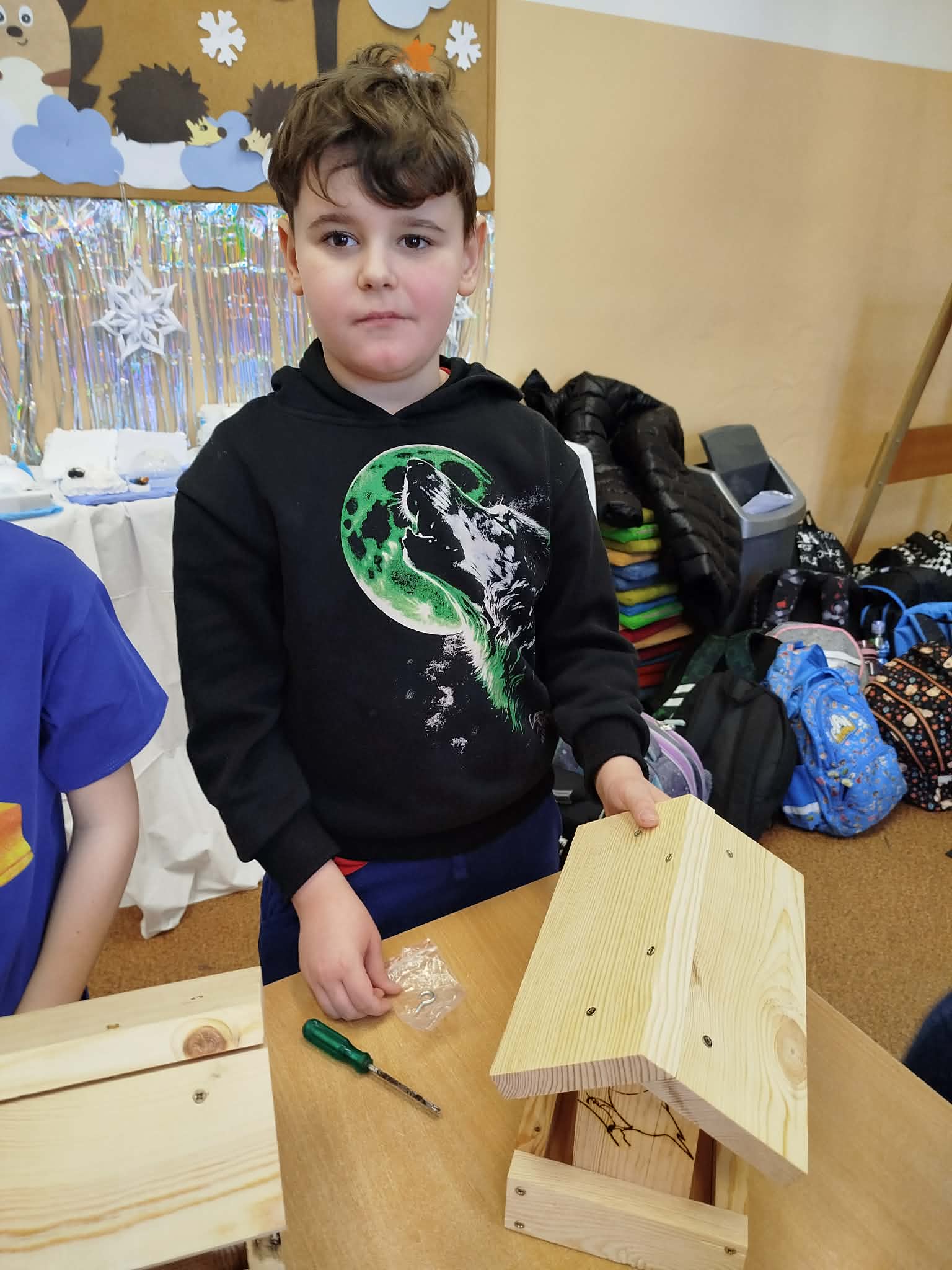W związku z omawianym działem lekcyjnym o dokarmianiu ptaków, uczniowie klasy 2 wykonali karmniki dla ptaków. Tym razem dzieci uczyły się łączenia drewna za pomocą śrubokrętu i wkrętów. Ćwiczyły nie tylko sprawność manualną, ale również umiejętność wykonywania czynności wg instrukcji. Gotowe karmniki dzieci zabrały do domu. Teraz ptaszki będą miały nowe stołówki 🙂