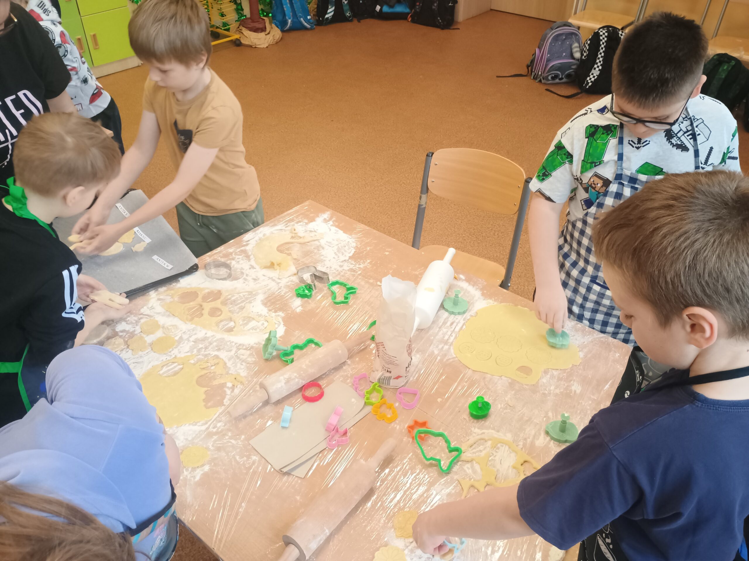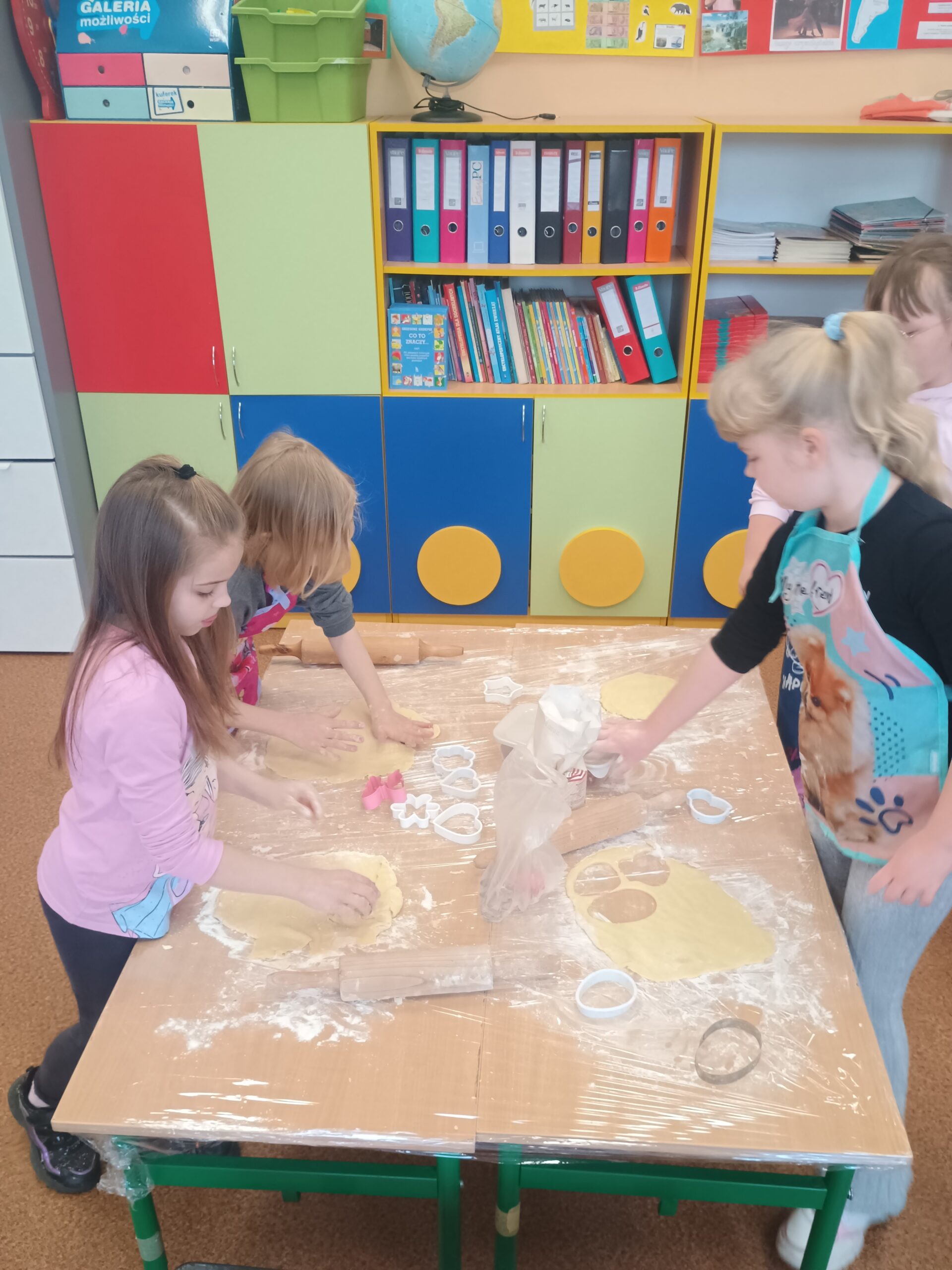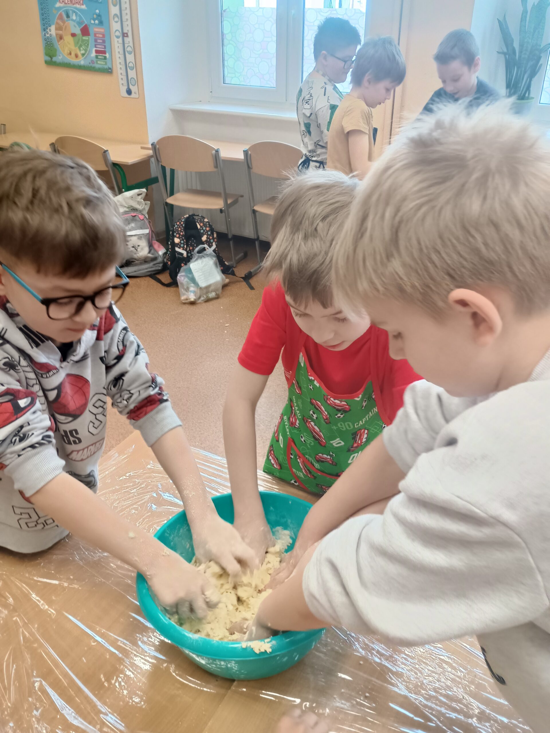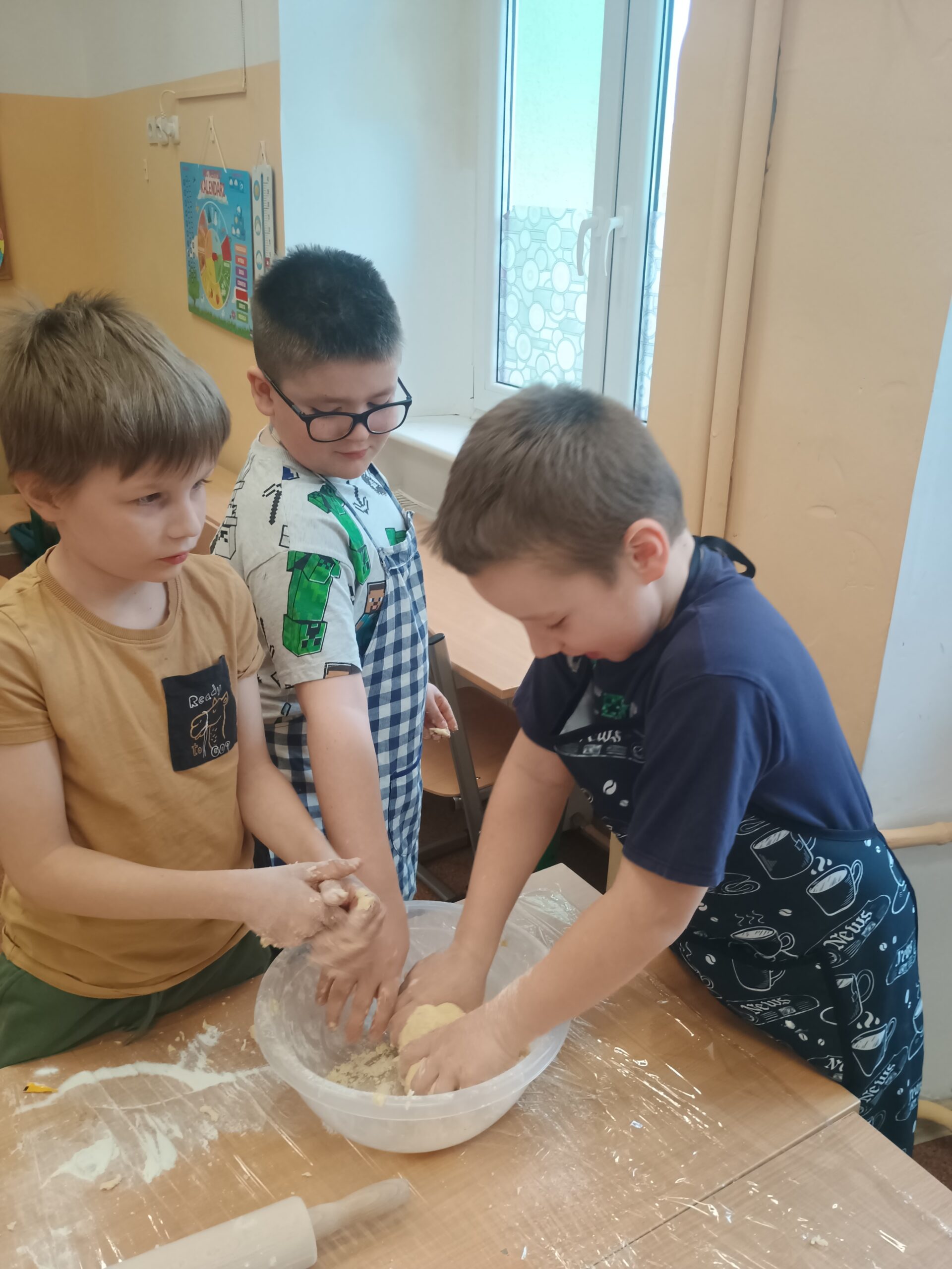 Na kolejnych warsztatach kulinarnych uczniowie klasy 2 piekli wielkanocne ciasteczka, które po upieczeniu dekorowali kolorowym lukrem i posypkami. Dzieci wykazały się dużą pomysłowością i precyzją. Powstały małe dzieła sztuki cukierniczej. Ciekawe kto w przyszłości zostanie cukiernikiem:)