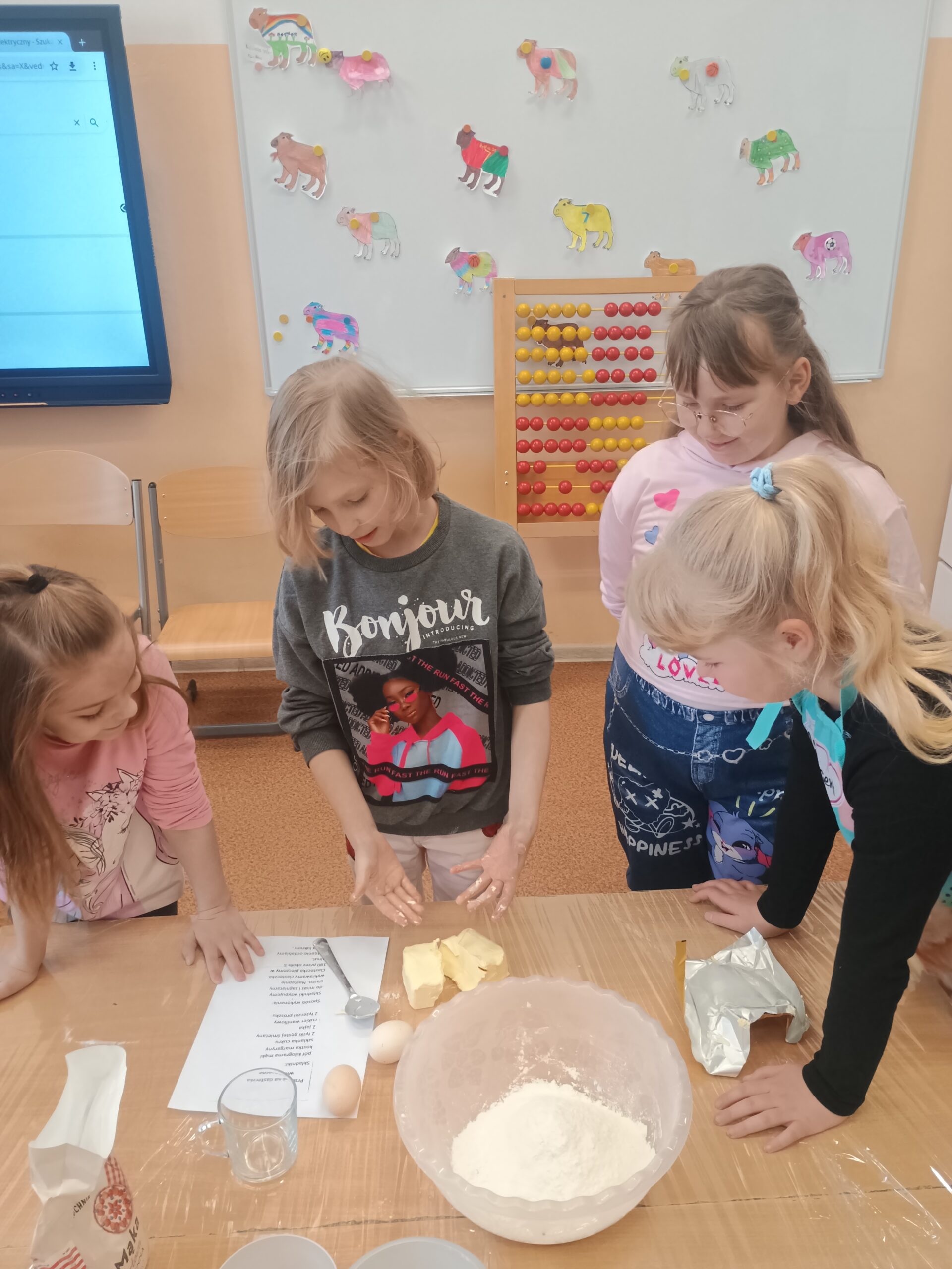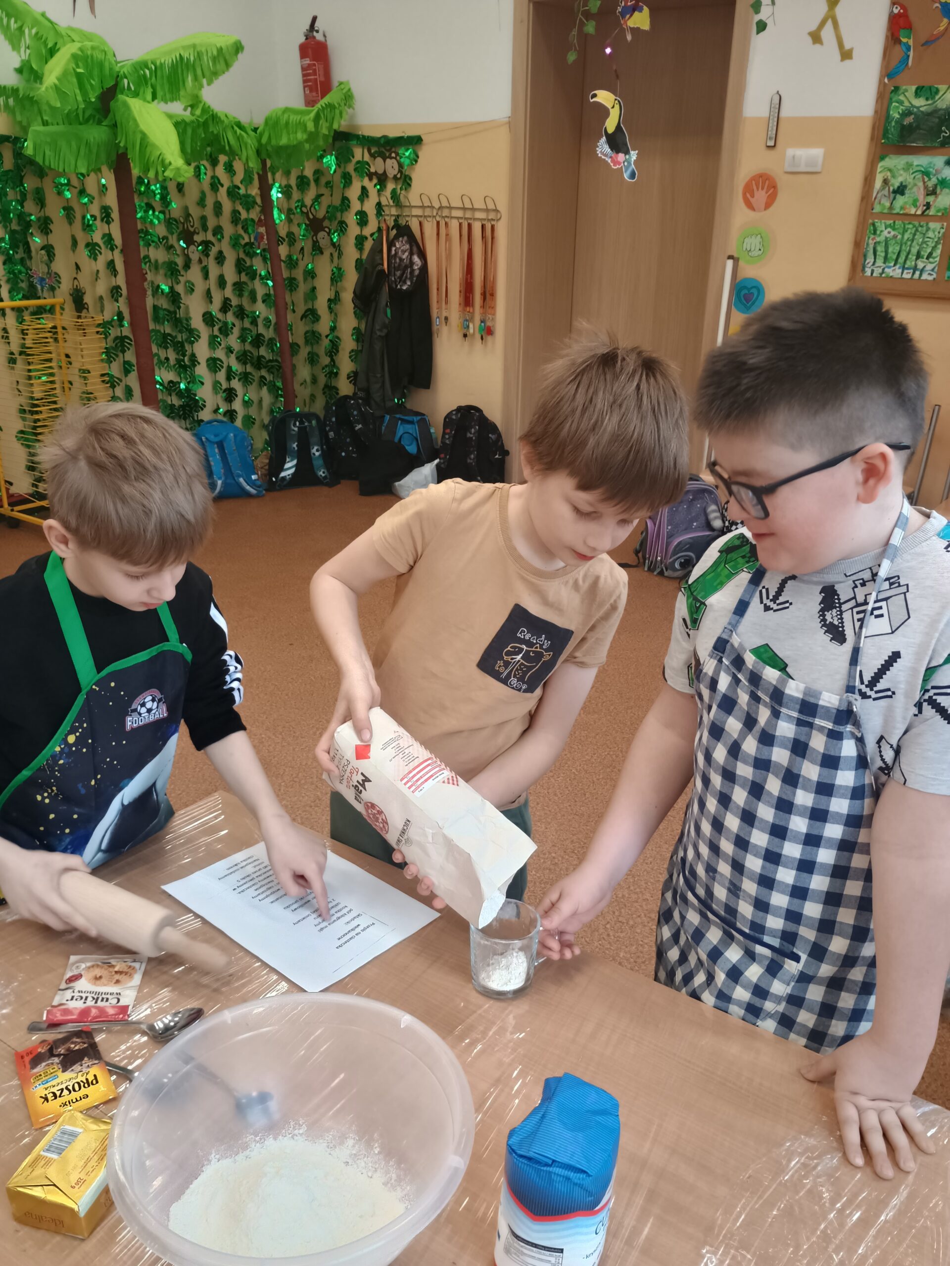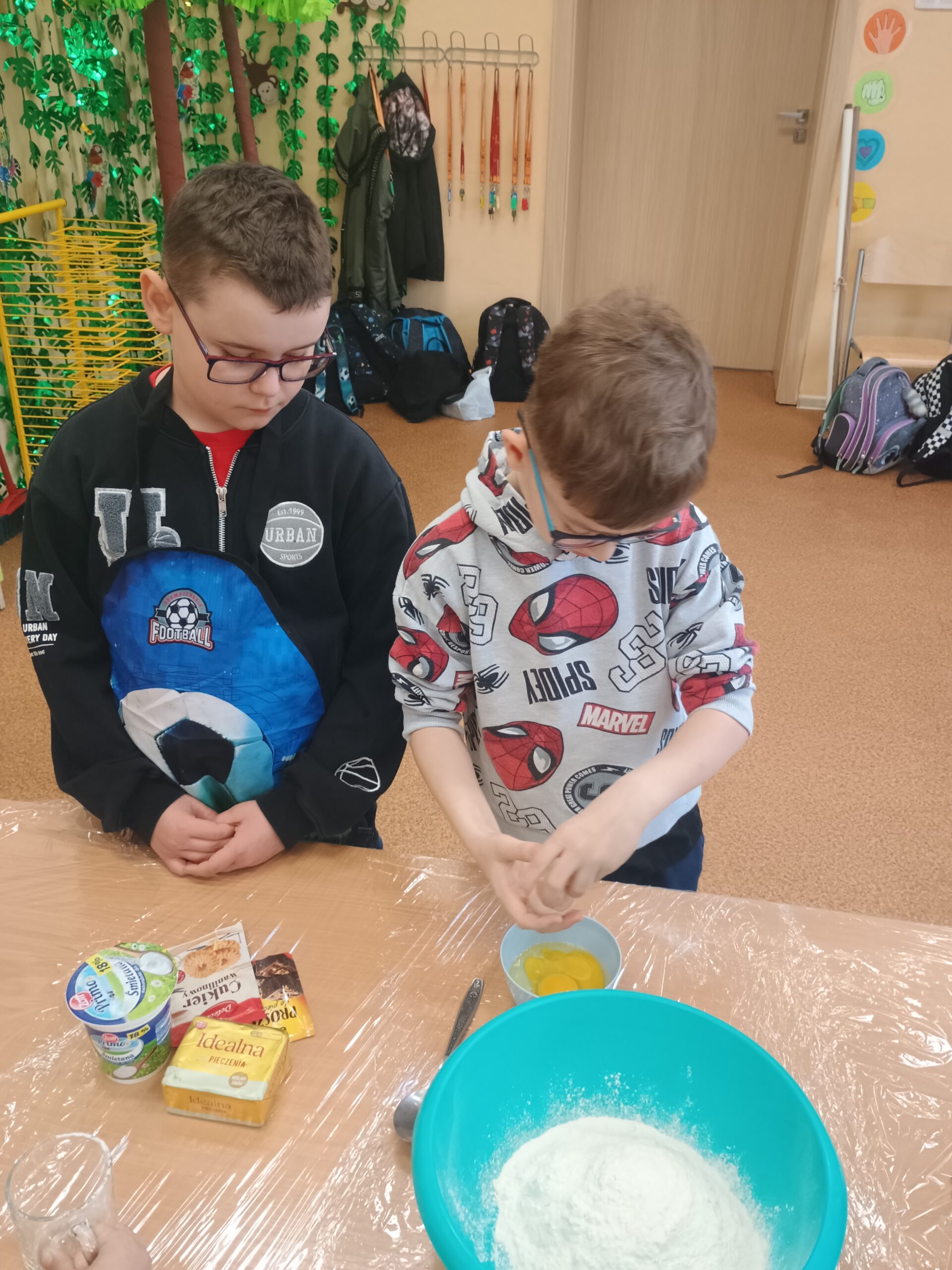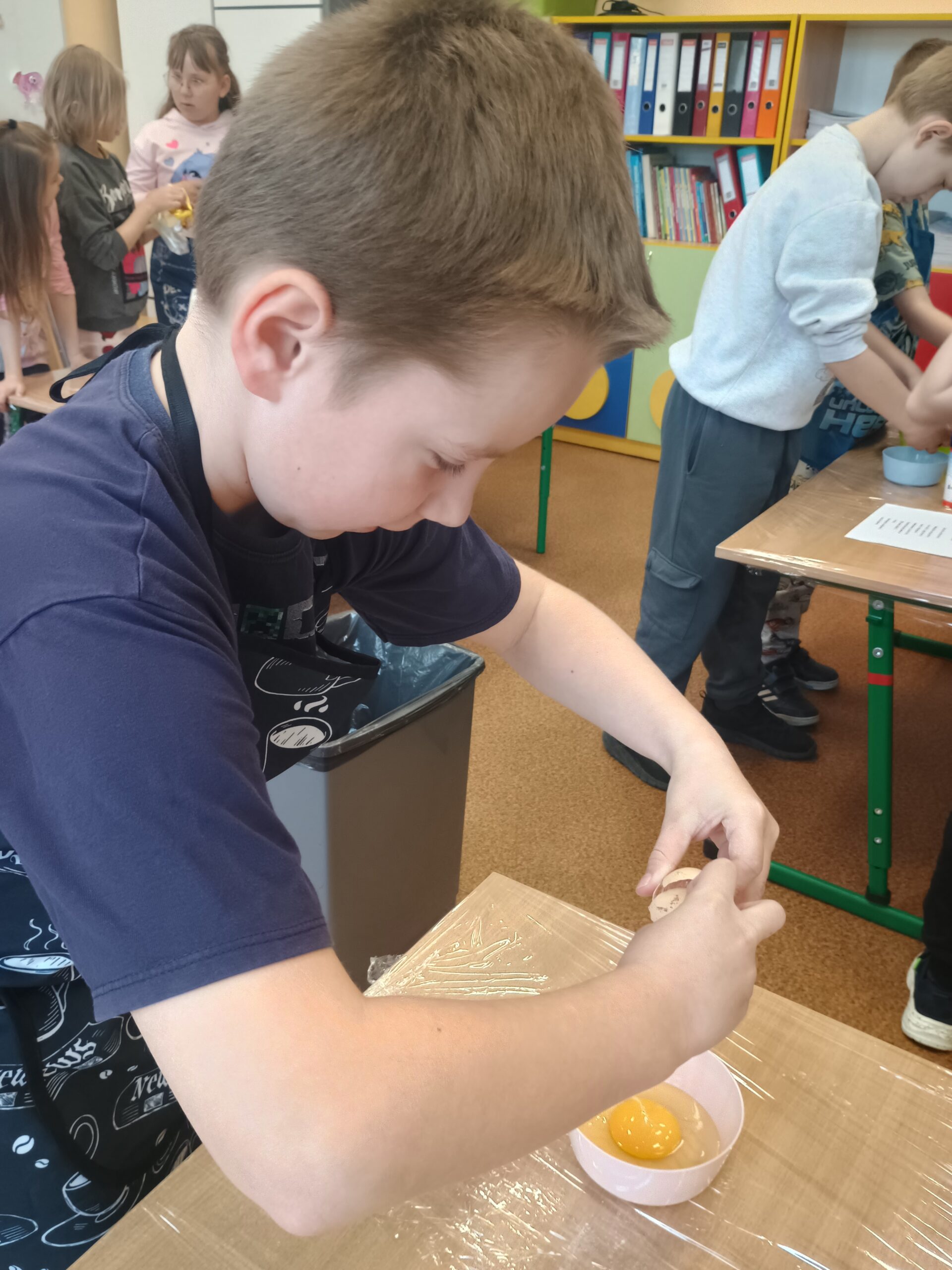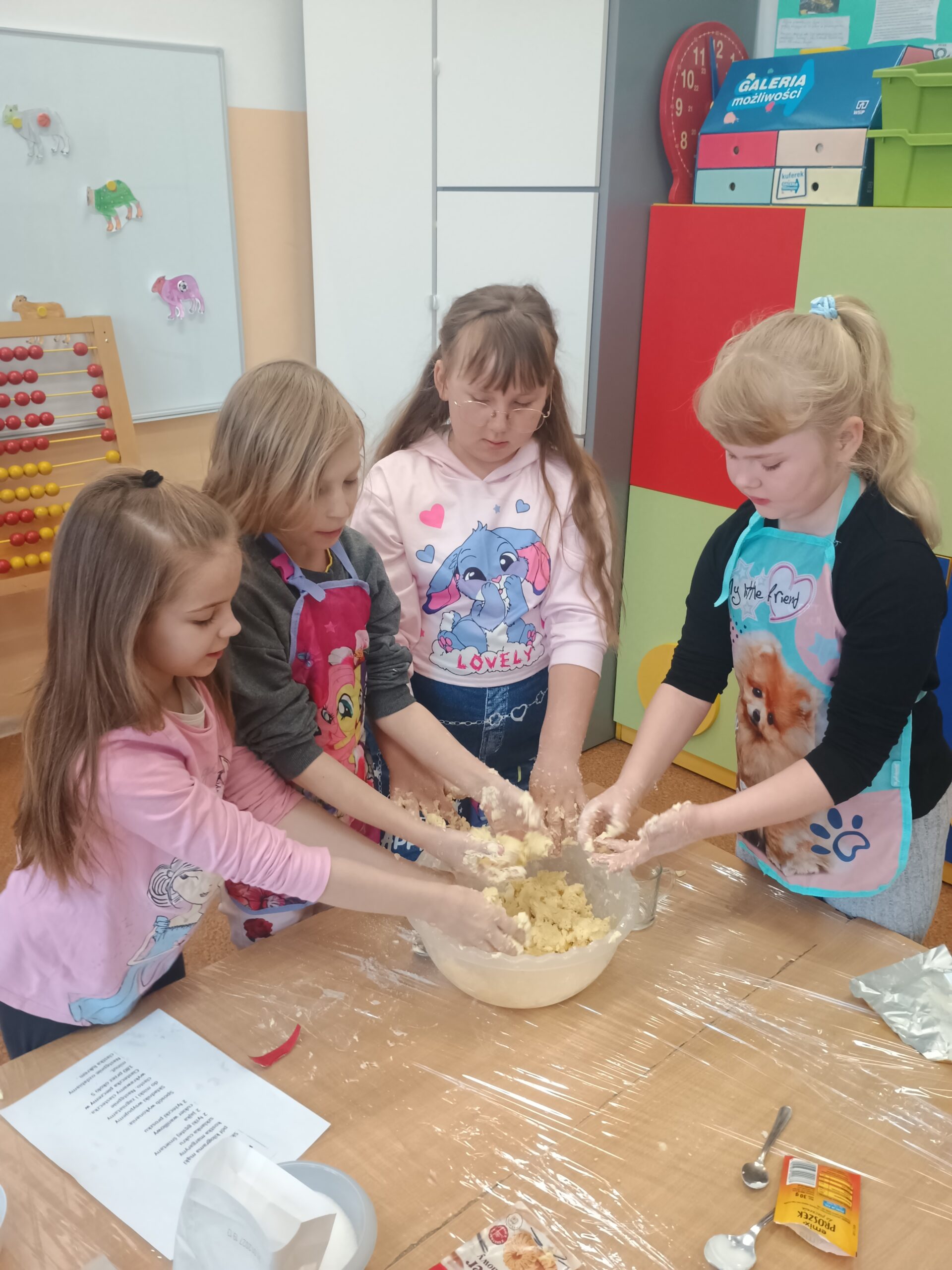 Na kolejnych warsztatach kulinarnych uczniowie klasy 2 piekli wielkanocne ciasteczka, które po upieczeniu dekorowali kolorowym lukrem i posypkami. Dzieci wykazały się dużą pomysłowością i precyzją. Powstały małe dzieła sztuki cukierniczej. Ciekawe kto w przyszłości zostanie cukiernikiem:)