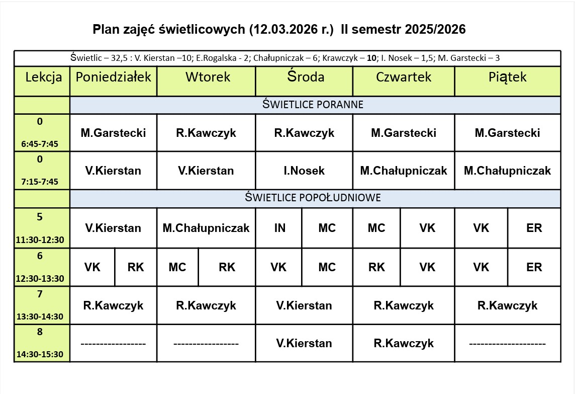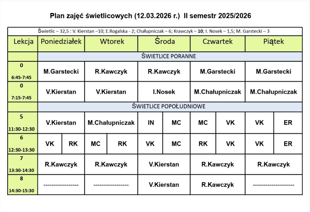 Plan zajęć świetlicowych od 12.03.2026